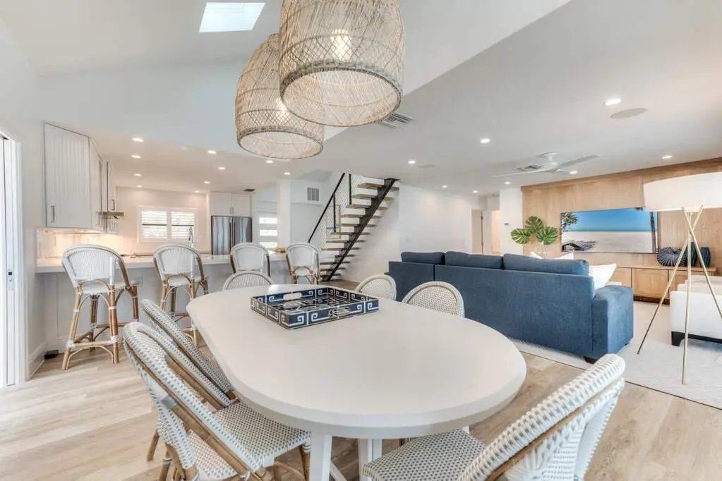 Experience unparalleled luxury and coastal elegance at 19 Beach Homes, a stunning direct Gulf-front, elevated, 3 Bedroom + Den, 3 Bathroom residence situated within on the coastline of Captiva. Completely redesigned and renovated in 2022, this breathtaking home offers top-of-the-line finishes and modern upgrades that blend seamlessly with the serene, natural beauty of its beachfront setting. Step inside to discover an open-concept living space adorned with luxury vinyl flooring, setting the tone for both durability and sophisticated charm. The custom floating staircase serves as a striking architectural centerpiece, enhancing the home's modern aesthetic while maximizing space and light. Designed for both style and functionality, the kitchen boasts custom wood cabinetry, thick quartz cabinetry, high-end stainless steel appliances, and a gas cooktop...Gulf-front cooking at its finest! The coastal-inspired furnishings create a relaxed yet refined atmosphere, perfectly complementing the breathtaking views from nearly every room. Expansive impact-resistant windows flood the home with natural light while providing peace of mind and energy efficiency. Step outside onto the composite decking, where you can unwind and take in the gentle sea breeze or enjoy direct beach access just steps away. Nestled inside the gated South Seas Resort, this exceptional property offers unmatched privacy and access to pristine Florida beaches. Whether you're looking for a serene retreat or a luxurious investment opportunity, 19 Beach Homes is a rare gem that perfectly captures the essence of Gulf-front living on Captiva Island.