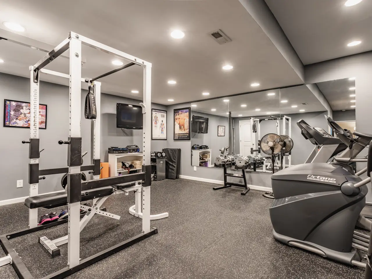 - Expansive workout room with rubber flooring