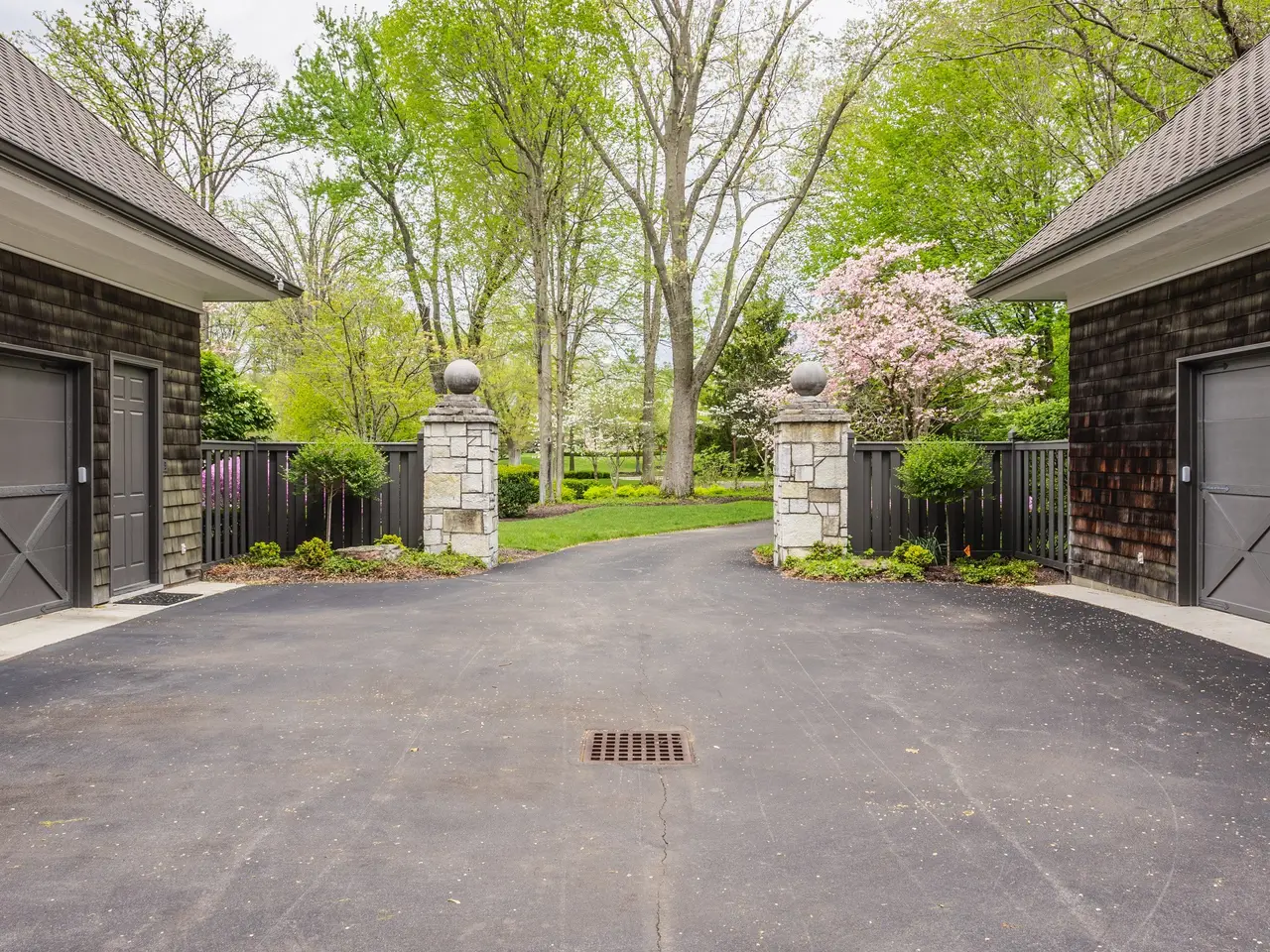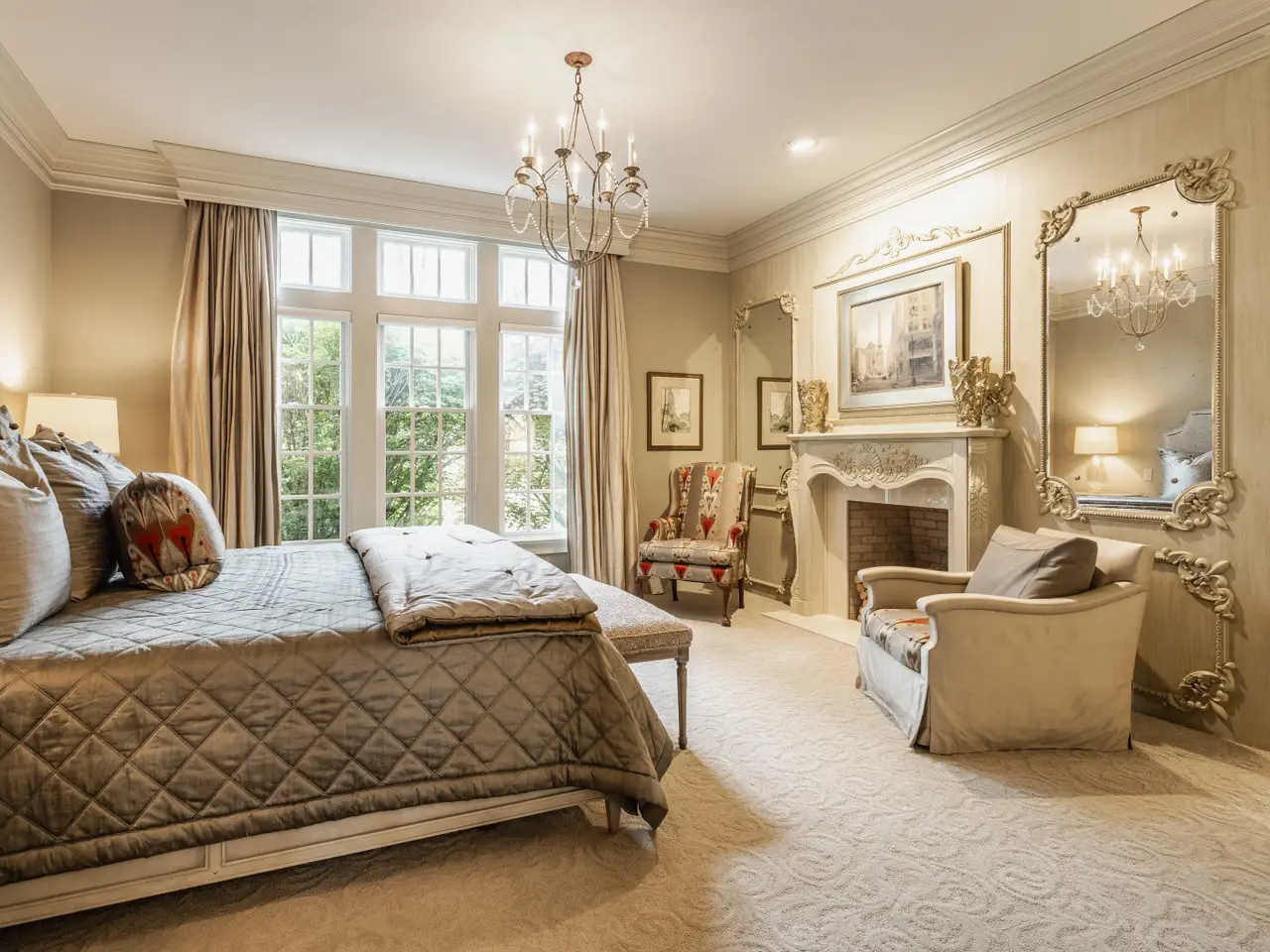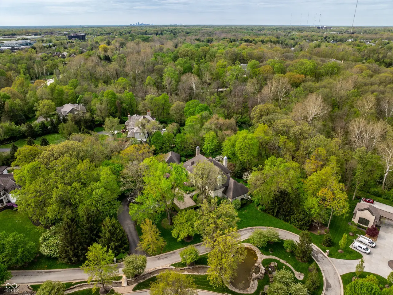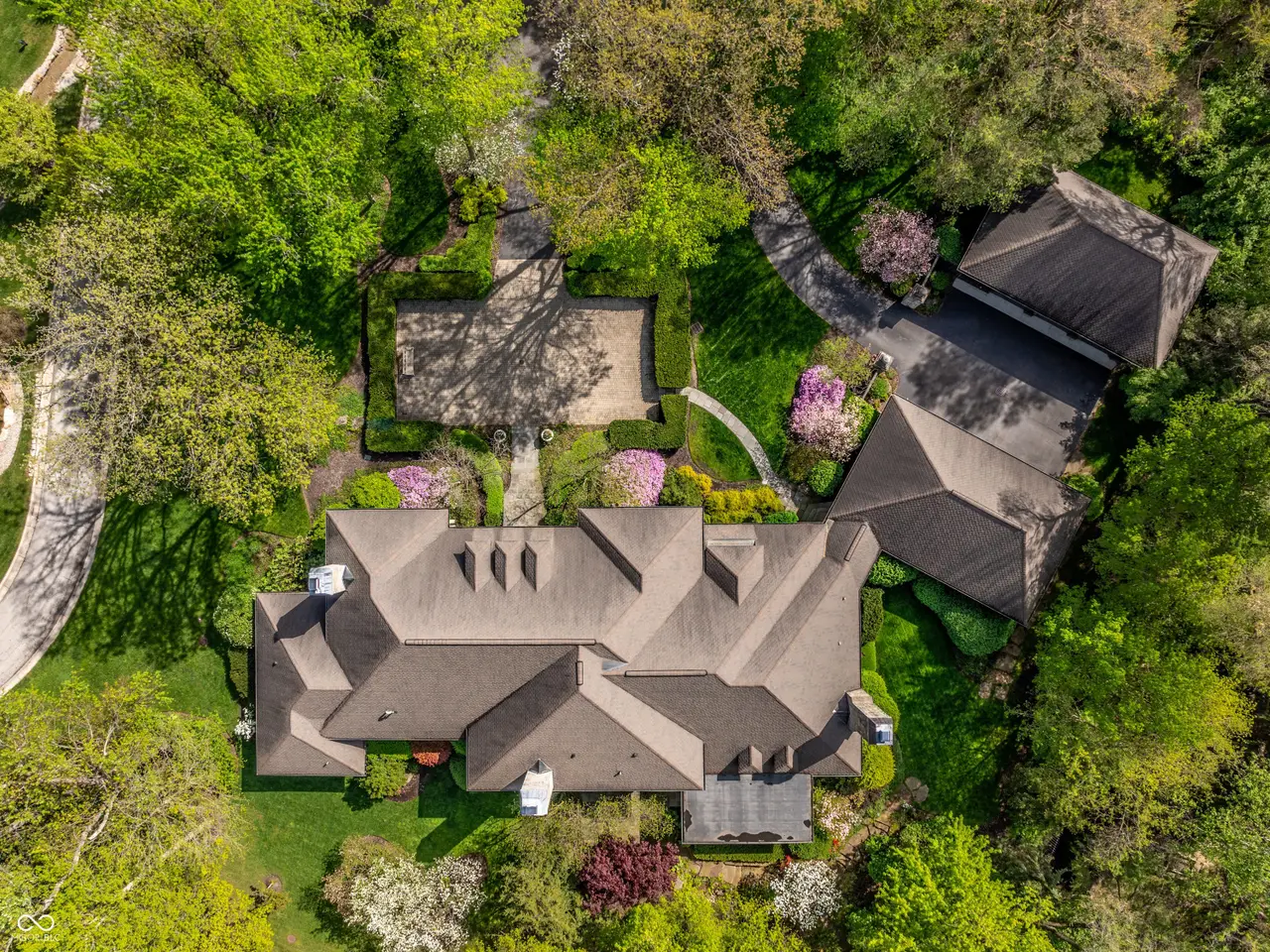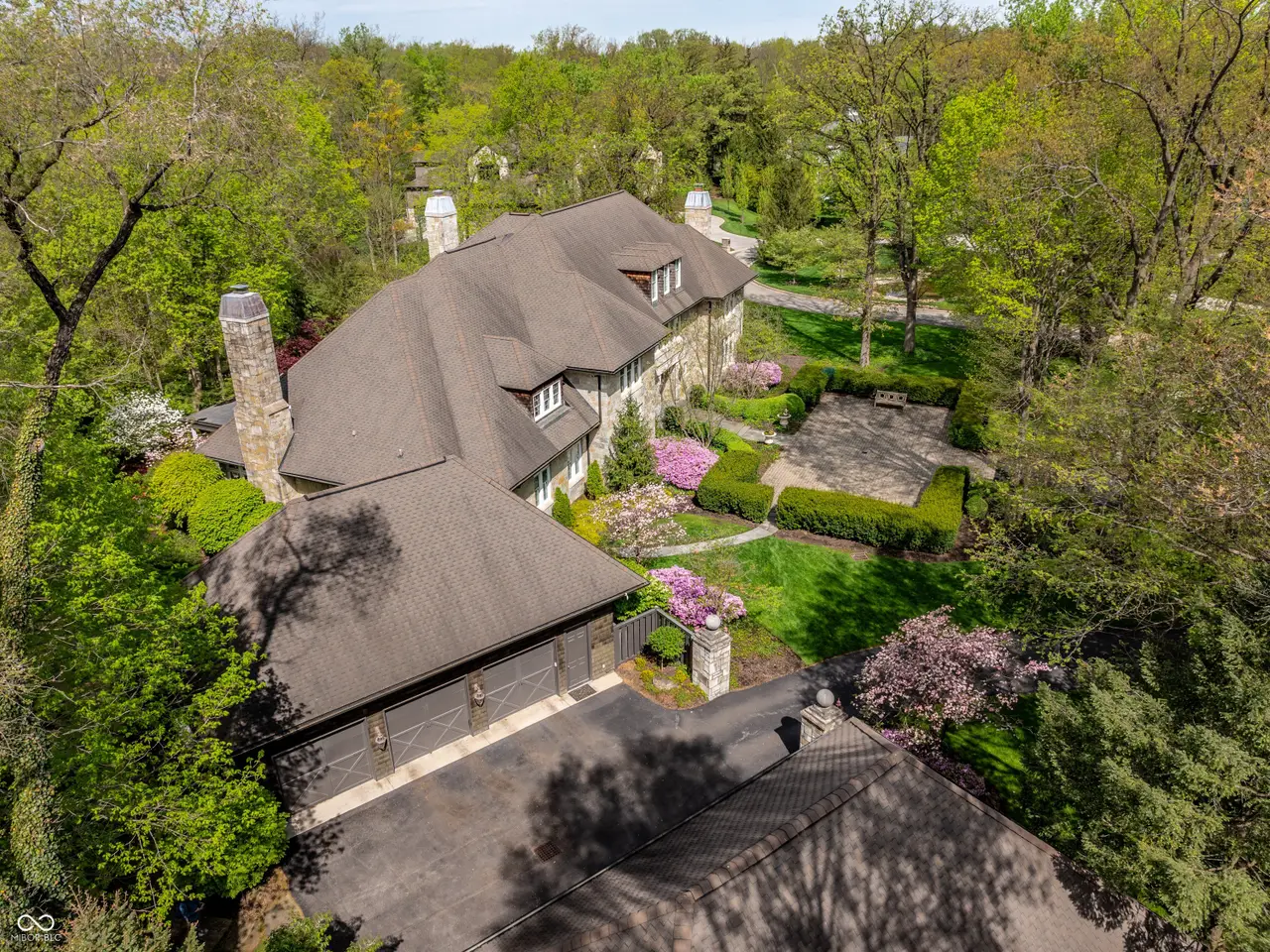 Exquisite custom-built estate on 1.84 acres of lushly landscaped grounds in the prestigious gated community of Springwood, overlooking the serene Nature Conservancy. This breathtaking home features both a 3-car attached garage and a 3-car detached garage. Inside, the grand great room welcomes you with a limestone fireplace and soaring windows that frame the park-like backyard. The formal dining room impresses with elaborate custom moldings and a hand-painted mural, while the main-level den offers a carved marble fireplace, custom built-ins, and TV niche. The main-floor primary suite is a private retreat, complete with a spa-inspired bath featuring a soaking tub, dual vanities, expansive walk-in shower, and an exceptional two-sided walk-in closet. The chef's kitchen, completely remodeled just two years ago, is a culinary masterpiece, boasting a butler's pantry, quartzite countertops, coffee bar, Wolf appliances, 6-burner gas range, built-in fridge/freezer, dual dishwashers, and additional refrigerator drawers. It flows seamlessly into the family room, featuring a limestone fireplace, custom seating, exposed truss ceiling, and stunning views of the backyard. The home also offers two washers and dryers, adding convenience to everyday living. Upstairs, discover four ensuite bedrooms, an office, and a playroom. The finished lower level offers a rec/theatre room, wine cellar, exercise room, and abundant storage. Additional highlights include an elevator and unmatched craftsmanship throughout. This one-of-a-kind estate is the epitome of sophisticated Carmel living, combining luxury, functionality, and timeless elegance.