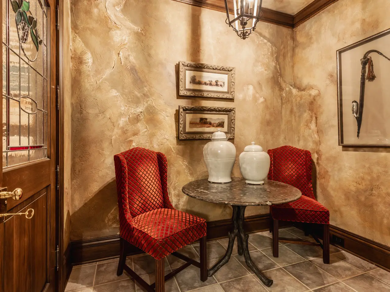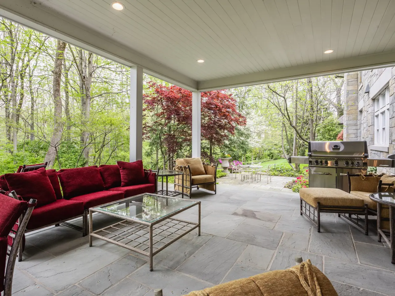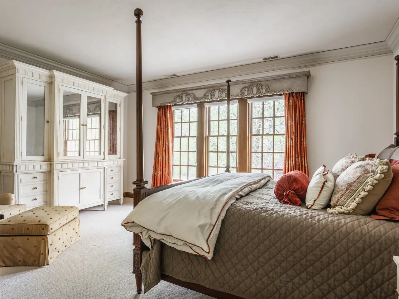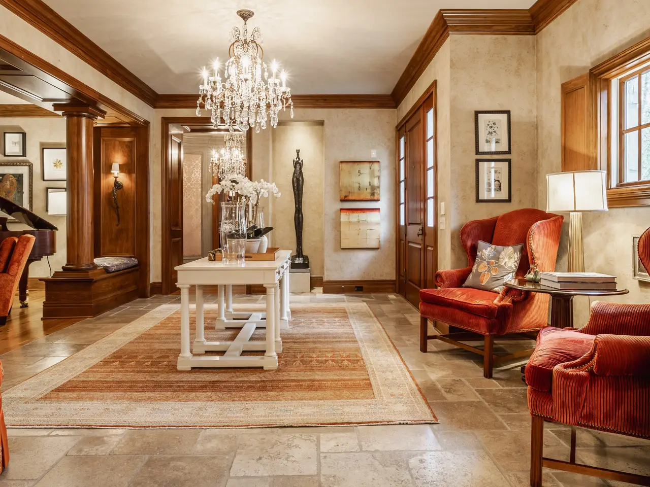 Exquisite custom-built estate on 1.84 acres of lushly landscaped grounds in the prestigious gated community of Springwood, overlooking the serene Nature Conservancy. This breathtaking home features both a 3-car attached garage and a 3-car detached garage. Inside, the grand great room welcomes you with a limestone fireplace and soaring windows that frame the park-like backyard. The formal dining room impresses with elaborate custom moldings and a hand-painted mural, while the main-level den offers a carved marble fireplace, custom built-ins, and TV niche. The main-floor primary suite is a private retreat, complete with a spa-inspired bath featuring a soaking tub, dual vanities, expansive walk-in shower, and an exceptional two-sided walk-in closet. The chef's kitchen, completely remodeled just two years ago, is a culinary masterpiece, boasting a butler's pantry, quartzite countertops, coffee bar, Wolf appliances, 6-burner gas range, built-in fridge/freezer, dual dishwashers, and additional refrigerator drawers. It flows seamlessly into the family room, featuring a limestone fireplace, custom seating, exposed truss ceiling, and stunning views of the backyard. The home also offers two washers and dryers, adding convenience to everyday living. Upstairs, discover four ensuite bedrooms, an office, and a playroom. The finished lower level offers a rec/theatre room, wine cellar, exercise room, and abundant storage. Additional highlights include an elevator and unmatched craftsmanship throughout. This one-of-a-kind estate is the epitome of sophisticated Carmel living, combining luxury, functionality, and timeless elegance.