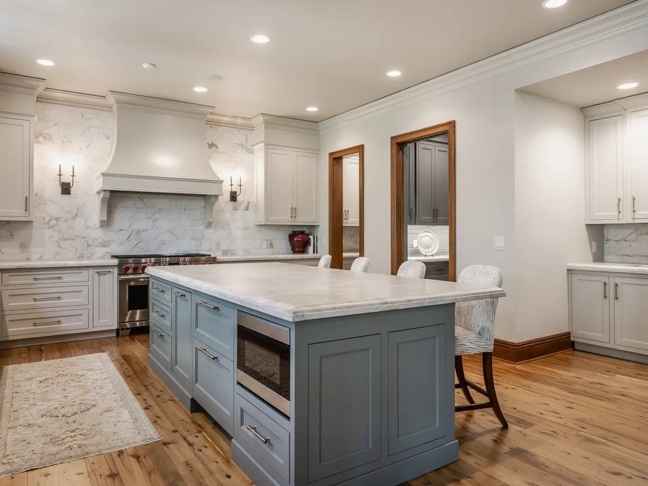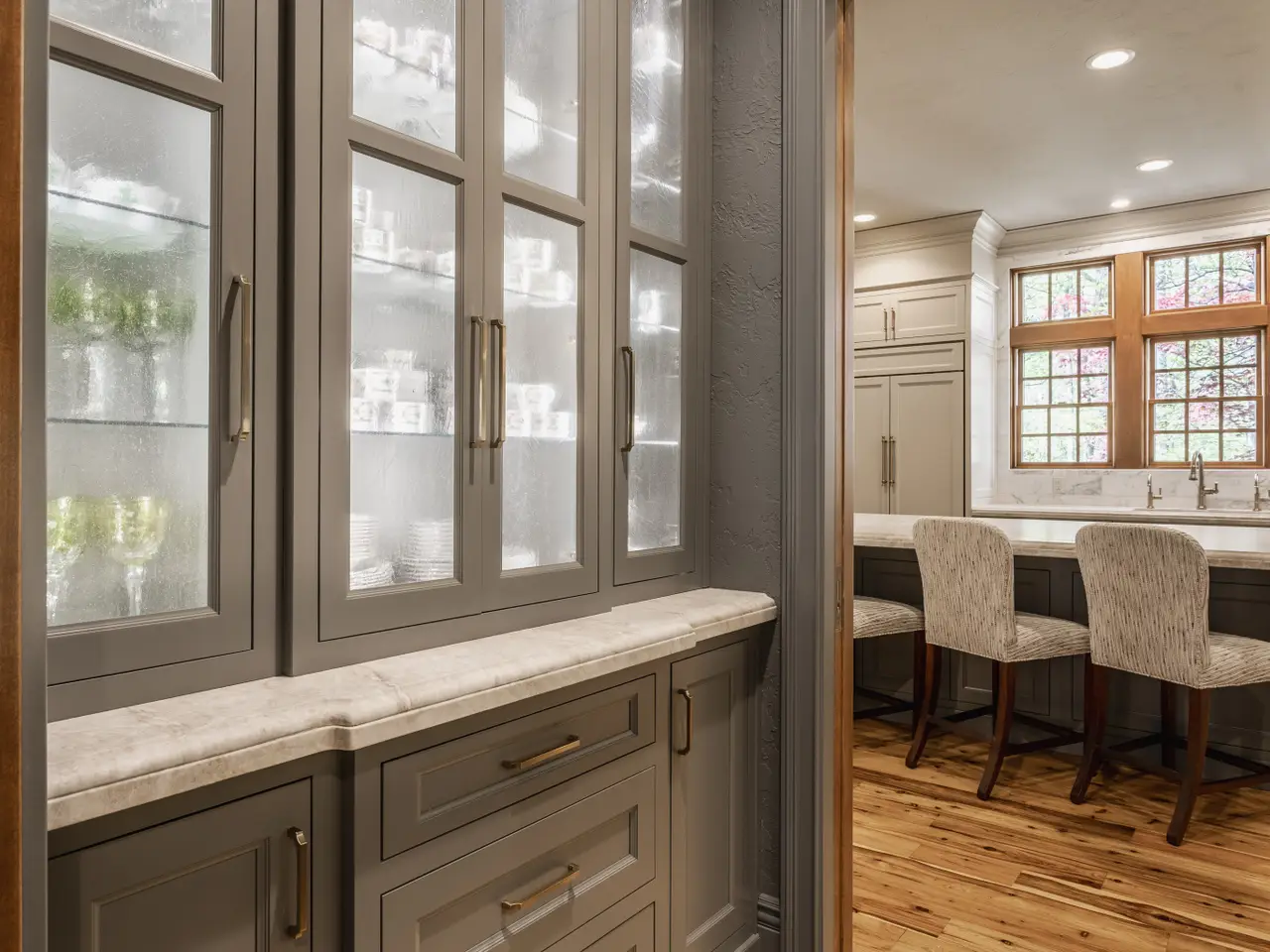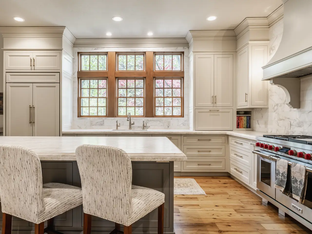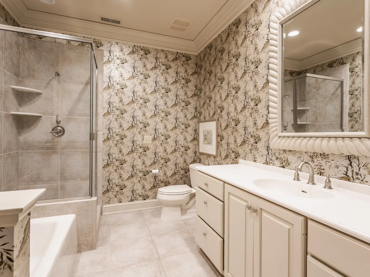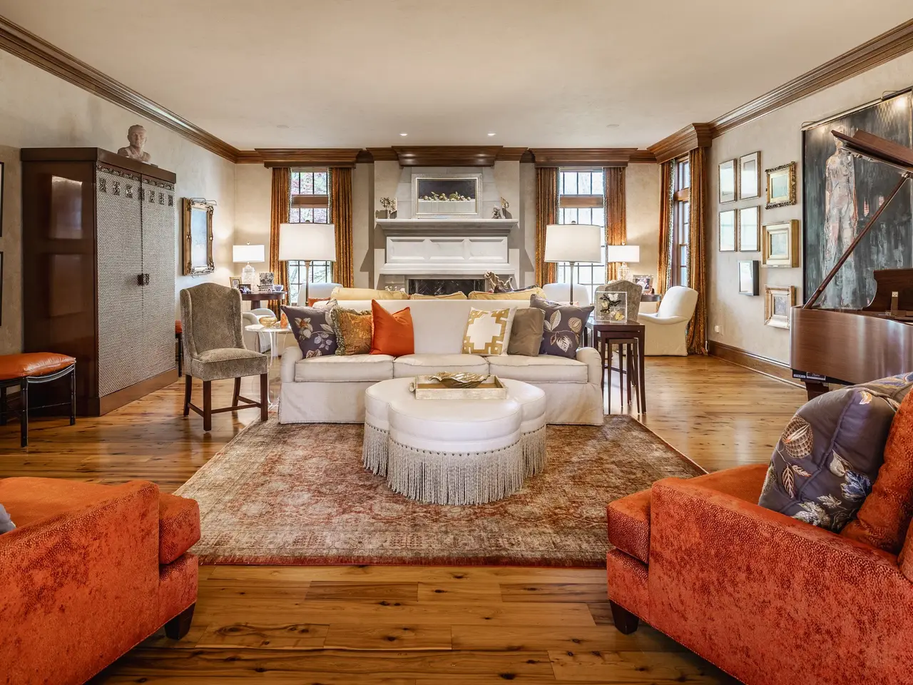 Exquisite custom-built estate on 1.84 acres of lushly landscaped grounds in the prestigious gated community of Springwood, overlooking the serene Nature Conservancy. This breathtaking home features both a 3-car attached garage and a 3-car detached garage. Inside, the grand great room welcomes you with a limestone fireplace and soaring windows that frame the park-like backyard. The formal dining room impresses with elaborate custom moldings and a hand-painted mural, while the main-level den offers a carved marble fireplace, custom built-ins, and TV niche. The main-floor primary suite is a private retreat, complete with a spa-inspired bath featuring a soaking tub, dual vanities, expansive walk-in shower, and an exceptional two-sided walk-in closet. The chef's kitchen, completely remodeled just two years ago, is a culinary masterpiece, boasting a butler's pantry, quartzite countertops, coffee bar, Wolf appliances, 6-burner gas range, built-in fridge/freezer, dual dishwashers, and additional refrigerator drawers. It flows seamlessly into the family room, featuring a limestone fireplace, custom seating, exposed truss ceiling, and stunning views of the backyard. The home also offers two washers and dryers, adding convenience to everyday living. Upstairs, discover four ensuite bedrooms, an office, and a playroom. The finished lower level offers a rec/theatre room, wine cellar, exercise room, and abundant storage. Additional highlights include an elevator and unmatched craftsmanship throughout. This one-of-a-kind estate is the epitome of sophisticated Carmel living, combining luxury, functionality, and timeless elegance.