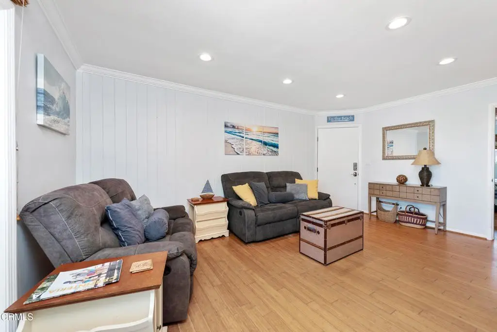 Breathtaking Ocean View Carpinteria Shores Unit Just Steps From The Sand! Gorgeous 2 Bedroom, 1 Bath Unit Offers 683 SF Of Coastal Living Space. Perfectly Located Near The Sand At Carpinteria State Beach. The Bright & Open Living Room Has Crown Molding, Recessed Lighting & Opens To A Private Balcony With Expansive Ocean Views -- Perfect For Morning Coffee Or Sunset Relaxation. The Kitchen Is Appointed With White Tile Countertops, Stainless Steel Hood, Built-In Cooktop, White Cabinetry, Tile Flooring & A Convenient Breakfast Bar. The Adjacent Dining Area Features Recessed Lighting & Built-In Storage, Ideal For Entertaining. Both Bedrooms Offer Natural Light, Ample Closet Space, Ceiling Fans & Easy Access To The Living Area. Beautifully Remodeled Bathroom Boasts Mosaic Tile, Frameless Glass Shower, Pebble Stone Flooring & White Vanity With Brushed Nickel Fixtures. Additional Features Include 1 Parking Space & Hardwood Floors Throughout. Situated In The Partially Gated Carpinteria Shores Complex With Direct Beach Access, On-Site Laundry & Lush Courtyard. Short-Term Rentals Allowed, Making This An Excellent Opportunity For Full-Time Living, A Weekend Retreat Or Income Property (Subject To City Approval & Availability). Enjoy The Beach Town Lifestyle located near Linden Square and Just Steps From Shops, Cafes & The Best Of Carpinteria.