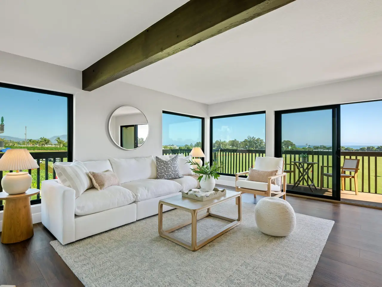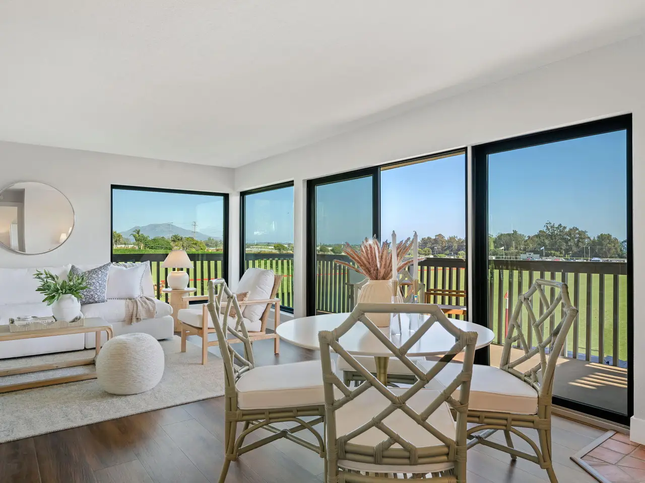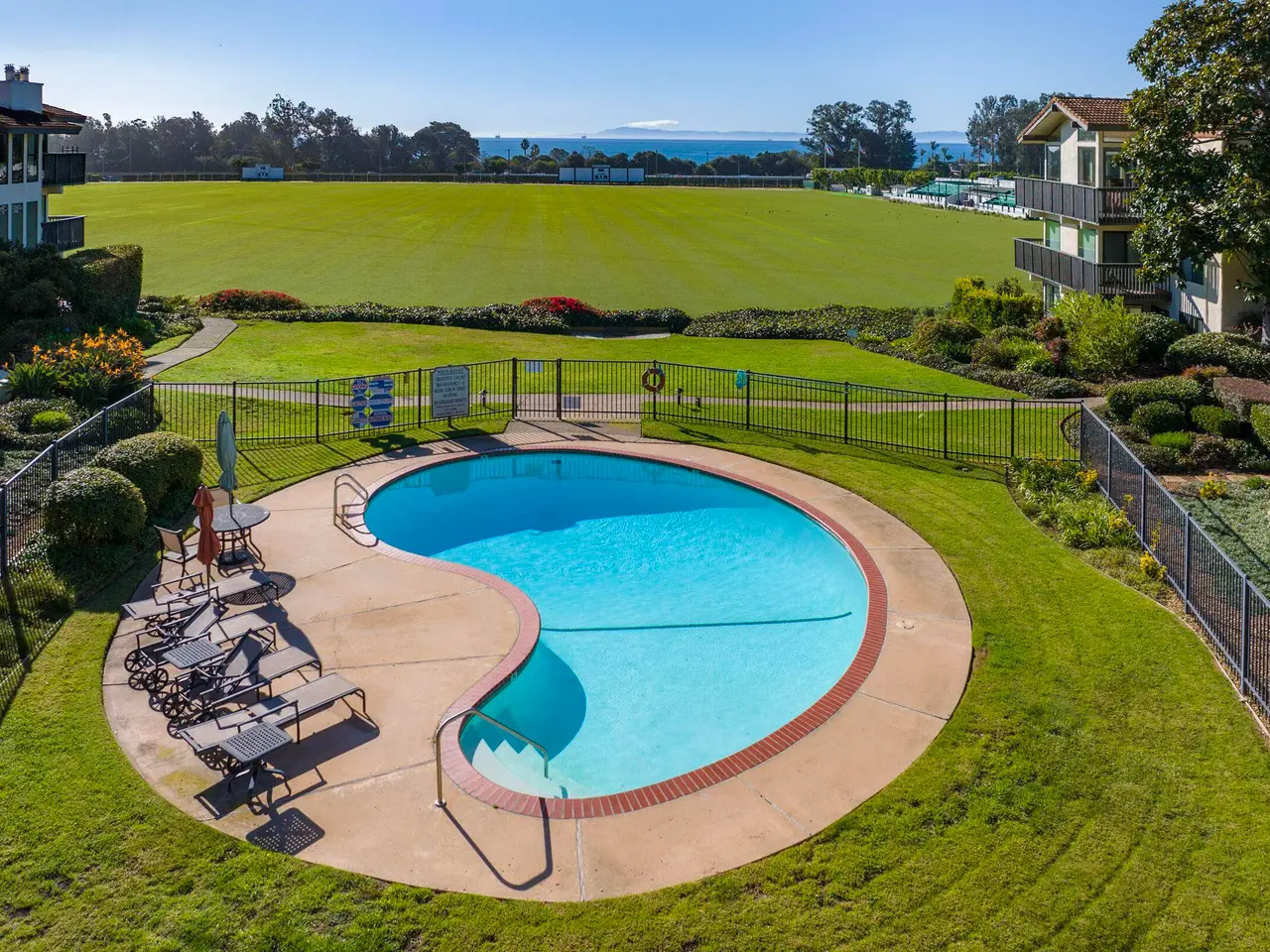 Exceptional opportunity to own a piece history. Never before on market, this coveted SB Polo Club founders' condo offers field-front living with stunning 270-degree wraparound views of mountains, polo fields, ocean and islands. Bathed in natural light, the home radiates an open and airy ambiance, complemented by a cozy gas fireplace. The kitchen features a convenient passthrough bar - perfect for entertaining while the primary bedroom includes a lovely sitting area and view balcony. Two additional bedrooms provide tranquil green space views. Experience the thrill of polo matches from the comfort of your own end-unit home - the ultimate front-row seat. Embrace resort-style living with access to a beautifully updated pool. Recently painted and updated with upgraded windows & flooring throughout.