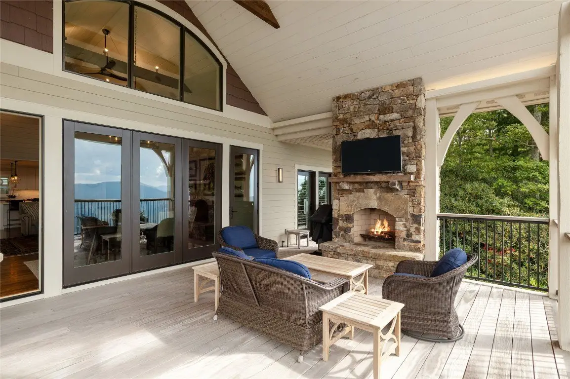 Perched at 4,000 feet atop Little Terrapin Mountain in Cashiers, North Carolina, this remarkable residence offers sweeping mountain views with breathtaking panoramas of Whiteside Mountain, Shortoff Mountain, Yellow Mountain, Devil's Courthouse, and Scaly Mountain in an ever-changing masterpiece of light and landscape. Covered balconies extend from each of the three bedrooms, providing an ideal space to enjoy the cool mountain breezes, while the expansive teak deck with its striking stone fireplace creates an unrivaled setting for outdoor entertaining. The primary suite is also perfectly positioned to showcase the stunning views. Inside, luxury meets craftsmanship at every turn. Shiplap walls and oak flooring bring warmth and character, while the soaring living room fireplace anchors the home with timeless style. The chef's kitchen is designed to impress with a Wolf range, black granite countertops, and a Carrara marble island that invites gathering and conversation. Each bedroom features a spa-like ensuite bathroom with heated floors, offering comfort and indulgence for every guest. On the same floor as the guest suites, a bonus room with a wet bar serves as an oasis for relaxation and activities, or as an office with the stunning mountain views sparking inspiration and contemplation. Thoughtfully designed for modern living, this home also includes a spacious lower-level family room and an outdoor firepit. Comfort and security are provided by cameras, smart wiring and devices, high-speed internet, an on-demand water heater, and a whole-house generator. Whether hosting family and friends or savoring the solitude of the mountains, this exceptional property delivers the perfect blend of natural beauty, refined finishes, and peace of mind.