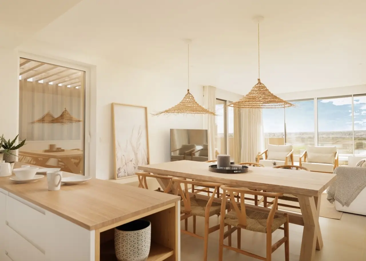 This magnificent 3-bedroom apartment is located in the luxurious Verde Lago resort with direct access to the long walkway of Praia Verde in Altura, Algarve. The modern-style apartment has large areas, a kitchen integrated into the living room with direct access to the balcony, en-suite bedrooms and high-quality finishes. The development has a private parking lot for residents, several swimming pools, a kids club and extensive ecological areas surrounding the resort. Verde Lago is true sustainable sophistication, an exclusive resort and true nature on the edge, with an area of over 80 hectares. It stands out for its vegetation, which fills the surrounding landscape and a glimpse of the coastline that completes the scene. CHARACTERISTICS:Area: 240 m2 | 2 583 sq ft Useful area: 152 m2 | 1 636 sq ft Bedrooms: 3 Bathrooms: 4 Garage: 2 Energy efficiency: A FEATURES: Luxurious apartment Resort Spacious areas Balcony Parking Swimming pools Kids Club Nature Direct access to the beach