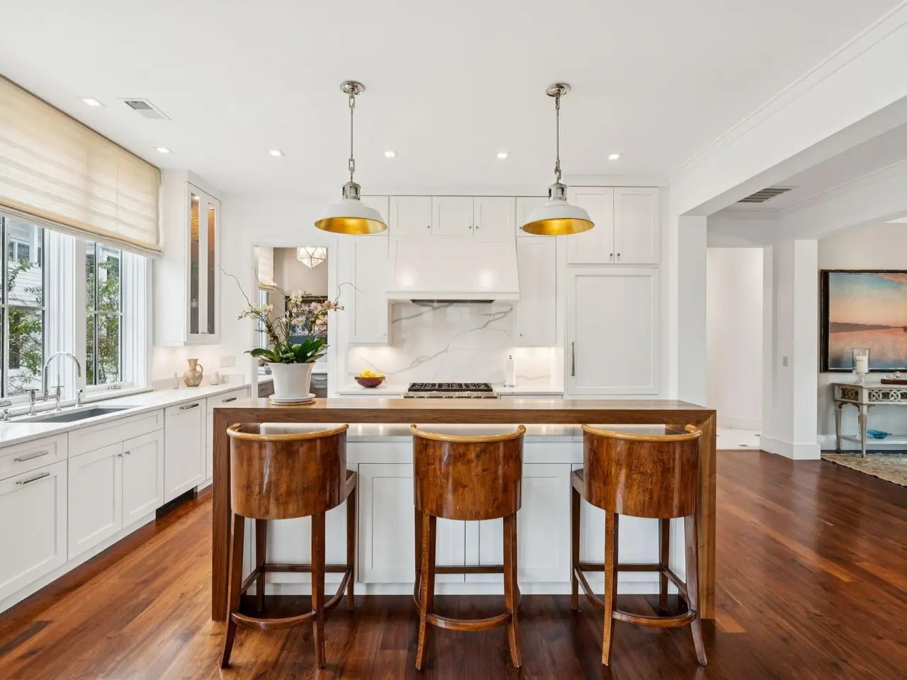 Perfection at every turn! Custom design by Beau Clowney and built by Bennett Hofford. Bright, open floor plan with windows overlooking a beautifully designed landscaped garden. Spacious living room with hand-carved stone fireplace adds to the charm of the sunny open living area. Gourmet kitchen and butler's pantry offers top-of-the-line appliances including Sub-Zero refrigerator, Wolf cooktop and ovens, plus wine cooler and icemaker. Gracious outdoor living areas plus tons of storage. Upstairs terrace adjoins living and dining areas -- perfect for entertaining! First time offered for sale. A real treasure with attention to detail at every turn!