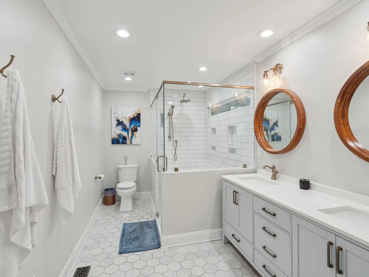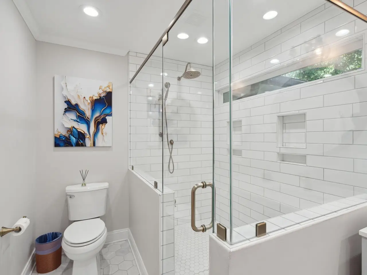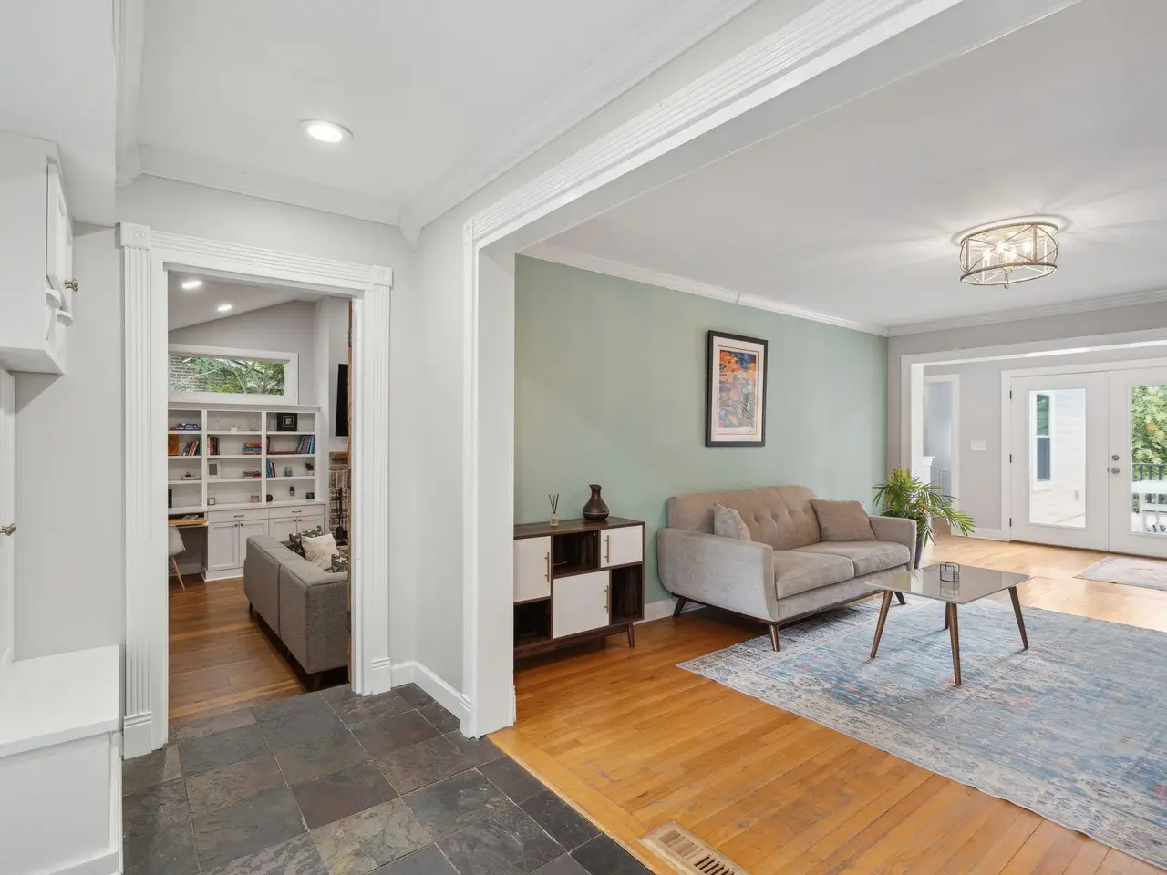 • Cozy fireplace with custom built-ins