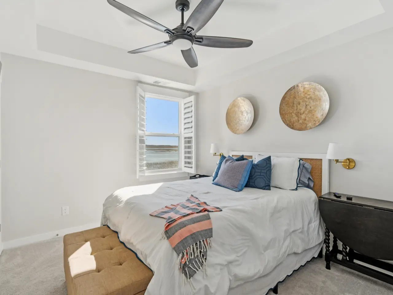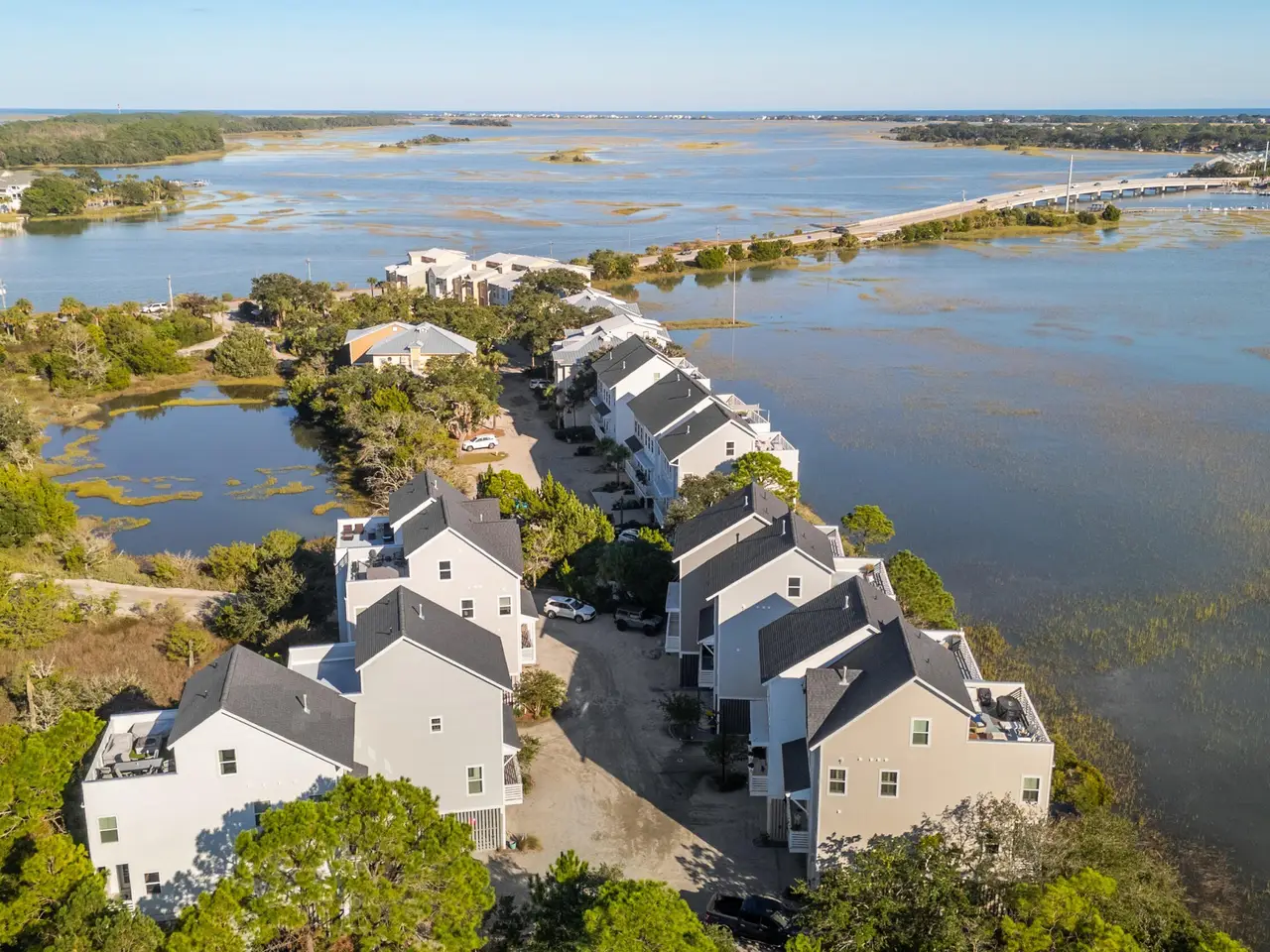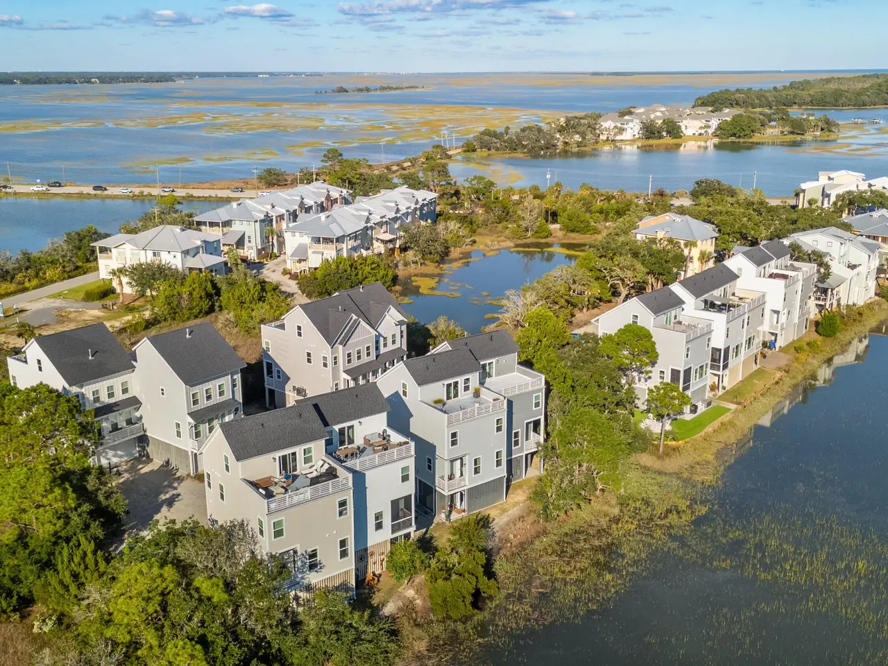 Amazing unobstructed views of both Folly Beach and Folly River from your rooftop deck. Views of the waterfront can also be enjoyed from every window in the home. Explore the natural surroundings with easy water access via the community dock, and Folly Beach is just a ten-minute bike ride away! Nestled on Bowen Island and just minutes to Folly Beach, this townhome, built in 2022 with a charming board and batten elevation and brick pavers. The elevated construction accommodates a two-car garage with ample storage for a golf cart, bikes, kayaks and more. The property has been updated and a list of features are noted in the documents section.The first floor of the home is bright and inviting with 10-foot ceilings, 8-foot doorways, updated lighting, plantation shutters and modern trim casing around doors and windows. The gourmet kitchen is complete with gas range and stainless-steel hood, double wall ovens and an expansive shiplap island with quartz counters. White cabinetry reaches the ceiling, and the oversized pantry provides even more storage space. While the island offers casual bar top seating space, formal dining space is located at the front of the home. An office (presently used as an exercise room) is next to the living room. The living room has access to the main level porch overlooking the marsh while the dining area has its own porch on the front of the home. A powder room completes this level. The second floor contains three bedrooms, each with tray ceilings as well as the laundry facilities. The primary bedroom is large with a custom California Closet system and the ensuite offers a quartz vanity with dual sinks and a large walk-in tiled shower with bench. The two guest rooms enjoy marsh views and one of the rooms has direct access to the guest hall bathroom with tile surround bathtub. Designed for maximum enjoyment of the surrounding marsh, the third-floor rooftop patio offers your own slice of paradise to enjoy anytime. Sliding doors open to the oversized deck with plenty space for outdoor furniture. The additional living space includes a full bathroom as well as a beverage cooler and dry bar. This property has an elevator shaft in place to all three floors which optimized additional storage with custom California Closet Systems. Access the home via the interior stairwell on the garage level. The home is in excellent condition and has been well maintained. Conveniently located to shops, restaurants, Harris Teeter, James Island library, county park at the end of Folly Beach as well as the brand-new Folly Pier.