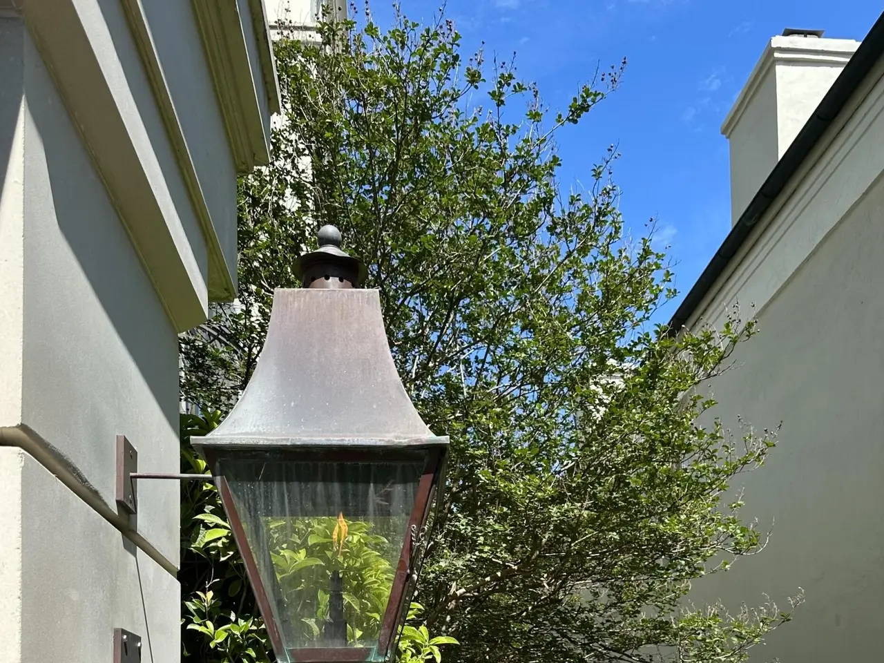 Stone steps with gas lanterns