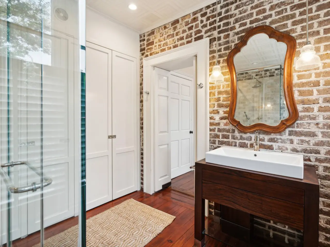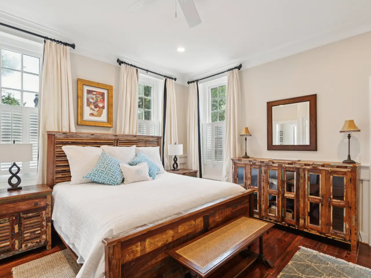 Circa 1764. The Jonathan Badger House. Built by Charleston cabinet maker Badger, this fine Pre-Revolutionary structure is considered to be one of the best examples of exposed Flemish and English bond brick construction from the Georgian period within the old walled city. In its original form, with the main residence now combined with the kitchen house to offer modern comforts with 18th-century architecture. 3,200 sqft, 4 bedrooms, 4.5 bathrooms, generous off-street parking, charming walled garden, high elevation.