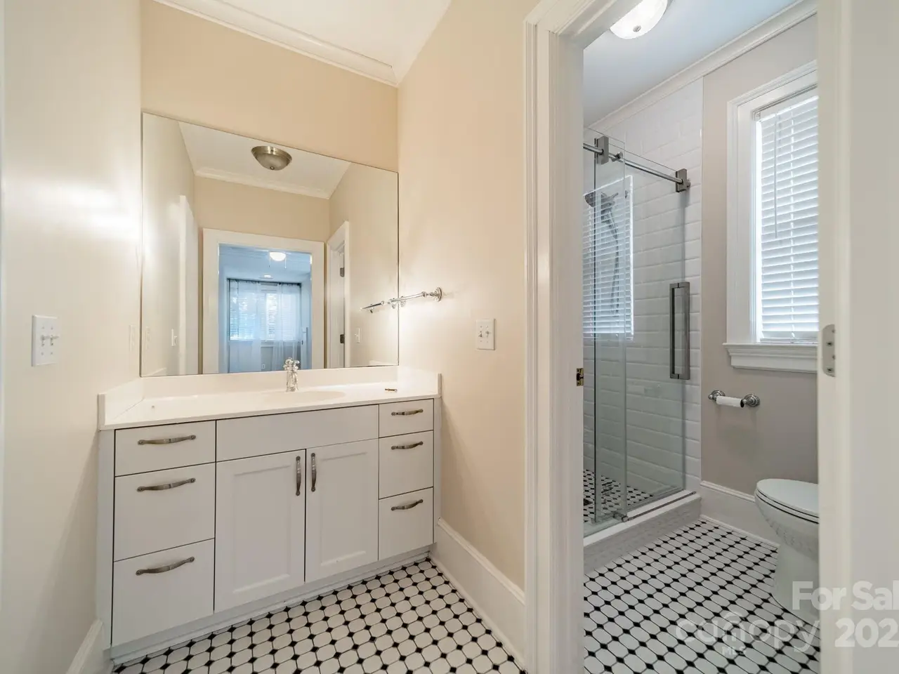 Beautifully updated home in Historic Dilworth! Refinished Brazilian hardwoods throughout the main level, which includes a formal living room with a 12-foot, coffered ceiling and formal dining room. A large, eat-in chef's kitchen has top of the line appliances, custom cabinets, walk-in pantry, and opens to a spacious den with a dry bar and built-in cabinets. French doors lead to a newly renovated outdoor area. First floor primary suite with his-and-her walk-in closets and a fully updated spa like bathroom. New roof in 2023 and main-level HVAC system in 2022. Brand new upstairs carpet, whole-house water filtration system, fresh paint inside and out, Tesla charger, new epoxy flooring in both the oversized two-car garage and the HUGE basement garage workshop. Tons of storage throughout including walk-in, two story attic with built-in shelves. Separate living quarters with full kitchen over the garage. With too many updates and unique features to list, this home is a must see!