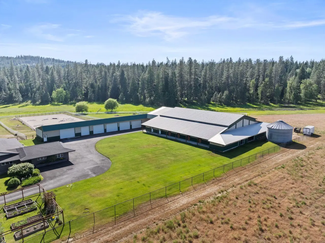 Welcome to Crescent Bend Farm, a meticulously cared for equestrian estate on 20.03 serene acres in Chattaroy featuring a 4,200+ sq ft brick rancher with thoughtfully planned horse facilities for the professional or hobbyist alike. The 5 bed, 3 bath home offers a primary ensuite with dual sinks, a spacious kitchen, office, large mudroom, finished basement, multiple living spaces and covered patio that looks out over the lush, shaded lawn. The 60'x100' indoor arena features overhead lighting & mason sand/rubber footing as well as 5 stalls + foaling stall with power, drive-through hay/equipment storage, and heated tack & feed rooms. The 100'x200' outdoor arena, round pen and 4 fenced paddocks complete the setup. The gated/paved driveway, year-round creek, and oversized 6-bay shop with EV hookup & backup diesel generator are but a few more of the endless amenities. This is a rare, turnkey opportunity for equestrians or anyone seeking refined rural living just minutes from Spokane.