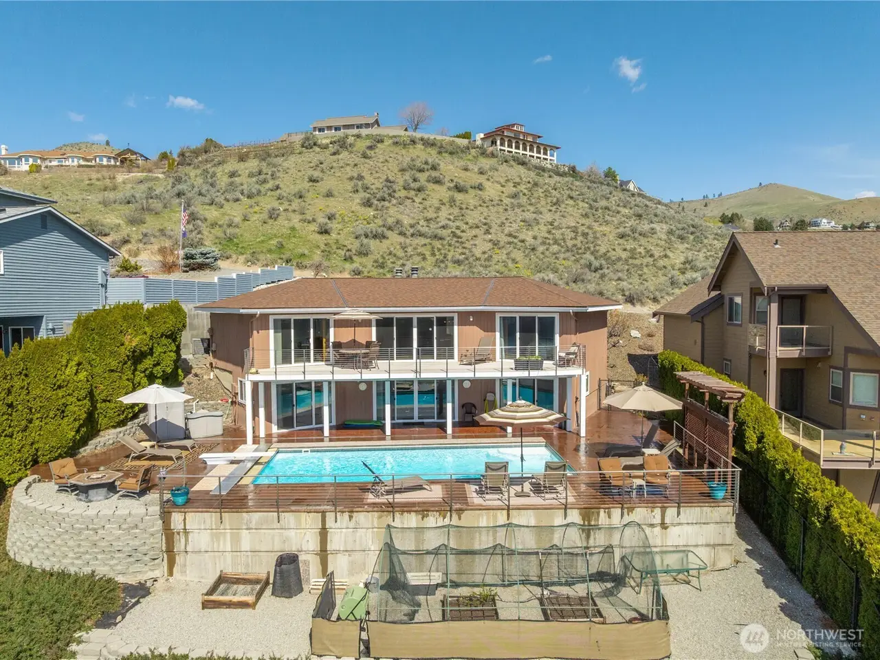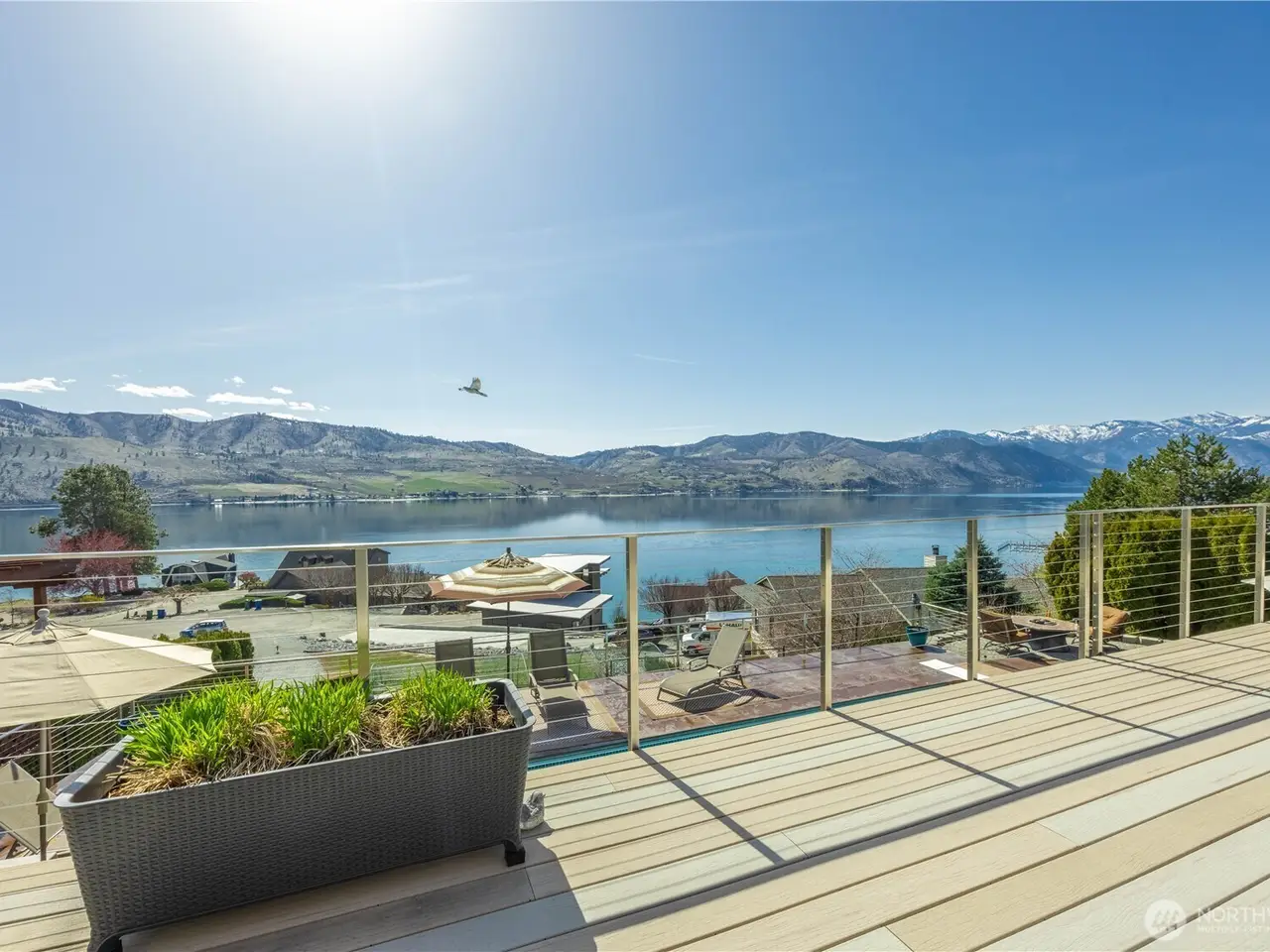 First-rate summer house, found in the crowd favorite Chelan Hills Community Waterfront development displays entertainment living from this 2 bed, 3bath, 2,708SF daylight rambler w/ 2 additional bunkrooms (sleeps 10). At the end of the cul-de-sac, 217 Riviera Dr shows off commanding SW-facing Lake views from every angle of the home, including a massive Trex deck, saltwater filtered pool & stamped concrete patio for fun-in-the-sun living. Additionally, outside, you will be greeted by low-maintenance shrubs & landscaping, fruit trees, a greenhouse area with raised beds, a 2-car garage, and plenty of guest parking. Best valued HOA in Chelan offering 2 WF parks, boat launch, day-use moorage, 2 pools, playgrounds, restrooms, tennis courts, etc.