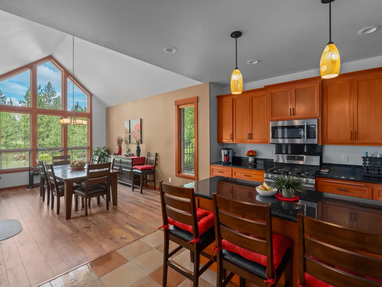 Enjoy golf course living in this gorgeous custom home without the day-to-day buzz of being directly on the course! This 3 bed/2.5 bath premium constructed home sits on an oversized beautifully manicured lot overlooking the #7 and #16th holes. It also features a second detached garage/workshop, a small orchard with a variety of fruit trees, a 100 amp natural gas backup generator, premium exterior of stone or composite shingle, custom two inch slat window blinds, Spanish floor tile directly from Spain, composite wood flooring with rubber backing, custom chandeliers, and much much more! You can also enjoy the surrounding ammenities ranging from the 27 hole golf course, pickleball/tennis courts, 410 acres of trails, airport, 49 Degrees North ski hill, and Mistequa casino to name a few!!