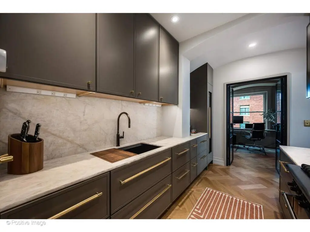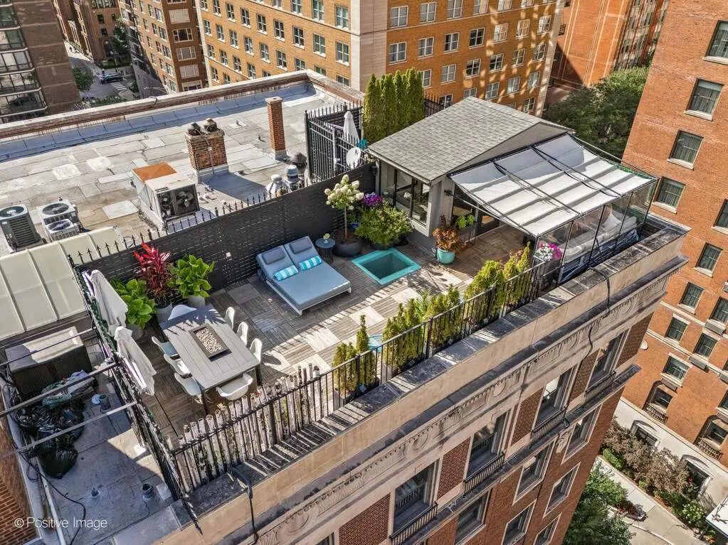 This extraordinary top-floor residence has been completely reimagined in a meticulous 2024 transformation, resulting in a bespoke masterpiece that cannot be replicated. From the moment you enter, it is evident that every detail-every finish, every material-was selected with the highest level of intention and refinement. White oak herringbone floors flow seamlessly throughout, complemented by exquisite custom millwork in the baseboards and crown moldings, creating a timeless architectural frame. In the living room, a dramatic skylight cascades natural light across the space, while a hand-crafted marble mantle encases a wood-burning fireplace, an elegant centerpiece for sophisticated gatherings. The adjoining dining area is anchored by a sculptural Corbett chandelier, setting the tone for elevated entertaining. The chef's kitchen is nothing short of spectacular: iceberg quartzite counters, bespoke cabinetry, and brass and bronze hardware harmonize with a suite of Sub-Zero, Wolf, and Bosch appliances, including a built-in wine cooler. Every switch, outlet, and handle has been thoughtfully upgraded to Buster + Punch, ensuring a cohesive, refined aesthetic. Just beyond, custom glass doors reveal a versatile bedroom currently curated as a home office, complete with a striking tropical Wenge live-edge desk. The jewel-box powder room delights with a custom vanity, Graff fixtures, and statement wallpaper, while a serene den houses bespoke closets, including a concealed laundry with Electrolux appliances and additional storage. The primary suite is a private sanctuary, lavish and light-filled...with custom built-ins, and an extraordinary walk-in closet of glass and steel illuminated by a Tom Dixon fixture. The dual ensuite baths are a study in indulgence, featuring Palmer Industries brass fixtures, Lacava sinks, and luxurious travertine and marble floors. Every mechanical element of the residence was upgraded in the renovation, including new plumbing and electrical systems. A sculptural spiral staircase leads upward to what is arguably the finest private terrace in the Gold Coast. Here, a fully integrated indoor sunroom with bar, refrigerator, and freezer seamlessly transitions to an expansive rooftop oasis. European shade systems define a partially covered lounge area, while a sun-soaked expanse invites relaxation on designer furnishings-all included. A dedicated dining terrace boasts outdoor kitchen with grill, refrigerator, extensive counter space, and storage. Privacy walls, a Sonos sound system, and a professional irrigation system complete this unrivaled alfresco experience, framed by iconic views of the Hancock, Gold Coast architecture, and shimmering lakefront. The residence is set within a building whose infrastructure has been fully revitalized, including new piping, boiler, tuckpointing, masonry, and the addition of a common roof deck. Perfectly positioned at 1255 N State Parkway, this one-of-a-kind home offers the best of city living-just moments from Oak Street Beach, Lincoln Park, and the world-class shopping, five-star dining, and cultural richness of Chicago's Gold Coast. A residence beyond compare. Welcome home.