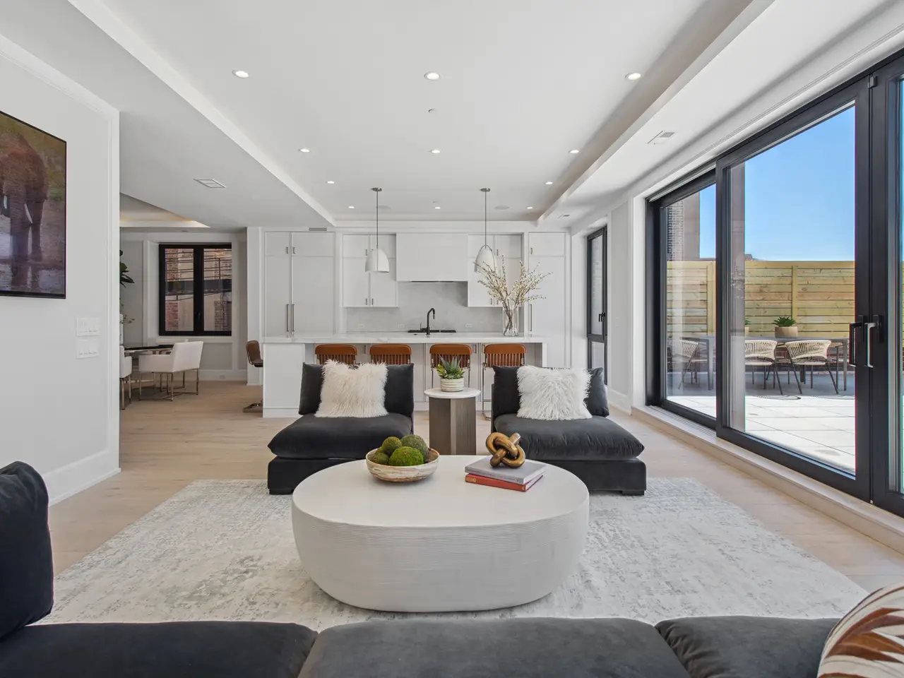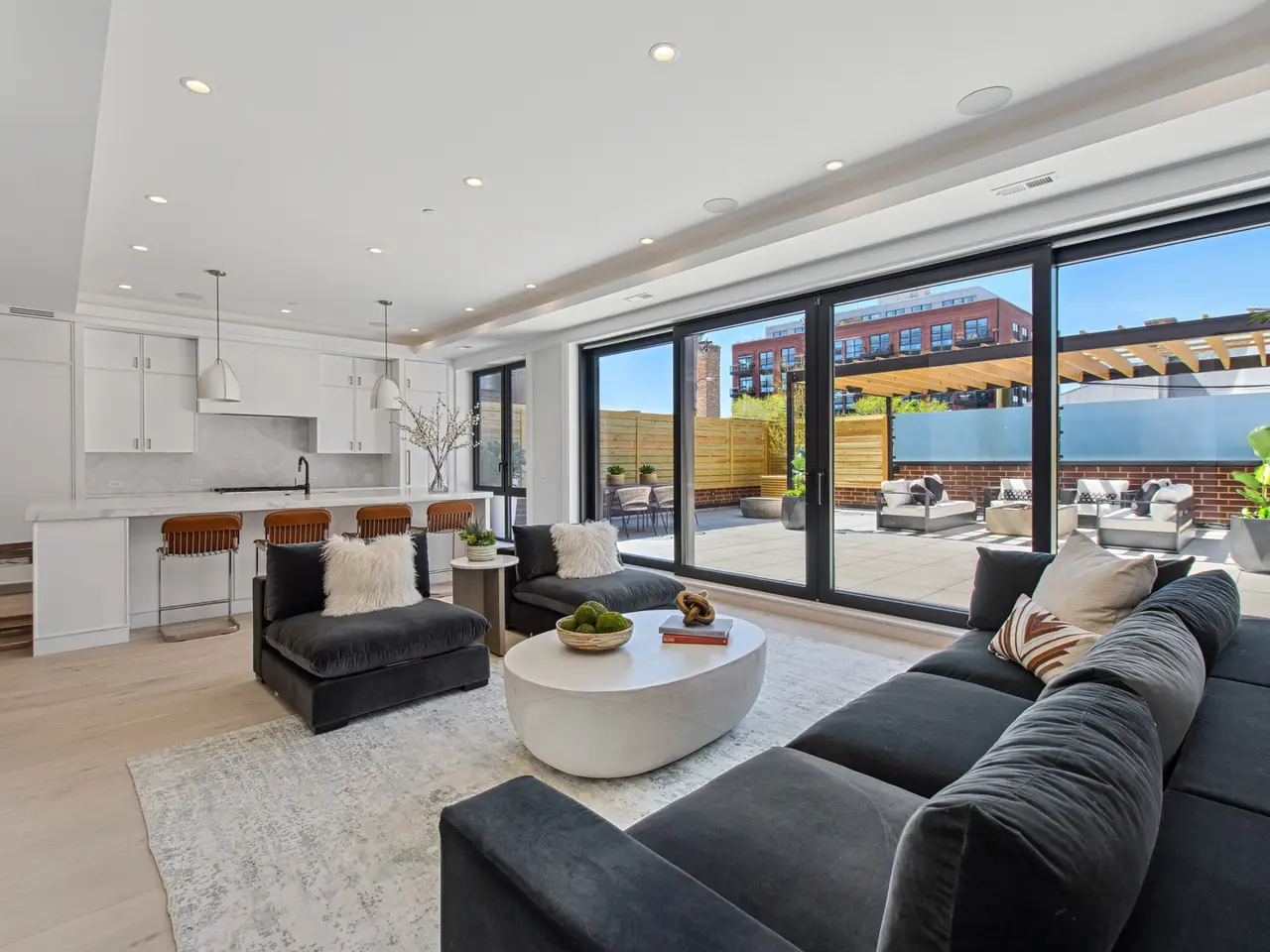This stunning duplex-up features a massive 1200 sq. ft. walk-out terrace and an attached heated 2-car garage, all within an intimate 5-unit boutique elevator building in the heart of the West Loop. Built by the renowned PLD Homes, known for their exceptional design, timeless finishes and unmatched craftsmanship. This home offers high ceilings, floor-to-ceiling windows, wide-plank hardwood floors, and expensive millwork that create an open and airy atmosphere. The main floor spans a remarkable 35 feet wide-uncommon in any neighborhood or building! As you enter, you'll find a formal foyer leading to a spacious, well proportioned living area, with oversized sliding doors seamlessly connecting the indoor and outdoor. This is the best outdoor terrace in the city! Covered portion of the terrace, perfect for year-round grilling, a large pergola, and hookups for water, power, and speakers-ideal for entertaining or everyday living. This space flows effortlessly into the large kitchen and dining area. The chef's kitchen is a dream, featuring a massive island with plenty of seating, custom cabinetry, Thermador appliances, a herringbone backsplash, under-cabinet lighting, and custom - mitered countertops. Floor-to-ceiling windows fill the room with natural light. The dining area comfortably seats 10 and includes built-ins, a wet bar, tray ceiling with lighting, and a dedicated wine fridge column by Gaggenau. The primary bedroom is bathed in light from large windows looking over the terrace, allowing your own design of the view. Another private patio of the primary suite - perfect for a morning coffee or evening wine. The spa-quality bath boasts radiant heated floors, double vanities, an oversized mirror, sconce lighting, a rain shower with steam and bench, a separate water closet, and a soaking tub, set against a feature wall ready for your personal touch. This building is tucked away on the quiet, secluded Willard Court, just a one-block stretch. Yet, it's steps away from the vibrant shops, restaurants, dining at Randolph Street and all the convenience and entertainment that West Loop has to offer.