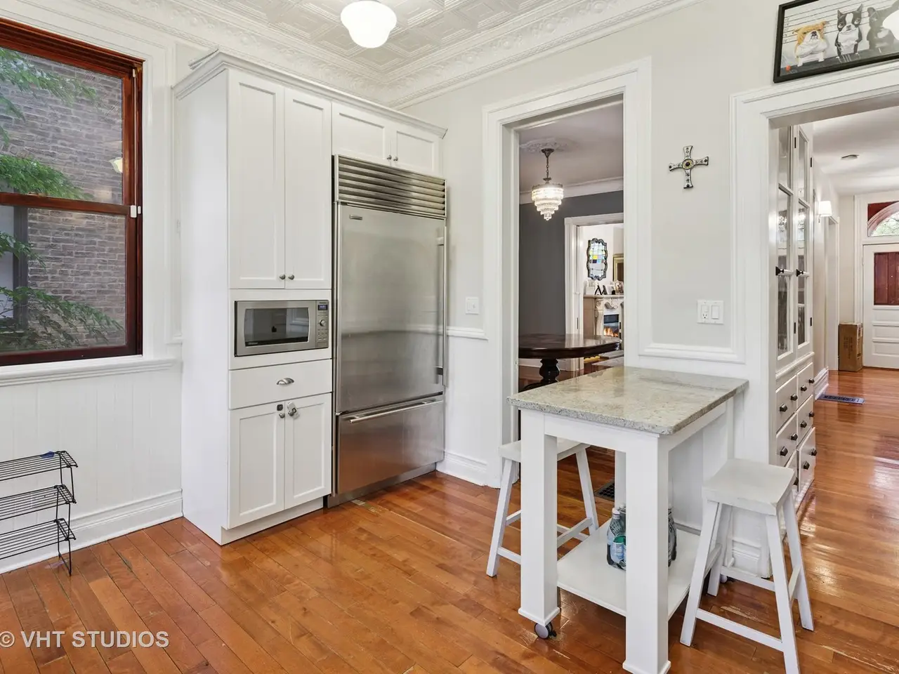 Say hello to 855 W Fullerton, a single family landmark rowhome in Lincoln Park's Seminary Townhome Association...an architecturally significant home in the McCormick Row House District built in 1884. This rarely available 5 bedroom, 4.5 bath home boasts almost 4000 square feet across 4 levels. This home is unmatched by anything on the market today. The absolutely breathtaking vintage architectural details will amaze you. Gorgeous original stained glass windows, 11-foot ceilings with original moldings and trim and millwork, elegant pocket doors in the main living area, a staircase that awes, multiple fireplaces with original stone details and working transoms above the doors in the bedrooms, to name just a few! Enter the main level through a formal entry foyer behind double doors which leads into the primary entertaining area with large living and dining spaces, a bath and a kitchen that overlooks the yard designed with the home chef in mind. The upper levels include a primary bedroom with en suite bath, a secondary en suite bedroom/bath with steam shower, and three additional large bedrooms and another full bathroom across the top floors. The sizable basement includes a rec room, laundry room, another bath, a large storage and utility room. The back yard has rambling two-tier brick and paver patio along with plenty of landscaping and charm. This home features two central HVAC systems (4 and 7 yrs) and exterior parking for two cars within a gated complex with guest parking. Located within the highly desirable Oscar Mayer Elementary and Lincoln Park High School districts, steps from the Fullerton EL, DePaul University, Oz and Lincoln Parks, and restaurants, shopping and amenities with a walk score of 99. ***THIS PROPERTY IS BEING SOLD AS-IS TO AN EXPERIENCED REHABBER OR BUYER. THIS HOME TESTS POSITIVE FOR LEAD AND HAS UNDERGONE REMEDIATION. LEAD IS STILL PRESENT AND FURTHER REMEDIATION IS NECESSARY. PLEASE REQUEST TO REVIEW LEAD TESTING PACKAGE PRIOR TO VIEWING**