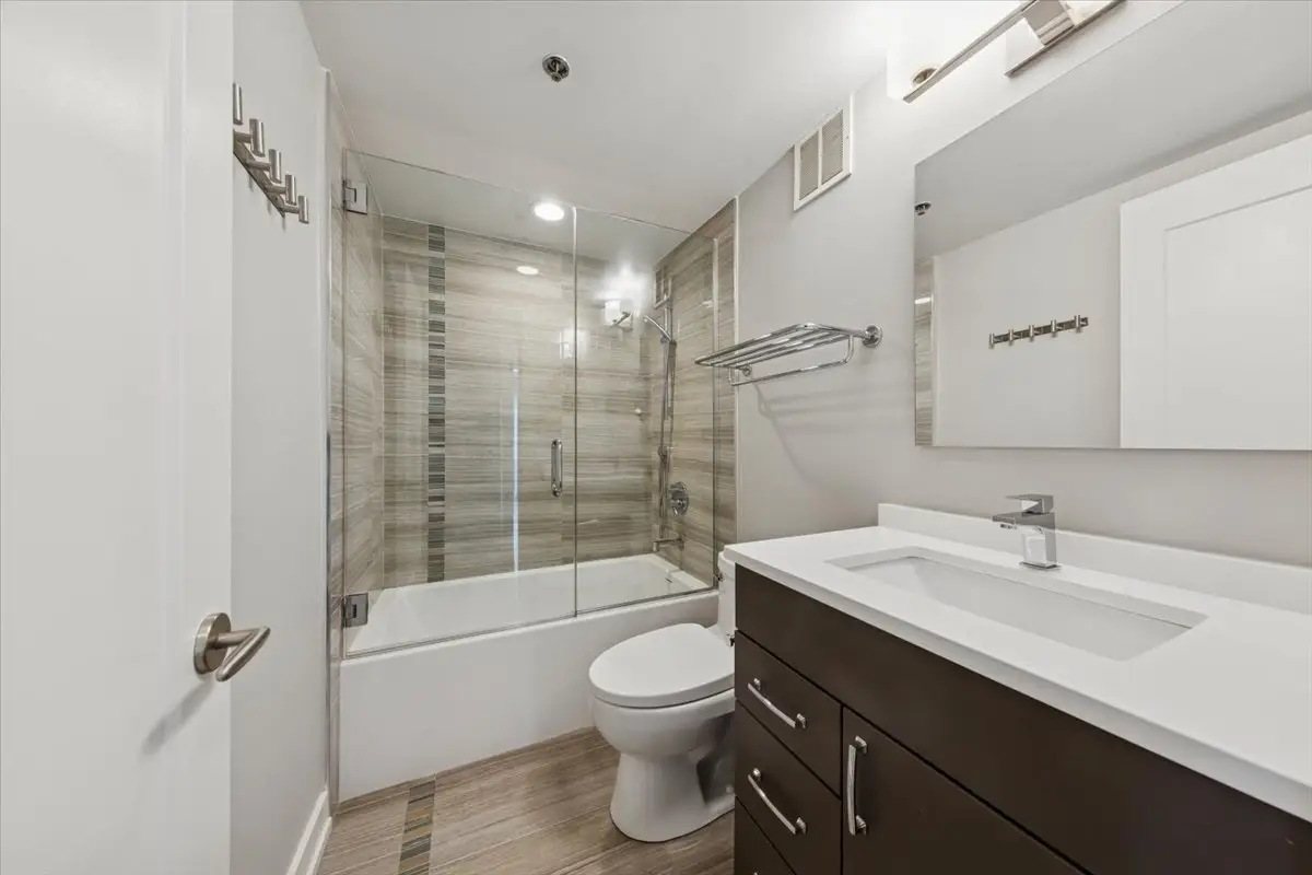 STUNNING RENOVATION has an open, harmonious layout with well-proportioned rooms designed for everyday living and entertaining! Spacious and sun-drenched on a high floor with sweeping west, north, and south views from every floor-to-ceiling window, this beautifully designed 3 bedroom, 2.5 bath residence (3rd BR currently used as Family Room/Office) exudes modern elegance and meticulous attention to detail. Wide plank flooring, custom glass pocket doors, designer lighting, and premium finishes create a seamless blend of sophistication and livability. The gourmet kitchen impresses with island seating, abundant custom cabinetry, high-end appliances, and a wine refrigerator - perfect for entertaining. Distinctive bath materials, integrated sound system, in-unit washer/dryer, and whole-home humidification add comfort and convenience. Heat and air conditioning included (electric for blower). Luxury building in an ideal location - steps from Michigan Avenue's Magnificent Mile shopping, dining, and transportation, this building offers superb service, fitness center, indoor pool, on-site dry cleaners, and valet or self parking for a fee. Don't miss this opportunity to enjoy this impeccable residence offering outstanding value in Chicago's most desirable neighborhoods! ***(NOTE: This floorplan (2100sf) is larger than the ""01"" tier units above the 39th floor).