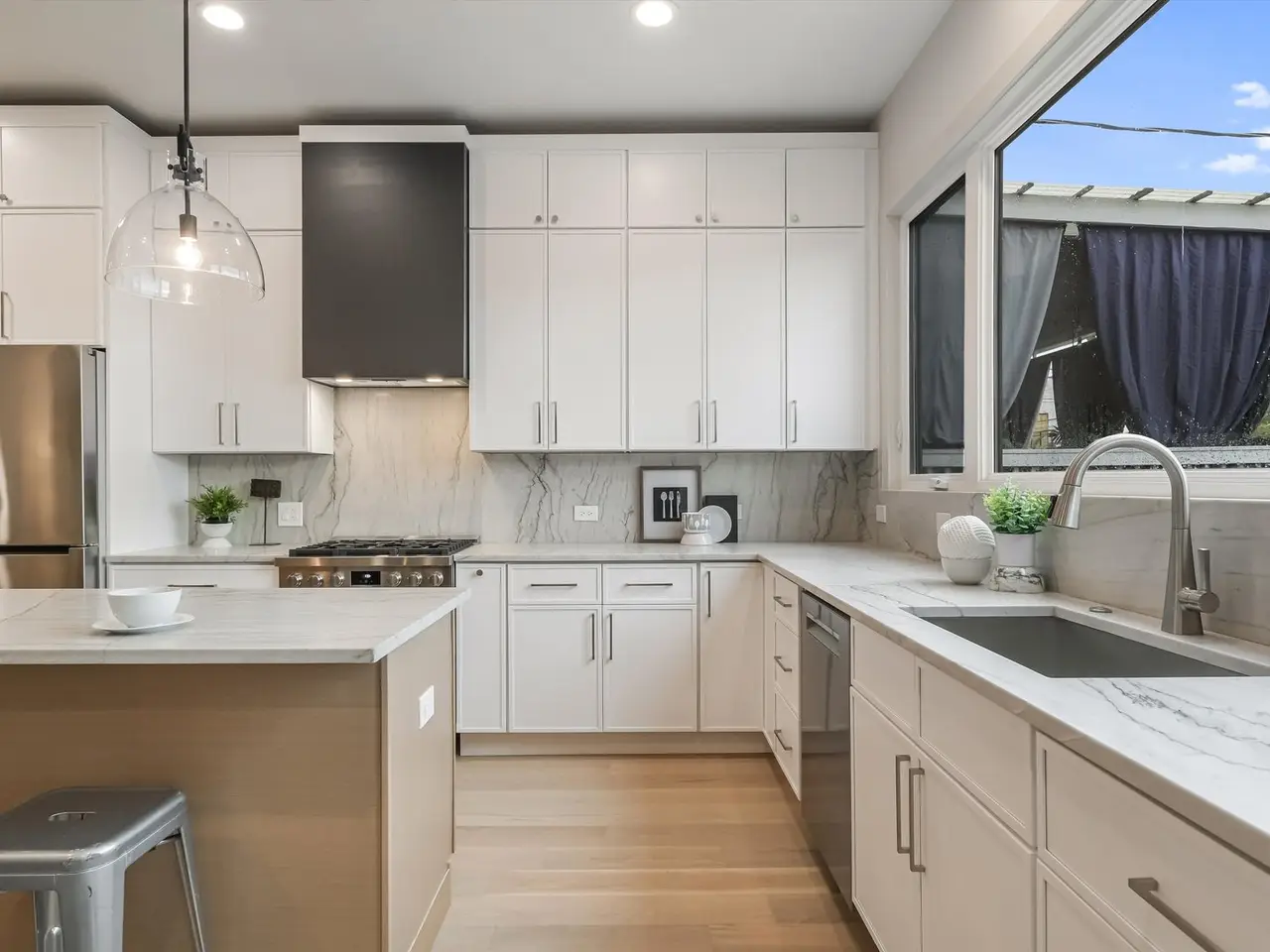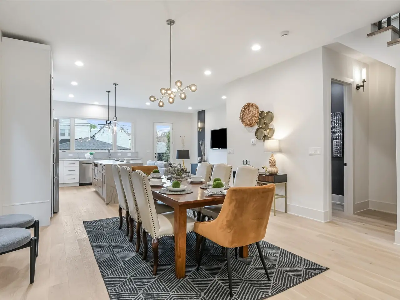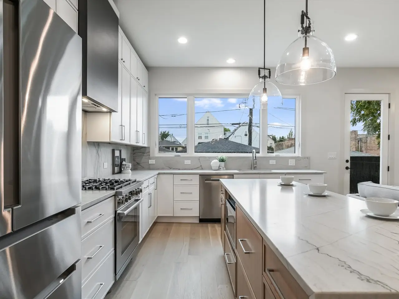 This beautifully reimagined home offers the perfect blend of high-end design, modern functionality, and timeless elegance. The residence boasts an expansive open-concept main level featuring multiple living areas, white oak hardwood flooring throughout, eight-foot solid core doors, and designer-grade finishes that elevate every corner. Some of the upgrades in this home include finished custom closets throughout, heated floors in the primary bathroom, natural quartzite countertops and full height backsplash, and multiple areas with custom built in features. Incredible natural light pours through oversized windows and a thoughtfully placed skylight, highlighting the home's exceptional craftsmanship and airy feel. The kitchen, thoughtfully appointed with Bosch appliances, custom cabinetry, and a large island perfect for entertaining. Upstairs, you'll find three spacious bedrooms and two luxurious bathrooms, including a stunning primary suite with vaulted ceilings, a spa-inspired bathroom featuring a freestanding soaking tub, double vanity, and a walk-in shower. The fully finished basement expands your living space with a large family room + Bar, additional bedroom, and full bathroom-ideal for guests or a home office setup. Dual-zone HVAC ensures year-round comfort throughout all three levels. Enjoy outdoor living with an oversized rear deck, green yard space, and a two-car garage for added convenience. Located just five blocks from the Logan Square Farmers Market, you're steps away from some of the best dining, shopping, and community vibes the neighborhood has to offer. Crafted by an experienced local developer, this is not your typical new construction-every detail has been carefully curated to create a truly special home.