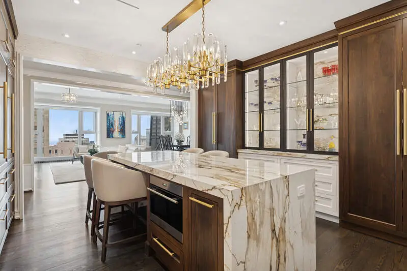 Experience refined elegance, world-class service, and unmatched convenience at one of the Gold Coast's most prestigious addresses-77 E Walton, nestled within the iconic Bloomingdale's Building. With only 47 residences in this boutique association and over $3M in reserves, this exclusive community offers a level of privacy, service, and security that is simply unparalleled. Spanning 3,100 square feet with soaring 10-foot ceilings and full-height windows, Unit 24B is a gracious, light-filled home with breathtaking views of Lake Michigan, the Palmolive, the John Hancock, and all of Michigan Avenue. This custom residence has been fully reimagined for both sophistication and comfort. The designer kitchen is a showpiece: custom, handcrafted, solid walnut cabinetry with brass insets, integrated appliances, a fully enclosed coffee bar, Restoration Hardware lighting, and a dramatic porcelain waterfall island and backsplash. Culinary-grade appliances include a 60" Wolf range with 6 burners and dual infrared griddle, vented hood, Sub-Zero column fridge and freezer, under-counter ice maker, and Cove dishwasher. The main living space feels like a live art installation, framed by stunning skyline views and anchored by a gas fireplace with bespoke walnut and metal shelving on both sides. The expansive primary suite is a true retreat, featuring lake views, a luxurious Calacatta marble bath with oversized soaking tub, dual vanities, a separate glass-enclosed shower, and an extraordinary 16x11 custom walk-in closet. Each of the three bedrooms is designed as a private suite, entered through its own dedicated foyer, with large closets and private baths. The guest suite includes a custom built-in desk and storage-ideal for a home office-and a perfectly framed view of the Palmolive, the lake and Oak Street Beach. The third bedroom has been transformed into an elegant lounge, showcasing a 500-bottle, double-paned glass wine wall, temperature-controlled by the building's four-pipe HVAC system. Wide glass and steel doors create a stunning visual transition from the living area. Additional features include a spacious laundry/mudroom with a secondary entrance, new Lutron LED lighting and built-in surround sound throughout, and a dedicated 11x9 private storage room located on the same floor. Residing in this storied skyscraper-also home to The Four Seasons Hotel, 132 E Dearborn Condos, and The Shops at 900-means having the very best of Chicago at your fingertips. Residents enjoy direct indoor access to Equinox, The Four Seasons, the Astor Hall food court, and luxury retailers including Bloomingdale's, Gucci, Lululemon, J.Crew, and more. Self-care is effortless with onsite services from Merchant & Rhoades Barbershop and Mario Tricoci Salon, and room service from the acclaimed Adorn Restaurant is just a call away. Residents may join The Four Seasons Health Club at exclusive discounted rates. The building offers 24-hour door staff, continuous building monitoring, and exceptional emergency preparedness with a reinforced steel security door that can seal off residential floors from the 8th floor up at the push of a button. Owners benefit from highly attentive staff-particularly helpful for part-time residents-with services that ensure homes are well-maintained even when vacant. With a private 10th-floor rooftop terrace, grill stations, and multiple parking options (valet, EV valet, and self-park), this full-service building leaves nothing to be desired. Monthly assessments of $3,995 cover a full suite of services and amenities including internet, cable, gas, HVAC via the building's four-pipe system, water, doorman, maintenance, and more. The owner only pays for electricity. The association is pet-friendly and is managed with exacting attention to detail by First Service Residential. With its iconic address, dramatic views, bespoke interiors, and unmatched access to luxury and lifestyle, Unit 24B at 77 E Walton is truly exceptional