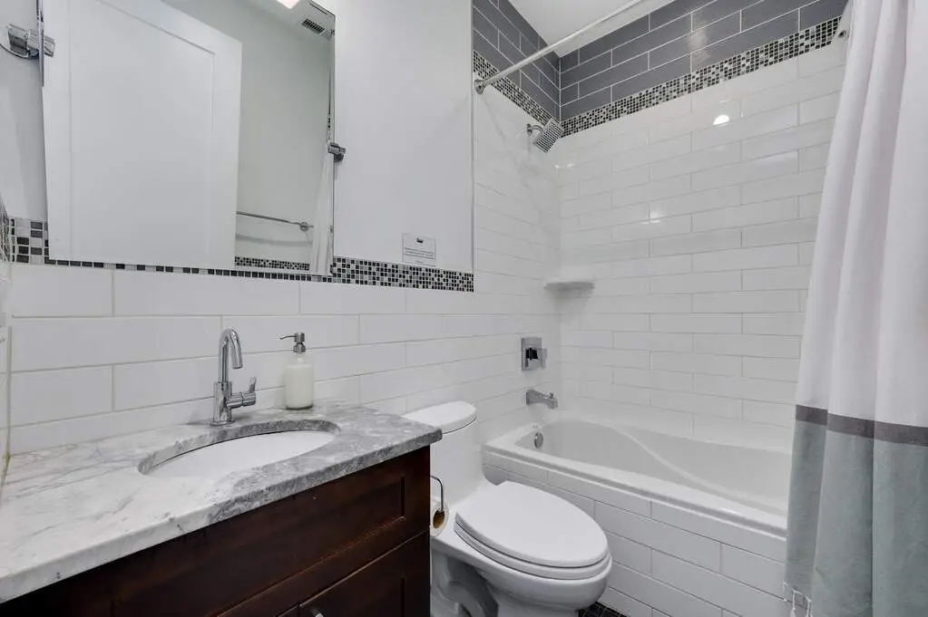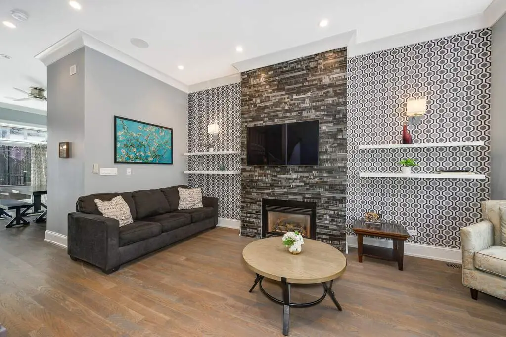 Welcome to this spectacular Gold Coast rowhome! This meticulously renovated property boasts a sophisticated layout and tasteful decor, ensuring a truly luxurious living experience. The main floor is equipped with a guest bedroom and a full guest bath, perfect for accommodating visitors. The large family room on this level provides access to the fabulous yard, creating a seamless indoor-outdoor transition. On the second floor, find an open concept kitchen with ample counter space and premium grade appliances. The functional dining space seamlessly flows into the massive living room, providing the ideal setting for entertaining guests. The highlight of this level is the huge outdoor space, featuring engineered decking and offering direct access to the backyard. Enjoy the abundance of natural light and the beaming southern exposure in this kitchen. The top floor of this home features three bedrooms and two full bathrooms. The primary bathroom is a true oasis, boasting dual vanities, a private glass-enclosed shower, and a gorgeous free-standing tub. The bedrooms are adorned with walk-in closets and offer wonderful natural light, creating a serene and comfortable atmosphere. Designed with great flow and attention to detail, this property also offers ample storage throughout. Includes two deeded indoor garage spots at the building directly behind the home. Don't miss the opportunity to own this magnificent Gold Coast Rowhome, offering luxurious living, stunning outdoor spaces, and an unbeatable location. This is also a great development opportunity with the two neighboring properties at 109 and 111 W Elm.