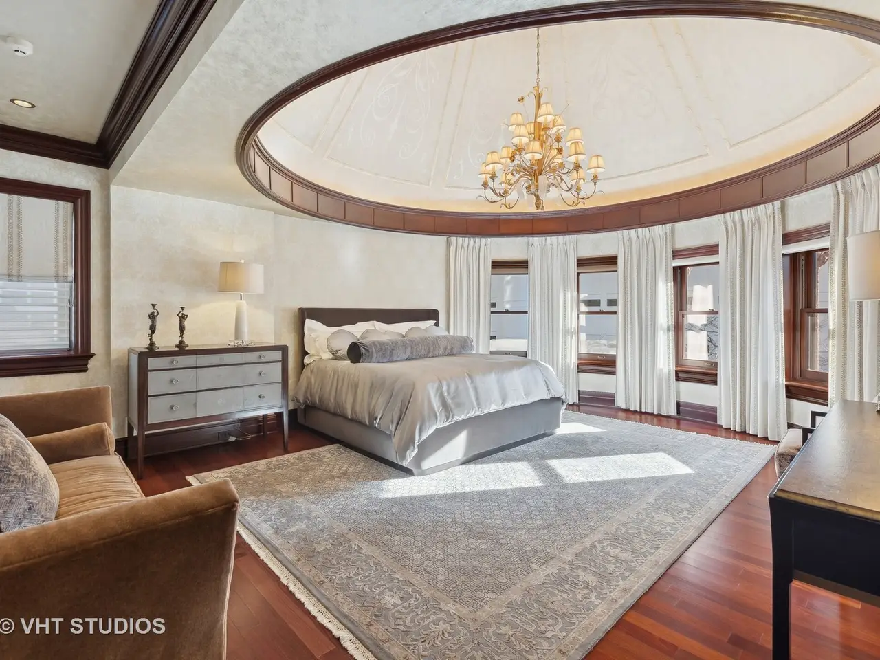 A rare piece of Chicago's history, the Thompson House at 915 N. Dearborn stands as one of the Gold Coast's original architectural treasures. Designed in 1888 by Cobb & Frost, the renowned architects behind the Newberry Library and University of Chicago, this grand residence was among the first to define the Gold Coast neighborhood after the Great Chicago Fire. For the next century, it was owned and used by the Scottish Rite. The property was meticulously restored by its current owner beginning in 2009, blending 19th-century grandeur with modern luxury. The Thompson House is now a nationally registered Historic Landmark. This masterpiece preserves its rich past while offering a remarkably livable floor plan where history, elegance, and everyday comfort coexist effortlessly. Constructed from solid red rock, this 5-bedroom, 4.2-bathroom home spans 13,400 square feet, with an additional 1-bedroom, 1-bathroom carriage house above the 3-car garage. This home showcases exceptional craftsmanship with one-of-a-kind finishes and details throughout. Some of the elements include a refurbished original mosaic floor, custom millwork, hand-carved marble fireplaces from Italy, and custom stained glass. Throughout the home, all wood features, including beams, doors, and trim, are custom made from solid Honduras Mahogany, with intricate touches such as paneling and carving. The staircase, also Honduras Mahogany, was hand crafted to mimic the home's original balusters. Modern features include an elevator servicing all levels, a Control4 system, integrated audio and speaker systems, smart HVAC controls, and full smart home capabilities, making this home as functional as it is beautiful. Enter the home to a large parlor paneled in mahogany. The details greet you right away - hand carved columns, custom stained glass windows and doors, marble floors imported from Turkey, and a hand carved marble fireplace. The adjacent great room is full of natural light from the large, curved windows and south and west exposures. The great room has earned its name sake with a Swarovski crystal chandelier, a hand-carved, book-matched onyx fireplace from Pakistan, and exquisite mahogany woodwork with in-wall cabinetry. Silk wall coverings and marble flooring add to the grandeur. On the opposite side of the foyer you will find the kitchen overlooking the walled courtyard with fountains and fireplace. The kitchen area features two dining areas, high-end appliances, a large island, custom cabinetry, and a laundry room tucked away. The second level landing showcases a stunning library framed by an intricate hand carved arch. You will also see the custom stained glass dome skylight up above. The second floor features the luxurious primary suite, complete with a wet bar, and en-suite bath, and a second bedroom or office with an en-suite bath. You will also find a screened in 3-season porch. On the top floor, there is a sitting room, three additional bedrooms, including two rooms sharing a Jack-and-Jill bathroom, and a third large bedroom with its own en-suite bath. The lower level is designed for relaxation and entertainment, featuring two seating areas, a bar, and a spa. The media area includes a hand-carved Italian Botticino marble fireplace and marble floors with bronze inlay. The galley bar offers an in-wall wine display, and the spa features a sauna, jacuzzi, steam suite, spa dressing rooms, a massage and zen room, and an additional laundry area. A Murano glass mural with an integrated waterfall and glass-blown ceilings add unique artistic elements rarely found in modern homes. Across the courtyard, you will find the cozy coach house, perfect for guests or additional living space. The home includes a heated 3-car garage. The Thompson House is more than just a home; it's a timeless work of art that embodies elegance, craftsmanship, and luxury living in the heart of Chicago.