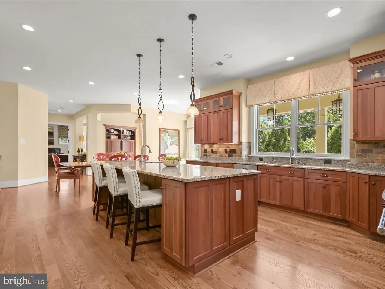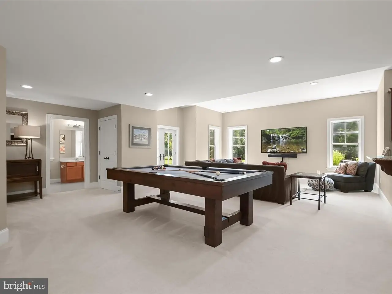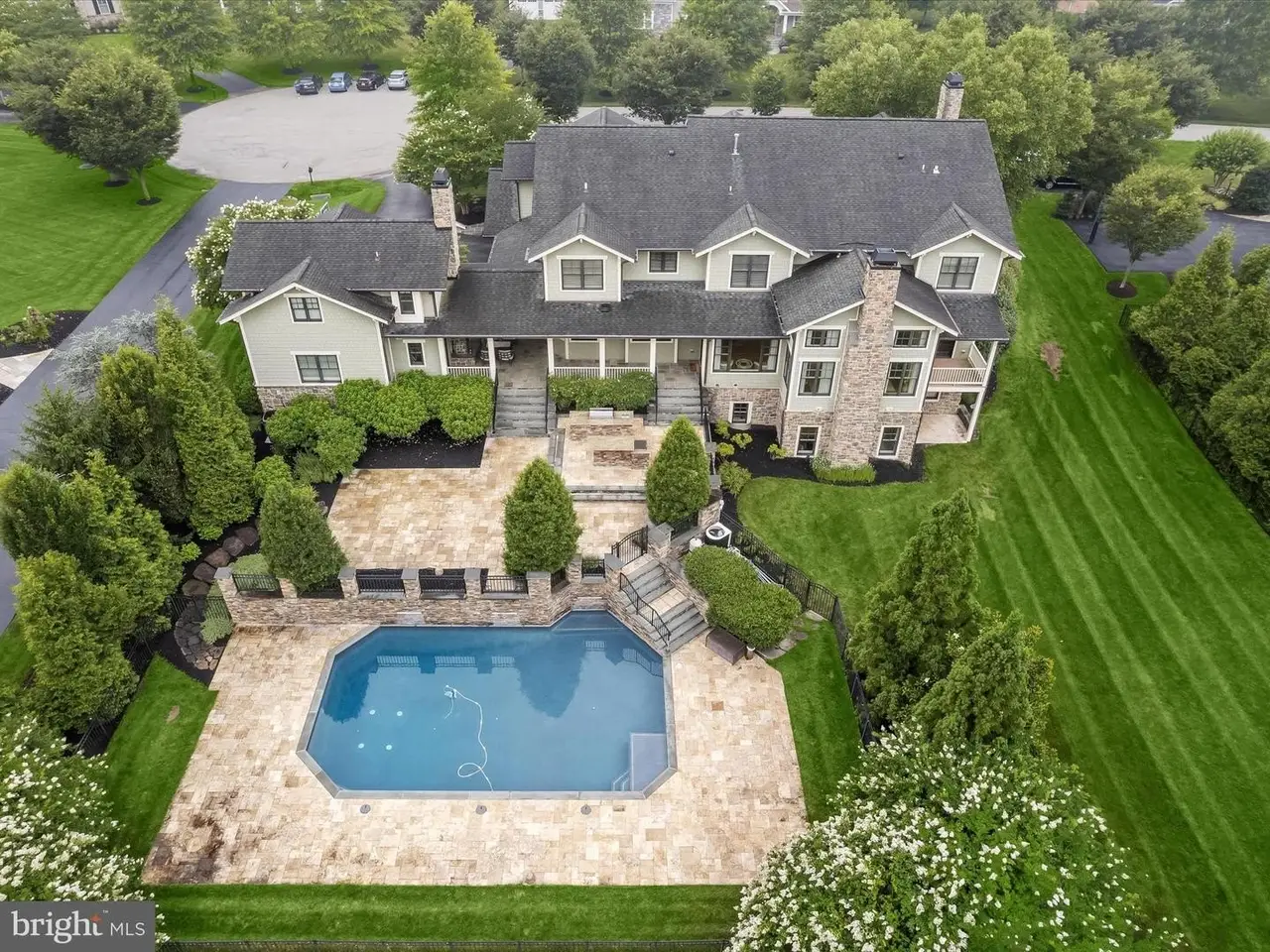 This exceptional custom Craftsman home has been meticulously maintained by its original owners and offers an unparalleled blend of luxury and functionality. The home boasts a stunning heated saltwater pool and a charming portico front entry that welcomes you into a world of elegance. Inside, beautiful hardwood floors flow throughout, enhancing the formal living room with its gas-burning fireplace and crown molding. The formal dining room provides an ideal space for hosting gatherings, while the gorgeous kitchen features professional-grade appliances, an expansive walk-in pantry, and a casual dining area. The two-story great room is a centerpiece, showcasing custom-built shelving and a gas-burning, stone-accented fireplace. A main-level library, complete with a full bath, hobby room, and private balcony, serves as an ideal in-law or Au Pair suite. A second home office provides a dedicated space for remote work. Dual staircases lead to the impressive primary suite, adorned with two walk-in closets and a luxurious bath featuring double vanities, a soaking tub, a water closet, and an oversized shower. The upper level is completed by four generously sized bedrooms, each with access to an en suite or dual-entry bath. The lower level offers an entertainer's dream, including a recreation room with a custom bar, a game room, a media room, a full bath, and ample storage. A separate above-garage apartment provides fully finished space, ready for customization with a kitchen if desired. The outdoor spaces are equally captivating, with an expansive breezeway and patio featuring bluestone finishes, an outdoor fireplace, and a grilling station. The magnificent saltwater pool completes this entertainer's paradise, offering the perfect retreat to end your day. Don't miss this opportunity to own a home of pristine perfection. Backs to acres of HOA and open space