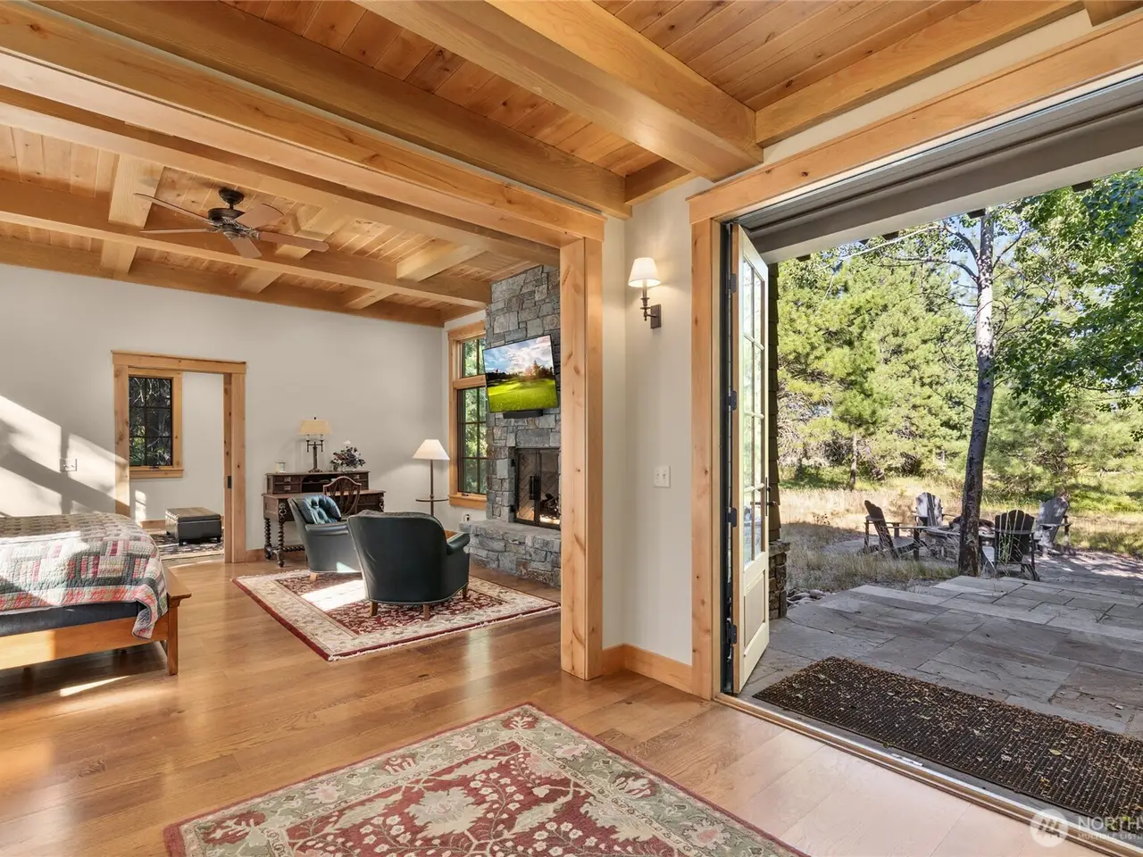 Gorgeous, Elegant home located along 5th Green and 6th Tee Box of the Tumble Creek Golf Course. This stunning 4-bed, 4.5-bath offers timeless Northwest Contemporary design with a perfect blend of style, space, & sophistication. Step inside to an expansive great room with vaulted ceilings and a striking floor-to-ceiling stone fireplace, creating a warm & inviting centerpiece. The extra-large chef's kitchen features two spacious islands, ideal for cooking or entertaining. The main-level primary ensuite offers a private retreat w/ lounge for unwinding in style. Additional highlights include a versatile studio apartment above the garage complete with its own kitchenette, perfect for guests or extended stays. Golf memberships available!
