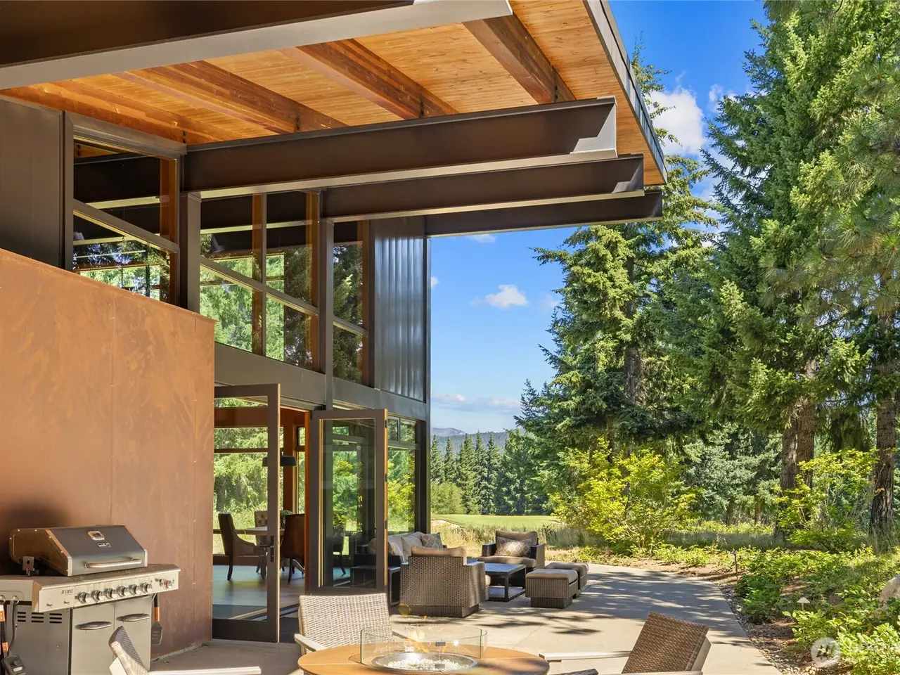 Extraordinary Tumble Creek architectural masterpiece overlooking the 9th green & fairway. Meticulously crafted by renowned Coates Design Architects & Brock Smith Custom Homes. Bespoke eco-luxury: radiant-heated engineered hardwood & concrete floors, mudroom & solar panels. Soaring steel-beam ceilings frame expansive window walls & a NanaWall system. The grand hand-stamped concrete fireplace replicates wood grain. Culinary sanctuary w/oversized zinc island for all your gatherings. Unparalleled vistas throughout. This curated residence includes an 1,134 square foot, 1 bed/1 bath guest house. Simply perfect for hosting! Garage includes: EV charging, temp-controlled wine cellar & abundant storage. Sustainable sophistication meets uncompromising luxury.