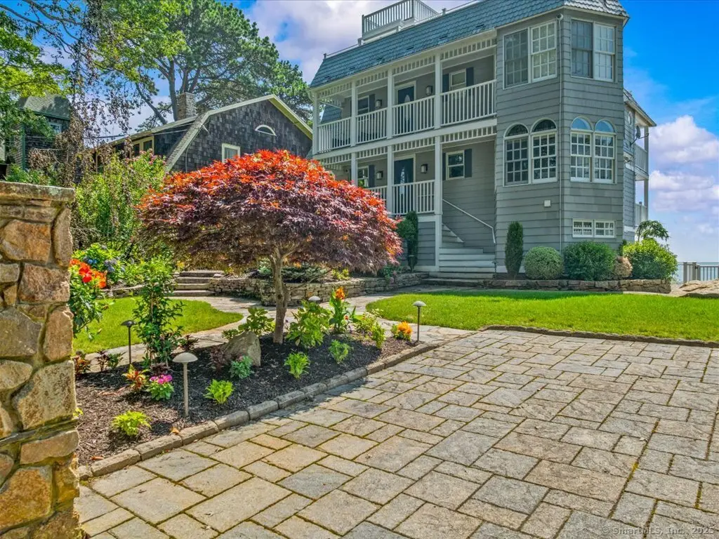 Spectacular waterfront estate! Unparalleled views of Long Island Sound & Duck Island + your own private sandy beach with 72' of frontage! 61 Grove Way is on the market for the first time in 29 years! Stately Victorian exterior aesthetic, designed to maximize the experience of waterfront living on every level of the home. Spacious open-concept remodeled interior living spaces blend elegance with functionality. State-of-the-art kitchen w/ heated floors, granite counters, gas range, high-end appliances, large island & sunny turret breakfast nook is a natural gathering place. Open Living/Dining Area w/ hardwood floors, floor-to-ceiling glass walls & large sliding doors allow sunlight to flood every corner while providing uninterrupted vistas of the shimmering water. Expansive covered decks extend from the house creating outdoor living spaces perfect for lounging, entertaining, or simply soaking in the serenity of the setting. Upper level offers 3 bedrooms designed as personal retreats. Master suite w/ glass sliders to water-facing balcony and bathroom w/ heated floor, stall shower & double sinks. Second bedroom also w/ glass sliders to share the covered deck. This level includes a 3rd bedroom, a cozy turret sitting room & front-facing covered deck. Ascend to the 3rd level for exquisite views of Long Island Sound from the rooftop terrace. Lower level is an entertainer's dream w/ Rec/Playroom, Full bath & laundry room + Event Kitchen offering storage galore! Lower level walks out to flagstone patio w/ outdoor kitchen, hot tub & al fresco dining areas, overlooking your private beach. Fabulous setting to be enjoyed year-round w/ space & a place for everyone! Professionally landscaped grounds with irrigation system. Swimming platform installed 2024 & associated mooring included with property. Member of Grove Beach Improvement Association. Year built states 1898 but was completely renovated in 1990.