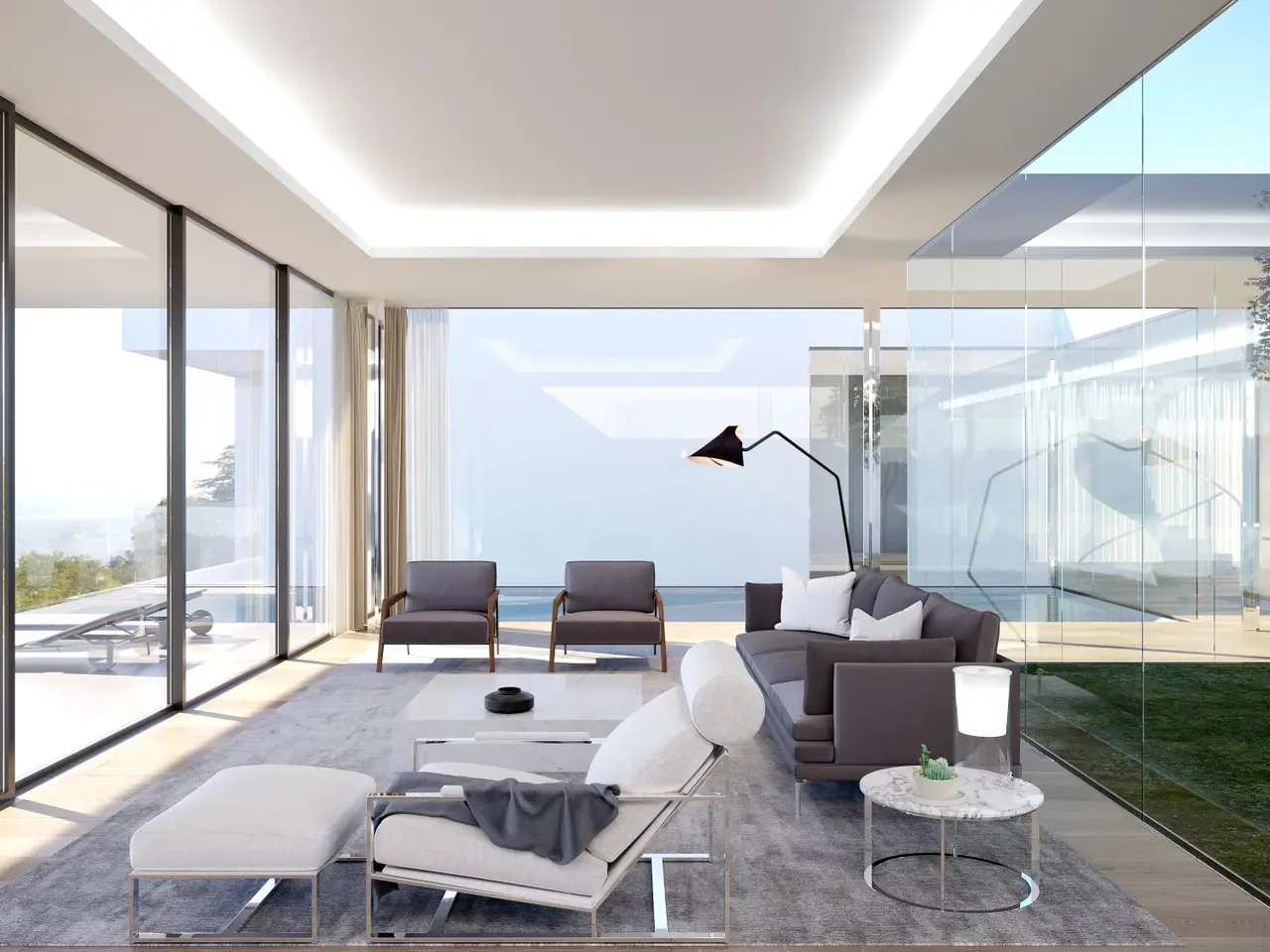 Located in the most prestigious municipality of the Canton of Geneva, this unique property in Cologny represents the pinnacle of contemporary residential luxury. Just minutes from the city center and overlooking the shores of Lake Geneva, Villa Serenity is an exceptional residence, meticulously designed to offer a lifestyle that is as sumptuous as it is discreet. Conceived as a true architectural masterpiece, the property stands out with its clean lines, boldly contemporary structure, and expansive floor-to-ceiling windows that flood the interiors with natural light while offering spectacular views of Geneva and Lake Geneva. Spread over three levels, the interior reveals spacious volumes enhanced by a refined selection of noble materials: veined marble, fine woods, textured leathers, and designer lighting. The main level features a majestic reception room, an open dining area, and a sleek designer kitchen fitted with the most advanced appliances (V-ZUG, Miele, Liebherr). This entire space opens onto a vast panoramic terrace and a heated 14-meter outdoor pool. The lower level is dedicated to the sleeping quarters. It includes four luxurious suites, each with its own marble bathroom and walk-in closet. A refined cigar lounge, a study, and a relaxation lounge complete this floor. Finally, the basement is a true sanctuary of wellness and entertainment. It includes a full spa area with hammam, sauna, massage room, and gym, as well as a private cinema, a game room with billiards, a bar, and a wine and cigar cellar. A panic room completes this ultra-secure layout