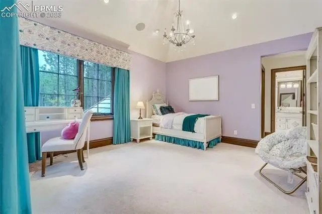 Nestled in the trees overlooking a pond in the exclusive gated community of High Forest Ranch, this luxury retreat offers a seamless integration of luxury, technology, and craftsmanship. The grand entrance opens to a custom wood mosaic floor and water feature. Look thru to the great room as the soaring vaulted ceilings with wood trusses, chandelier, and a wall of windows showcase mountain views. The gourmet kitchen is a chef's dream, featuring top-of the line appliances: 2 Bosch dishwashers, beverage fridge, Capital commercial range, pot filler, Miele speed oven and fridge/freezer. Generous center island with counter seating and dining room complete the area. A cozy Hearthroom with tongue/grove ceiling leads to a beautiful light/bright sunroom! Luxurious primary suite is a tranquil oasis with a fireplace, deck access, 2 closets with built in organizers, washer/dryer and a safe. Spa-like bath features a soaking tub with jets, and a fully enclosed steam shower with a 4 shower heads, jets, and Moen controls. Spiral staircase leads to a loft with a water feature and wet bar. The expansive deck is perfect for Colorado year round with a built in grill, fire pit, and plenty of space to enjoy sunsets and views. Upstairs find 3 spacious bedrooms all with private bath and walk-in closets, and 1 of the 3 offices. Basement with a large rec room and amenities provide plentiful opportunity to entertain. Gorgeous hand crafted bar has a Safe room with Fort Knox vault door hidden behind shelving, and a wine room is next to it! Incredible home theater, Poker/game room, exercise room complete the area. Executive style office provides a private entrance and is ideal for client meetings. Indoor pool and spa to enjoy year round, along with a wet bar, and a laundry room/bathroom for convenience. Electric and solar thermal panels are ownedHigh Forest Ranch offers 33 acres of green space, 8 miles of hiking trails, community clubhouse, 2 fishing ponds! *Comprehensive list of technology