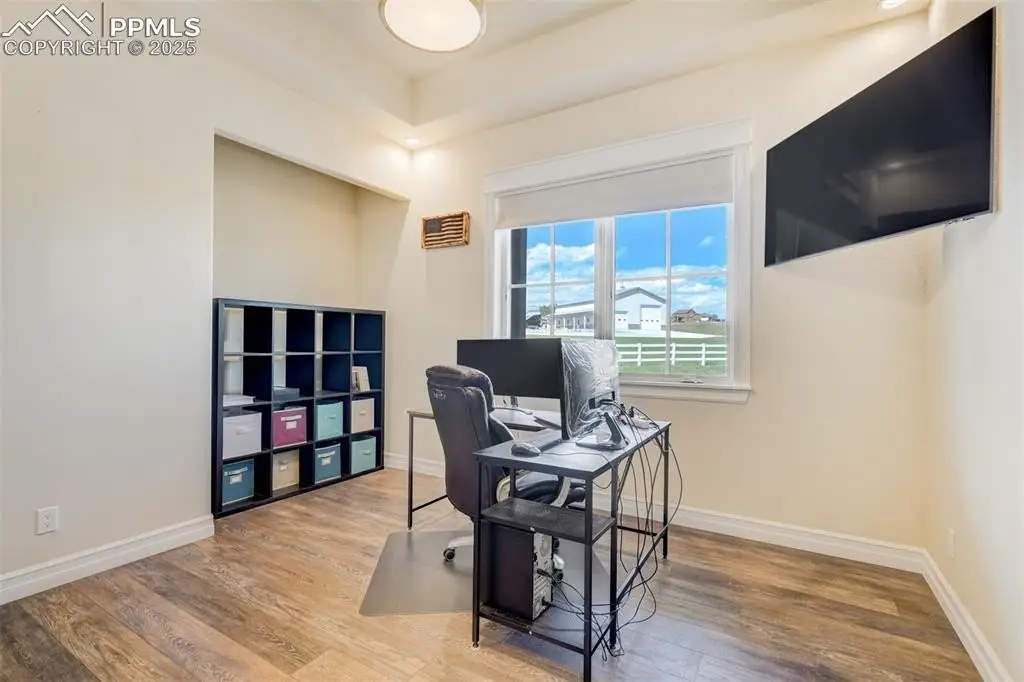 Luxury, privacy & views all collide in this custom stunner tucked in the heart of Black Forest. Sitting pretty on 2.67 acres with Front Range views so gorgeous they should come with a warning label, this home isn’t just nice—it’s next level. Oh, and did we mention the private guest apartment, full spa, and garage space for every toy you’ve ever dreamed of? You will gasp when you're greeted by soaring vaulted ceilings and floor-to-ceiling windows that flood the home with natural light. This main-level, open-concept floor plan was practically made for entertaining, life-living, and enjoying all that CO has to offer. The gourmet kitchen? Only top-of-the-line appliances, custom cabinetry, stone countertops, and an island so big it might qualify for its own zip code. The main level offers the Owner’s Suite- complete with a spa-inspired bathroom and a walk-in closet that holds all those sweaters you "can't get rid of." Completing the main floor is a junior suite, two more bedrooms, office, and a laundry room you'll appreciate. Downstairs? Prepare yourself. There’s a walk-out basement featuring a media room, kitchenette, family room, two more bedrooms & full bathroom, and jr. suite. And yes—there’s a spa/gym complete with a hot tub, sauna, steam room & shower, in case your soul needs a reset or you just like to sweat in style. But wait—there’s more. The attached guest apartment (yes, attached AND with its own garage) is the cherry on top. It has its own kitchen, fireplace, living room, laundry room, patio & all the essentials for the in-laws or that friend who "just needs a place for a few weeks." Outside, enjoy covered patios with jaw-dropping views of the Front Range, a massive detached garage/shop, and plenty of space for that RV. Enjoy the BF Farmer's Market on Saturday; walk to Edith Wolford Elementary; and be within minutes of hiking, biking, and horseback riding. This home has everything except your name on the mailbox. But we can fix that.