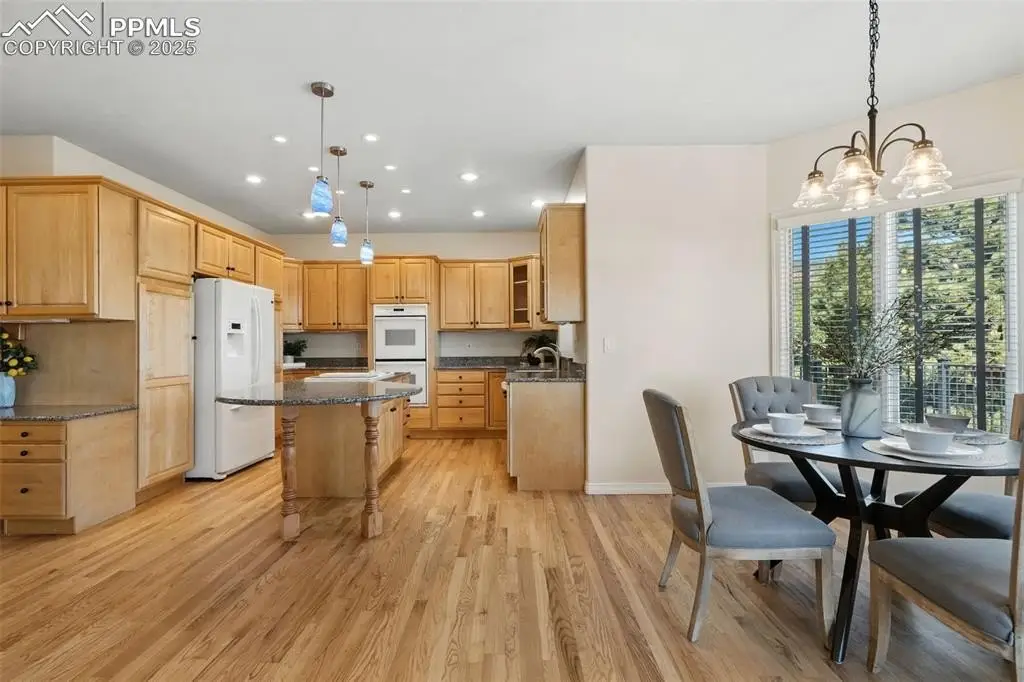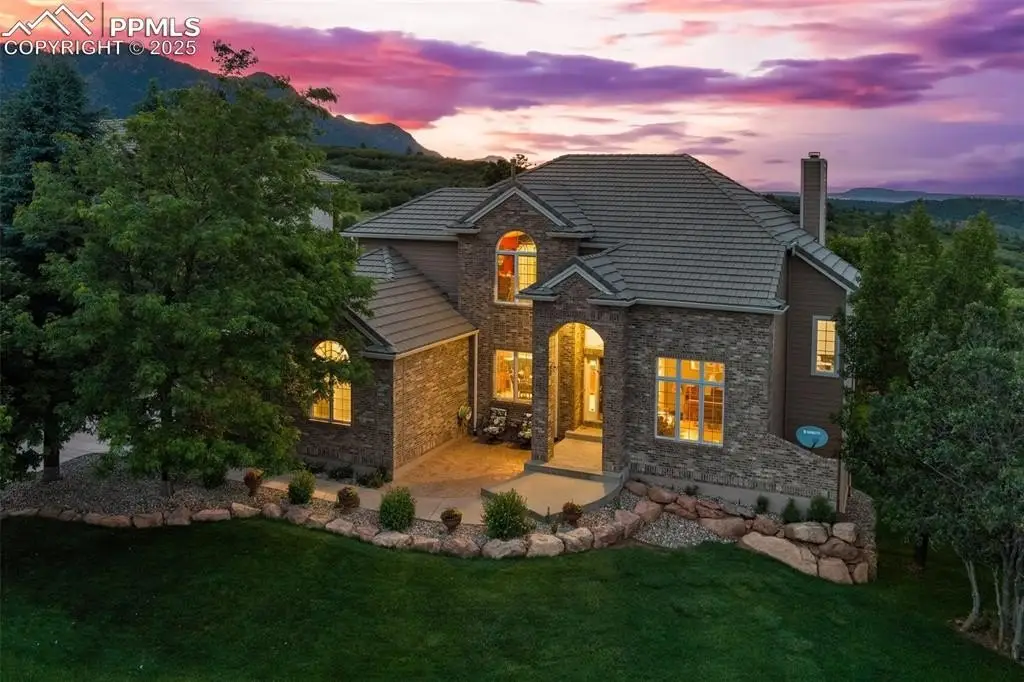 Your Dream Home Awaits! Nestled in the highly sought-after Peregrine neighborhood in NW Colorado Springs, this extraordinary 6-bedroom, 5-bath residence redefines luxury living with its sweeping mountain and city views. Spanning 4,507 square feet, the home perfectly balances elegance and functionality in one of Academy District 20’s most desirable communities. Freshly painted throughout, this home welcomes you with soaring ceilings, hardwood floors, and a dramatic staircase. The spacious dining and living rooms set the tone for gatherings, while the sun-filled family room (don’t miss the sizable hidden storage!) impresses with oversized windows, a cozy gas fireplace, and captivating views of the city, mountains and Air Force Academy. The kitchen is a true entertainer’s delight, offering stone countertops, sleek cabinetry, and an island designed for conversation and function. The floor plan shines with thoughtful touches, including a private office just off the staircase and expansive windows framing views in every direction. Upstairs, the primary suite is a retreat with breathtaking panoramas, a spa-like 5-piece en suite, and walk-in closet. A junior primary with updated bath, two additional bedrooms with a shared Jack & Jill bath, plus tasteful updates throughout elevate the home. The walk-out basement offers two more bedrooms, a full bath, and a large recreation room ready for movie nights, workouts, or hosting guests. Outside, a newer 40x20 composite deck provides the perfect vantage point for enjoying both mountain views and city lights. The lot is a rare find, backing to the AFA for maximum privacy while offering usable yard space for play, gardening, or relaxation. Additional features include updated light fixtures, central AC, security system, and oversized 3-car garage with storage. With neighborhood parks, ASD20 schools, and a prime Peregrine location, this home is more than a place to live—it’s a lifestyle. Don’t miss the chance to make it yours!