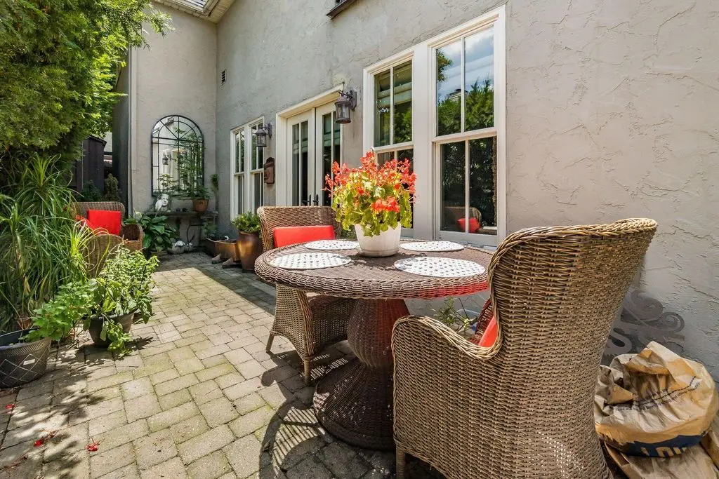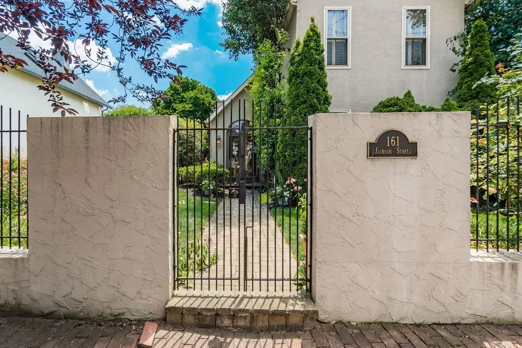 This beautifully designed home is tucked away in the heart of German Village. The gated front offers unique privacy with a large courtyard and two patios surrounded by gardens. The open floor plan with a first floor primary suite is sophisticated and elegant. The gourmet kitchen has high end appliances, granite counter tops and a walk in pantry. The kitchen opens to a beautiful living and dining space that features a stone fire place, large windows and french doors leading to the private patios perfect for letting your pets. The primary suite has an additional fireplace, custom built walk in closet, and large bathroom. The second floor features a media room accessible by both front and back staircases. The additional bedrooms and bath are perfect for guests with room for a home office. The third floor is ready for your hobbies or additional storage. A new roof, AC and fireplace was installed in 2025