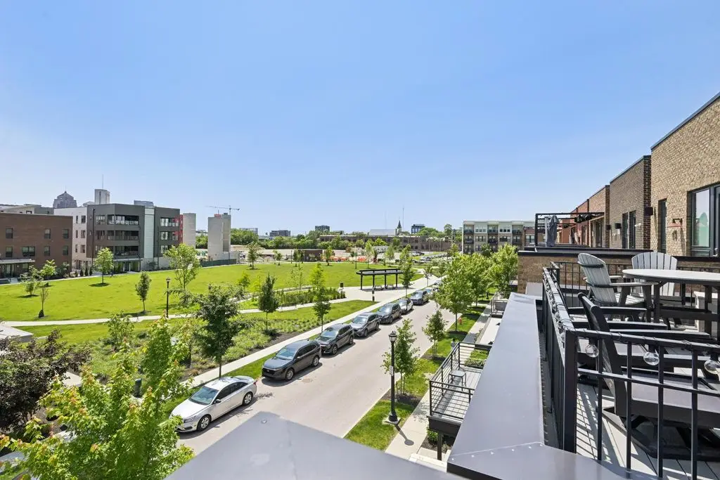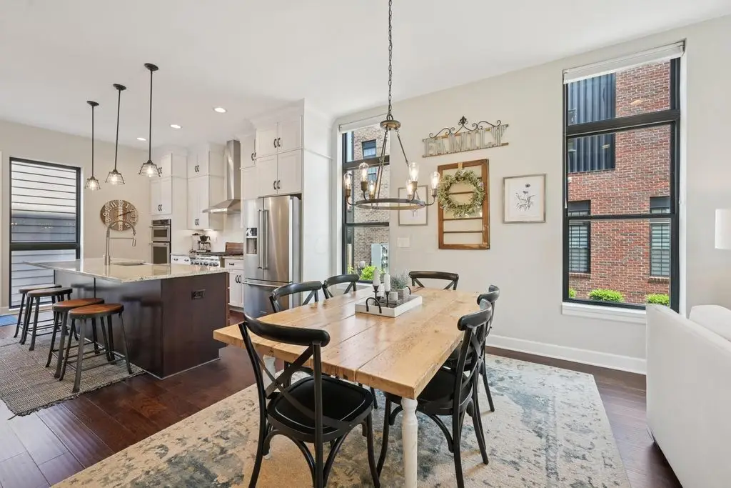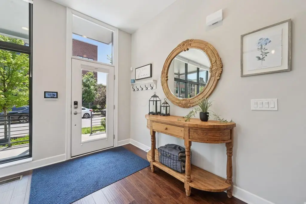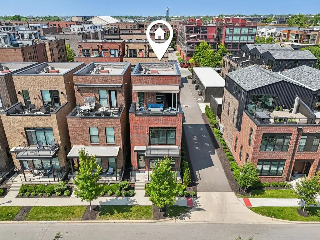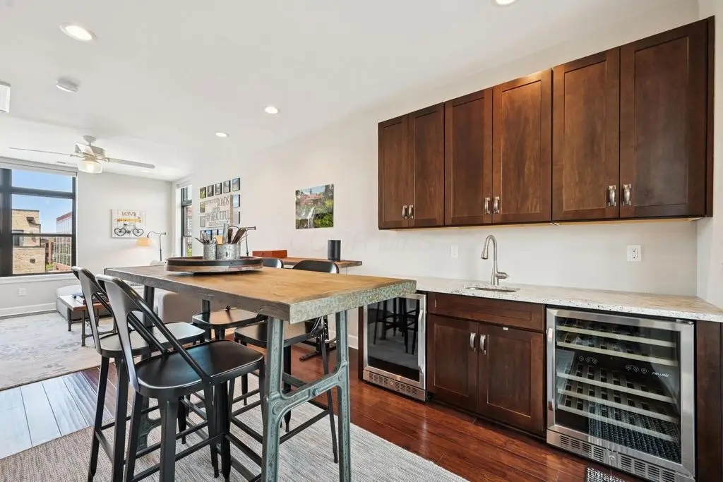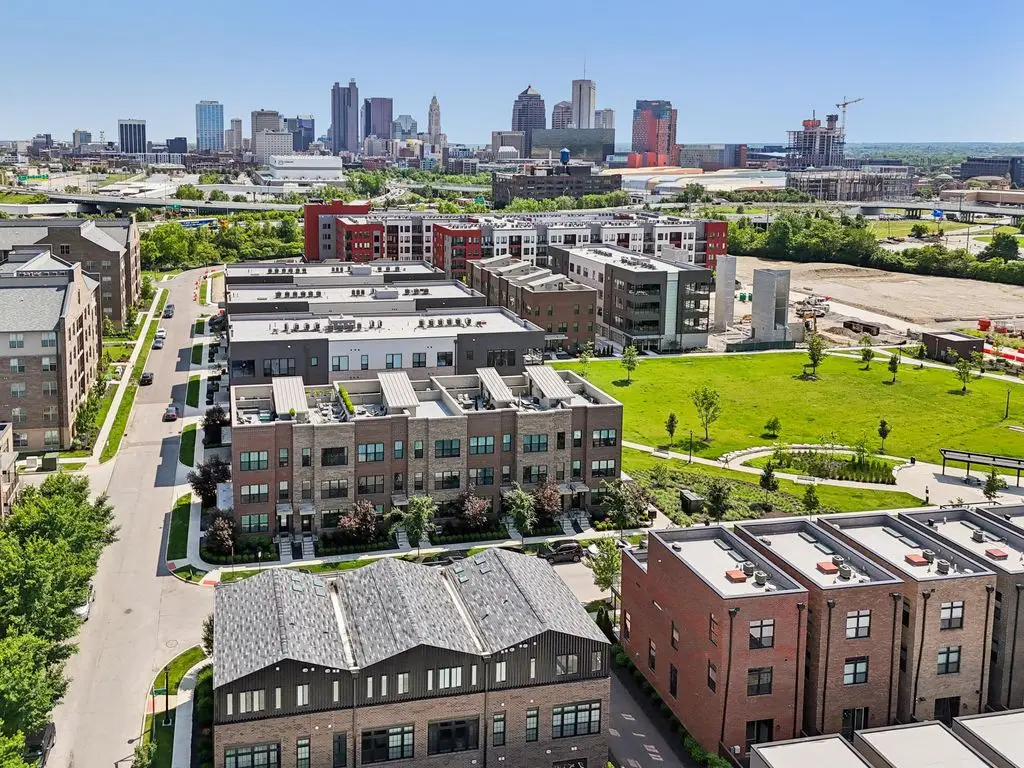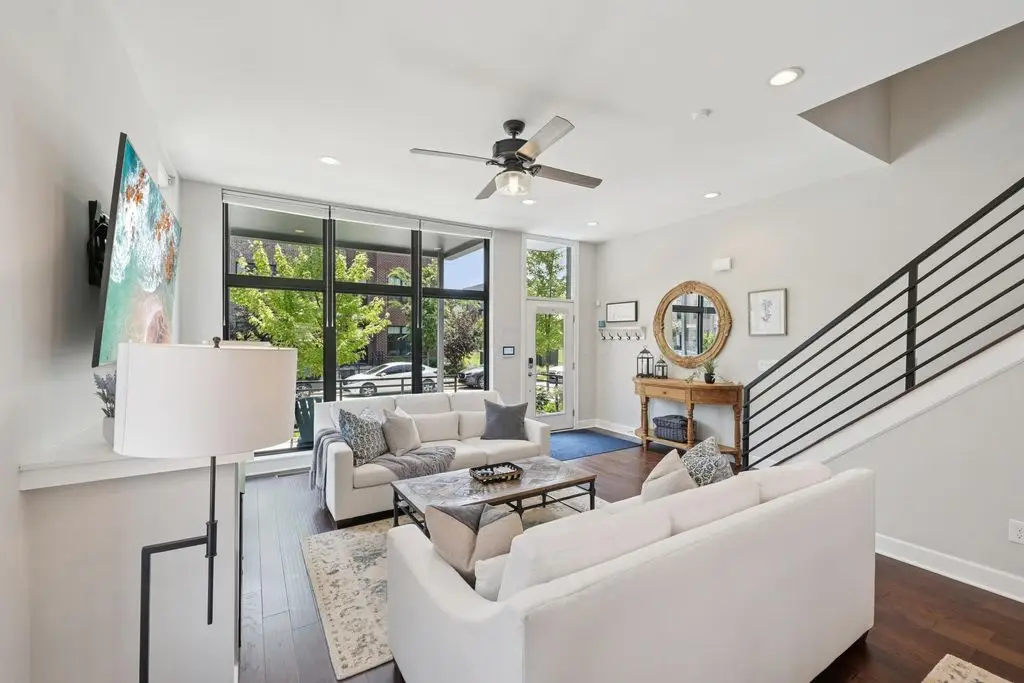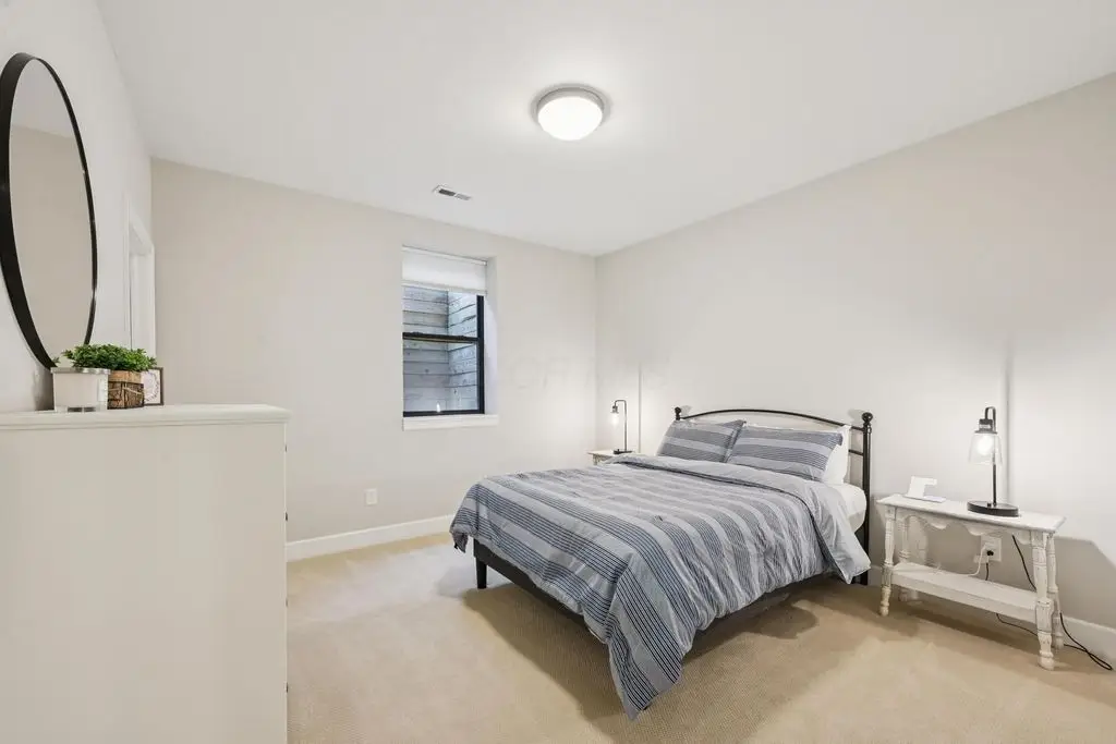 OPEN HOUSE! 9/20,1-3PM. This rare BRIGHT, end unit-with NO SHARED WALLS, has light shining brightly with wonderful views! FOUR LEVELS are finished spaces for you to appreciate including THREE w/ OUTSIDE SEATING. The FIRST FLOOR includes an open concept living room with a fireplace, chef's kitchen, granite countertops, modern stainless-steel appliances, and half bath. The SECOND FLOOR offers a private balcony with relaxing views. from the primary suite, an en suite bathroom with a dual vanity quartz countertop, spa-like shower, two huge walk-in closets. The laundry room, and a second bedroom or office down the hallway. The THIRD ROOFTOP FLOOR boasts a flex space for a bedroom, relaxing or entertaining, a full bathroom, a wet bar, and an outside lounge area-with a remote retractable awning and a view of the city skyline.The LOWER LEVEL provides yet another large room to entertain with, a bedroom, and a full bathroom. Everything you'd want in a community is available for you: Clubhouse, pools, state-of-the-art gym, coffee house and more... Enjoy LUXURY URBAN LIVING here- close to all that Columbus has to offer. *TAX ABATEMENT