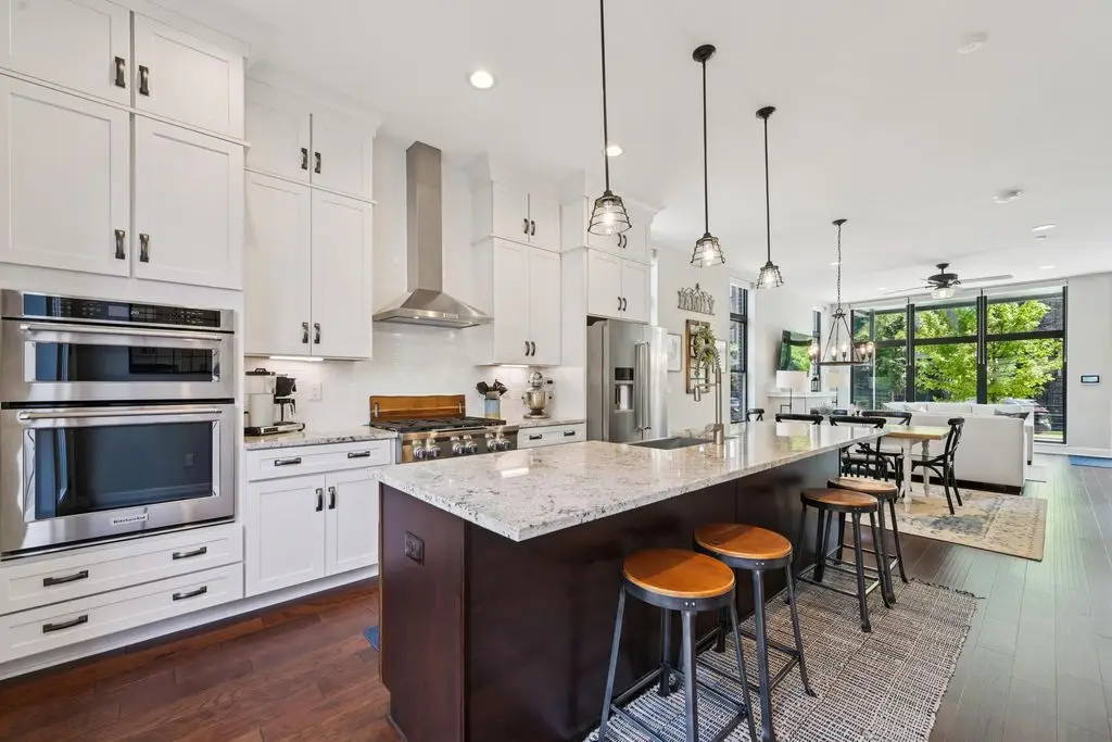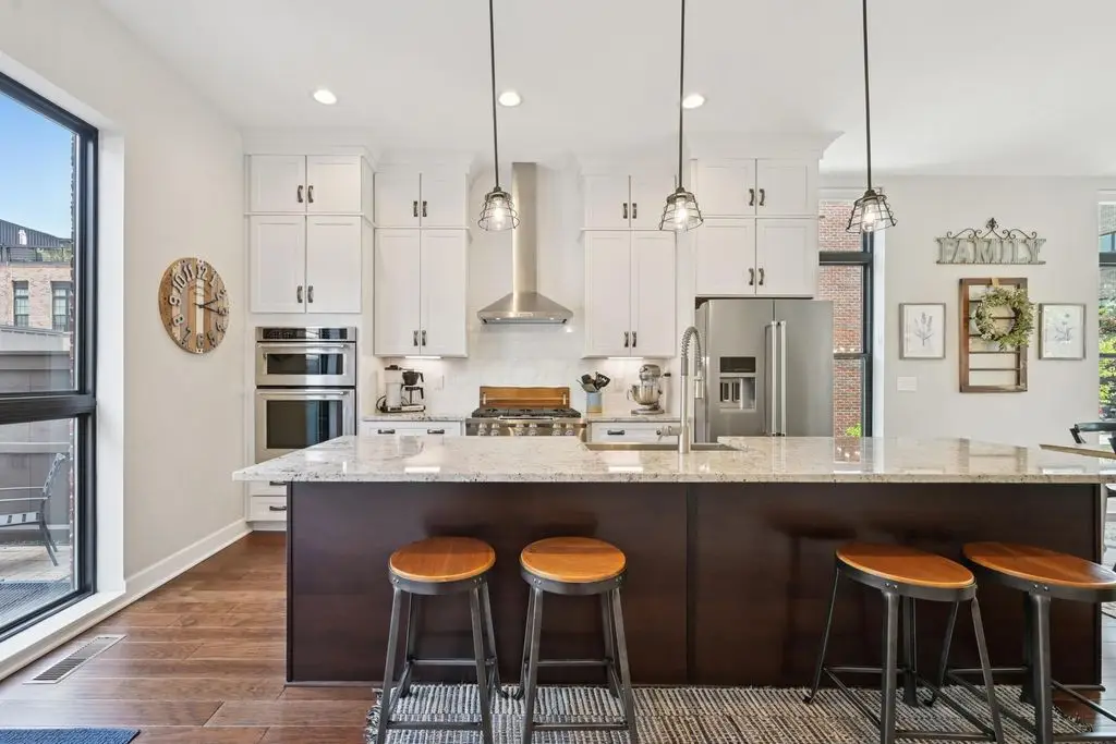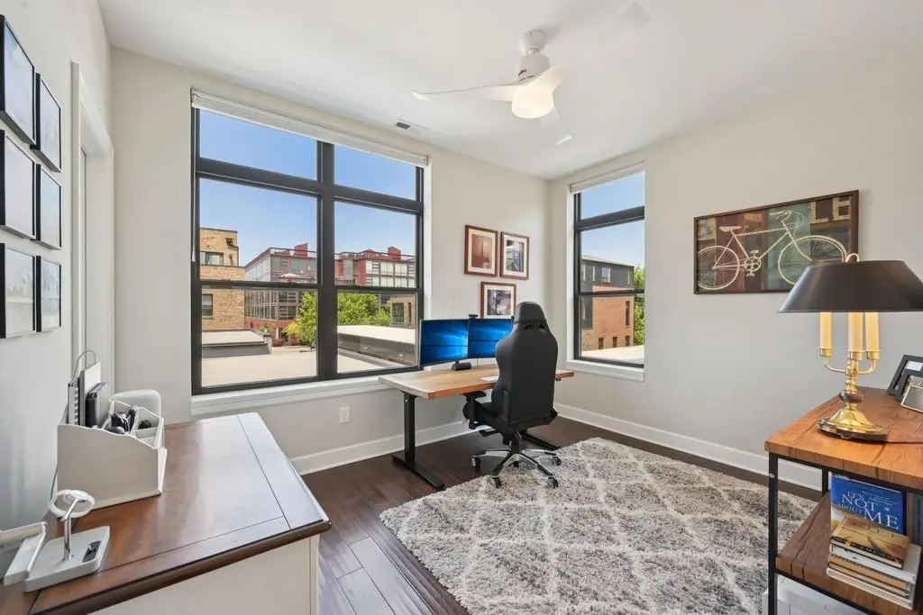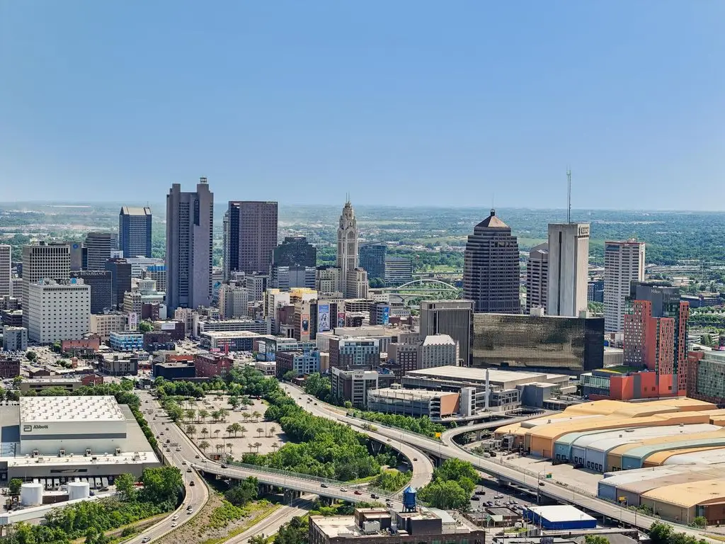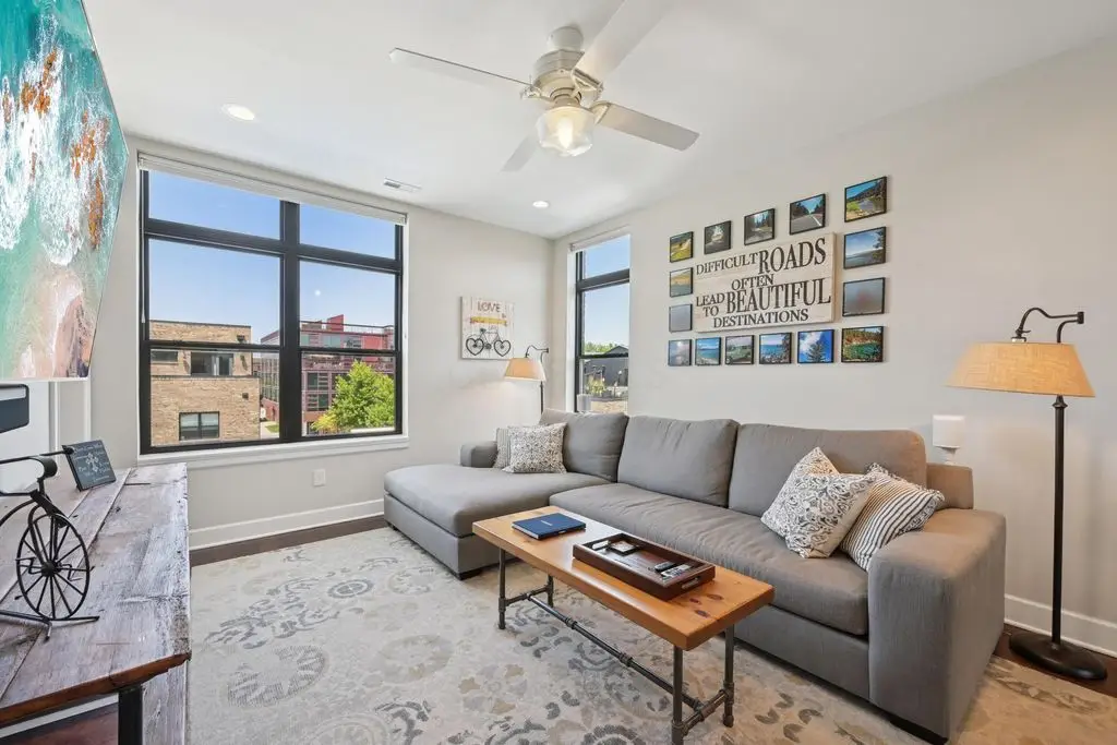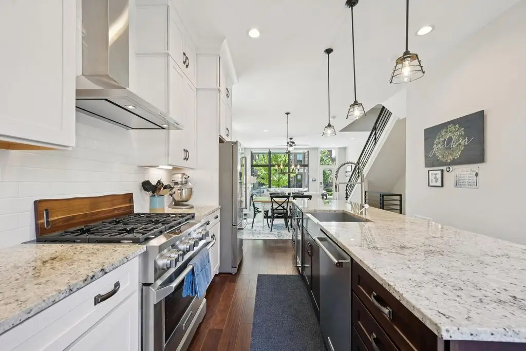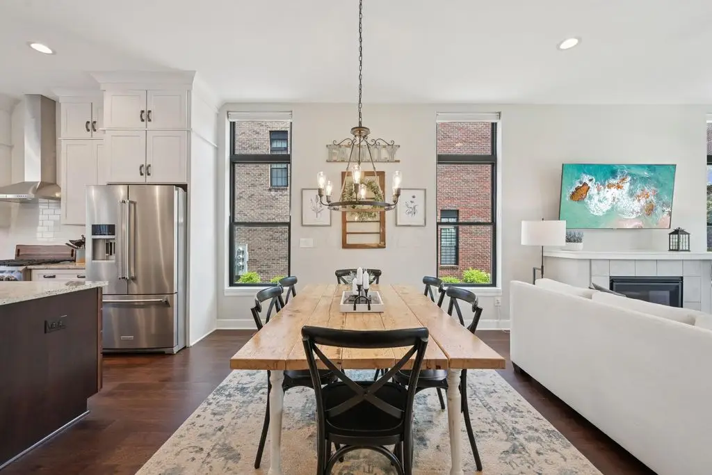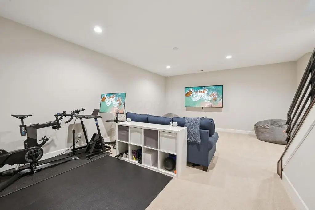 OPEN HOUSE! 9/20,1-3PM. This rare BRIGHT, end unit-with NO SHARED WALLS, has light shining brightly with wonderful views! FOUR LEVELS are finished spaces for you to appreciate including THREE w/ OUTSIDE SEATING. The FIRST FLOOR includes an open concept living room with a fireplace, chef's kitchen, granite countertops, modern stainless-steel appliances, and half bath. The SECOND FLOOR offers a private balcony with relaxing views. from the primary suite, an en suite bathroom with a dual vanity quartz countertop, spa-like shower, two huge walk-in closets. The laundry room, and a second bedroom or office down the hallway. The THIRD ROOFTOP FLOOR boasts a flex space for a bedroom, relaxing or entertaining, a full bathroom, a wet bar, and an outside lounge area-with a remote retractable awning and a view of the city skyline.The LOWER LEVEL provides yet another large room to entertain with, a bedroom, and a full bathroom. Everything you'd want in a community is available for you: Clubhouse, pools, state-of-the-art gym, coffee house and more... Enjoy LUXURY URBAN LIVING here- close to all that Columbus has to offer. *TAX ABATEMENT