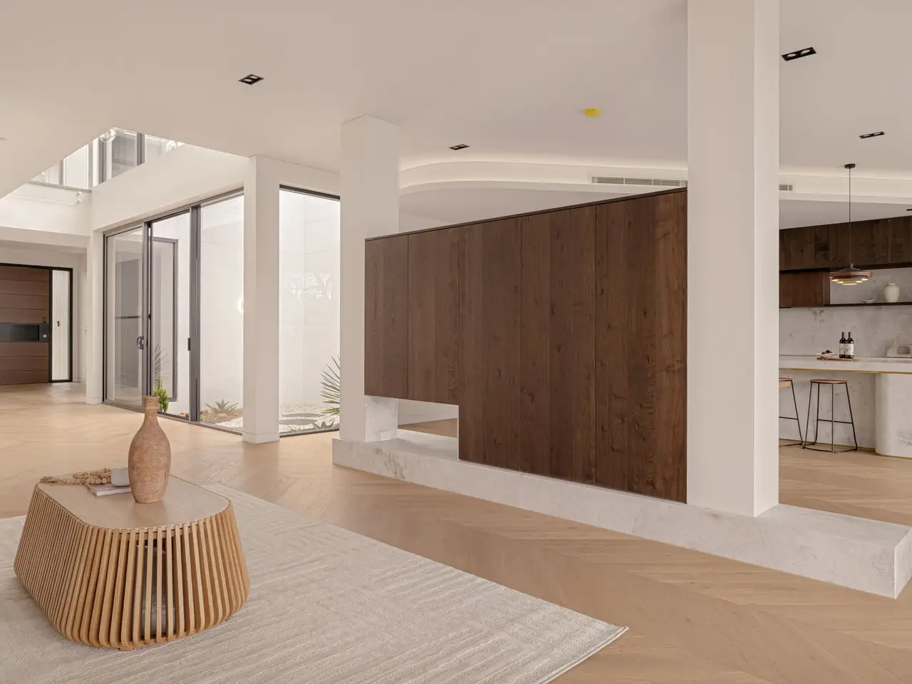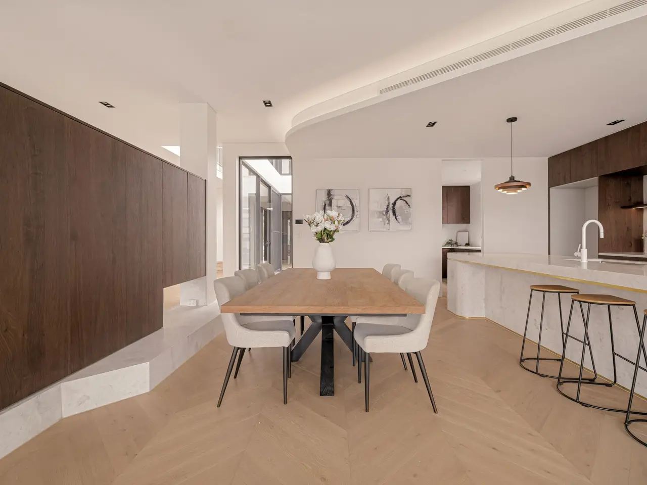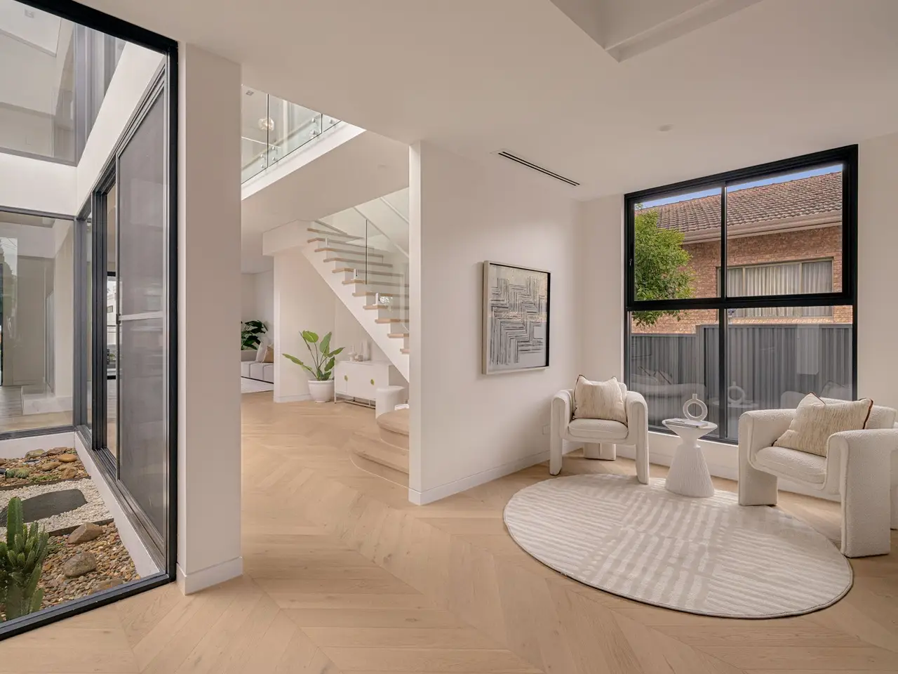 A statement of undeniable luxury, this remarkable home sets a new standard of sophistication and functionality. Meticulously crafted with top-tier finishes, it offers an impressive fusion of elegance and practicality that surpasses all expectations of family living. Its sleek interiors are awash with natural light and promote boundless space for entertaining, living and socializing on a grand or intimate scale. Set within 750 meters of Majors Bay dining and boutiques, the property is also mere footsteps from Concord Park. - Brand new luxury residence on a large 627square meters land parcel in convenient locale - Free-flowing design unveils a bright lounge/dining area with in-built cabinetry - Seamless indoor/outdoor flow to a covered alfresco terrace with a built-in barbecue - Elevated entertainer's deck includes a sparkling in-ground concrete pool - Unique secluded and private landscaped central garden/open atrium - Stone kitchen features stainless steel Miele gas appliances and walk-in pantry - Five generous bedrooms each with built-ins, two of the bedrooms are masters - Three bedrooms include ensuite bathrooms, bed one enjoys a private balcony - Custom-appointed main bathroom with floor-to-ceiling tiles and a rain shower - Upstairs study, bar area, ducted air-conditioning, down/sky lighting throughout - Double automatic garage with internal access, linen and under-stairs storage - Short walk to public transport, set within 1.6km from schools and Bayview Park