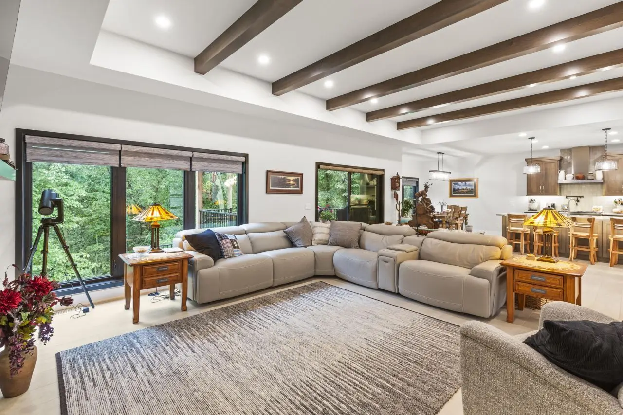 Step into a home where every detail has been carefully considered and no finish overlooked. This custom built 4-bedroom, 3.5-bath blends thoughtful design with everyday comfort. The exterior sets the tone with clean lines, stone accents, and 3 car garage. Inside the open concept showcases ceiling beams, a stone fireplace, and windows framing the wooded backdrop. The kitchen and living areas combine high-end finishes with function, ideal for living and entertaining. The primary suite is a retreat with a spa inspired bath, dual vanities, soaking tub, and walk-in closet. Downstairs a family room with wet bar is perfect for gatherings, and outside a hot tub awaits for the ultimate in relaxation. Every element has been thoughtfully crafted, creating a home that is both elegant and inviting.