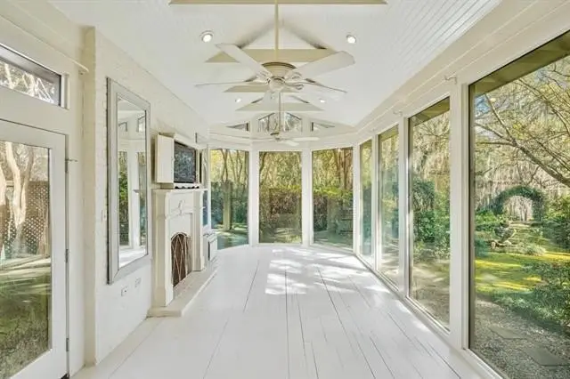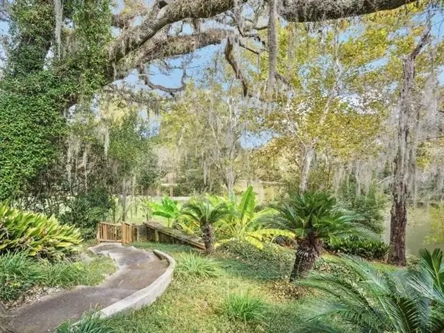 Introducing 120 Park Drive, a very rare offering on the picturesque banks of the Bogue Falaya River in the heart of Covington's Historic District. This charming Acadian offers an unparalleled blend of timeless architecture and serene waterfront living in an exceptional location. Fronted by a courtyard that is a private oasis complete with a tranquil fountain, and surrounded by old-growth plantings, one feels totally tucked away yet in the midst of the activity. The home features a broad, shuttered front porch typical of Acadian architecture, a place to sit and take in the amazing courtyard views with utmost privacy. There are numerous living spaces, giving the option for everyone to either spread out or to gather. Flanking the foyer is a spacious den or tv room doubling as an office. A kitchen with subzero and wolf appliances is open to a breakfast or dining room and a keeping room with soaring 15' vaulted ceilings and a fireplace. A bright sunroom with walls of glass overlooking the spectacular views is centered around a second fireplace and features 12' ceilings. The primary suite is downstairs for ease and convenience. Upstairs are two bedrooms with a jack and jill bath, and bonus rooms for either den, office, gym or storage. The star of the show is the incredible back yard with mature landscaping and old oaks which terraces down to the River, The lush grounds, mature shade trees and direct River access create a private sanctuary just moments to the cultural and culinary offerings of Covington's historic district. Of interest are a 5-year old roof, HVACs that are 1 year and 5 years old, and new windows. A whole home generator eases the stress of storm season, and a long driveway with attached covered carport keeps your vehicle out of the elements. Steps to Bogue Falaya Park, shops, restaurants, the farmer's market, and all the festivities of charming Old Covington. This rare opportunity combines heritage, elegance and an exceptional, distinguished location in a blank canvas awaiting your special touch.