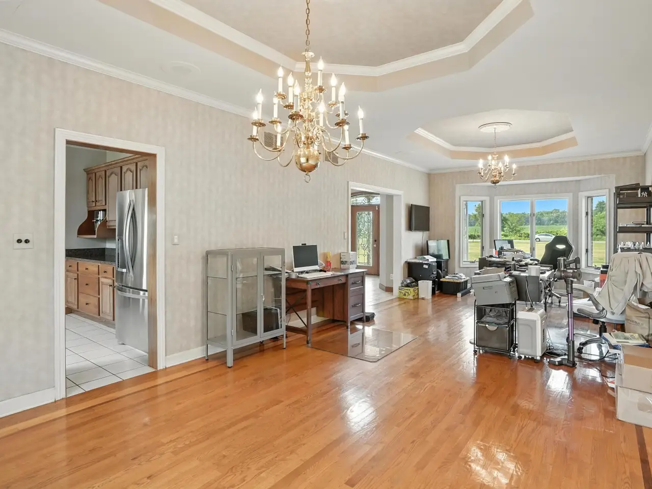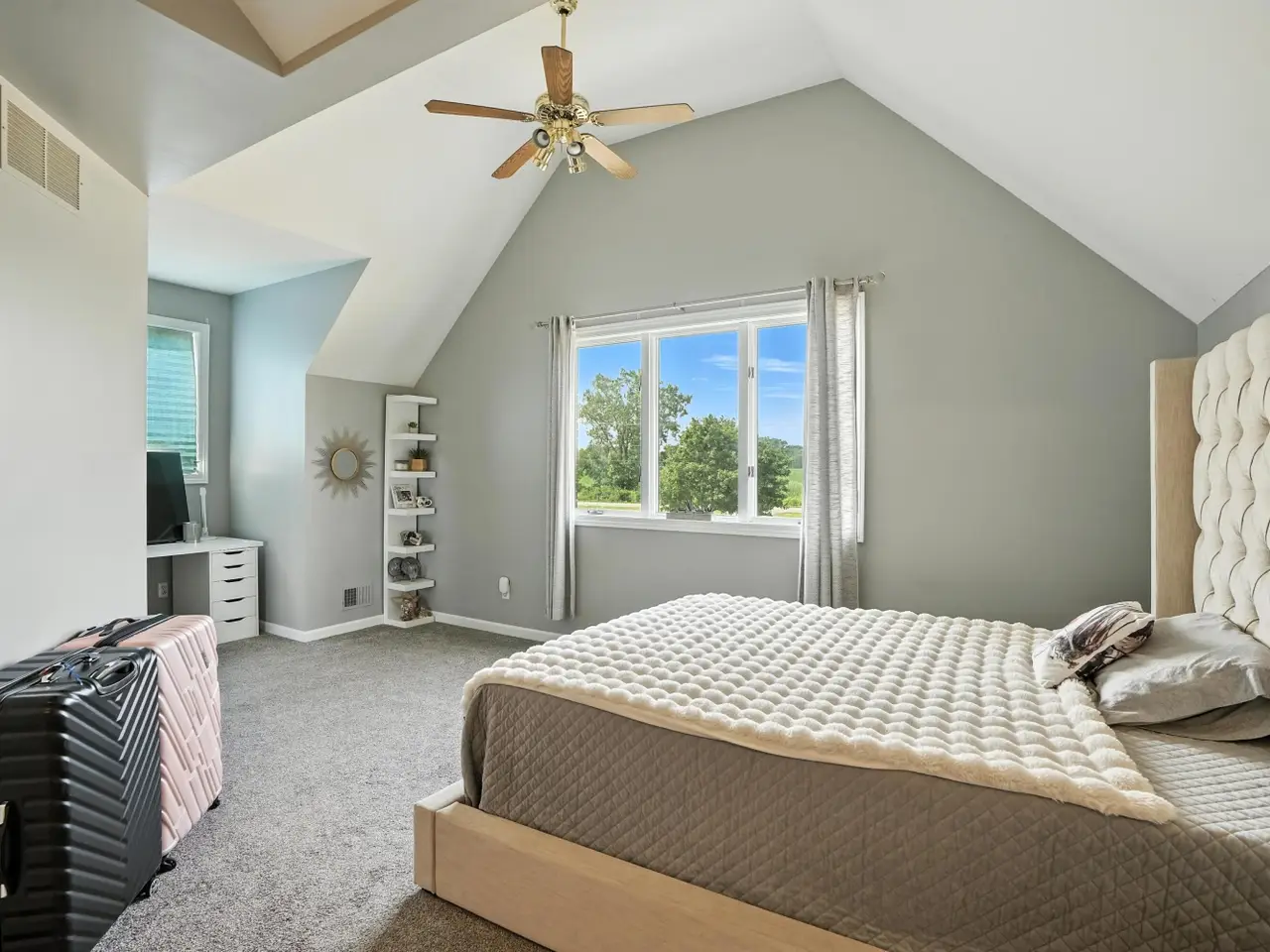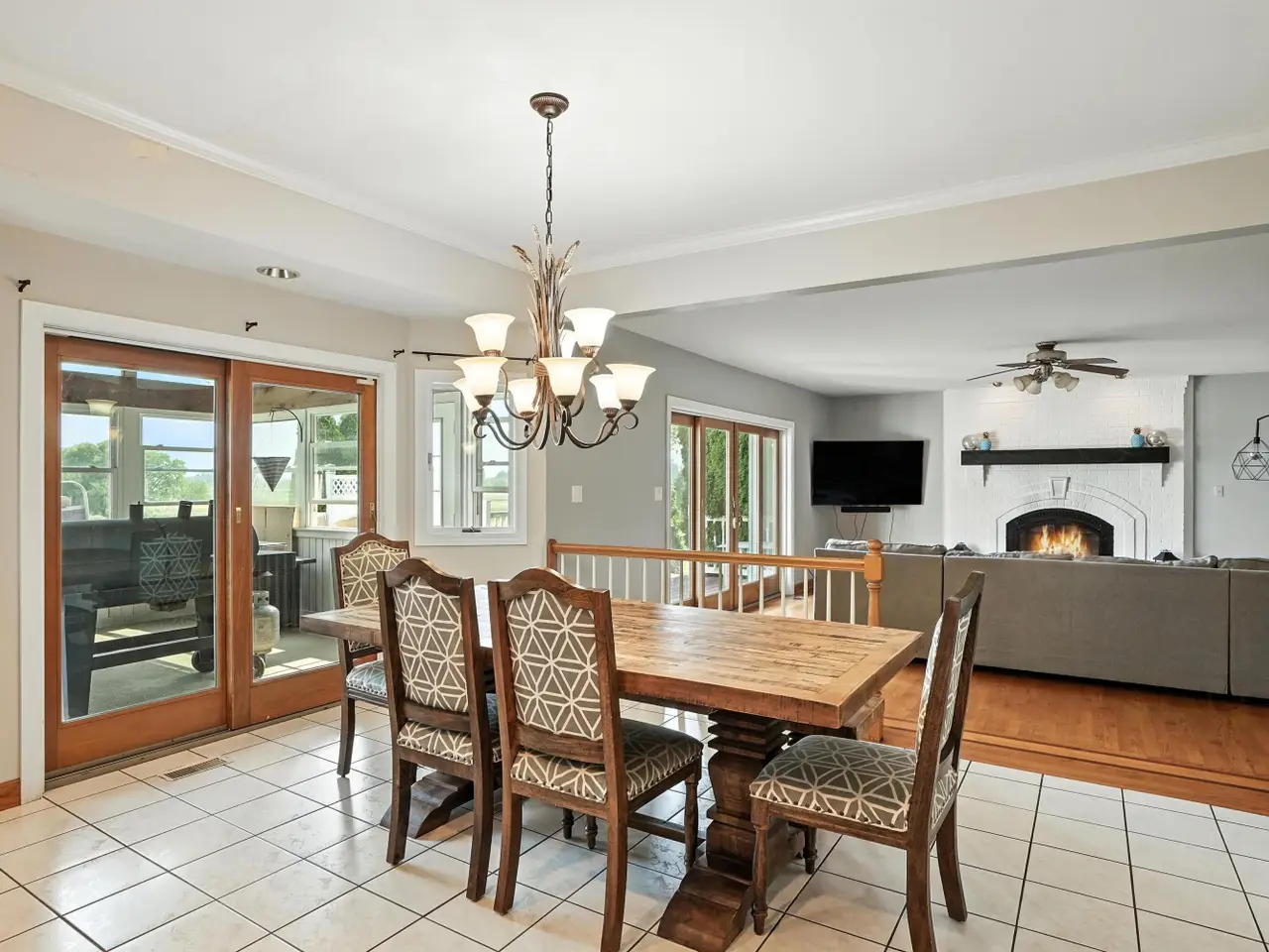 Welcome to this 7300 sq ft custom home, perfectly set on 7.1 lush acres in desirable St. John Township. Designed with space and comfort in mind, this one-of-a-kind property offers a grand formal living and dining room, a spacious kitchen with granite counters and stainless steel appliances, and a sun-drenched four-season room with southern exposure. The inviting living room features a wood-burning fireplace, creating a cozy gathering place at the heart of the home. Beautiful oak staircases add timeless character, and a stairway from the finished basement to the garage adds convenience and accessibility. Upstairs expansive primary suite features private balcony, fireplace, walk-in closet and ensuite bath. With 6 additional bdrms, a loft with guest suite, there's room whether you are hosting, working from home, or simply enjoying the space. Additional highlights include 3-car sideload garage, low property taxes, and a peaceful location with quick access to Illinois. This is a rare opportunity to own a stately home on acreage in one of the area's most sought-after communities.
