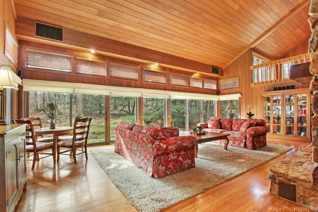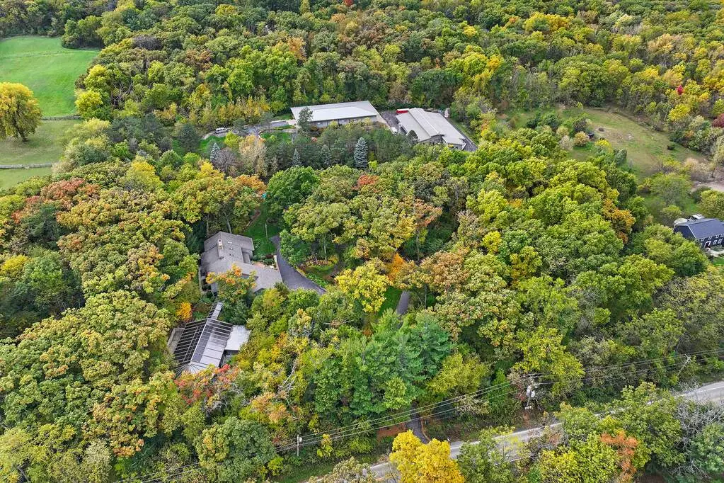 This auto enthusiast's estate is meticulously designed to cater to every automotive passion! Nestled on an 8.3-acre wooded & fully-fenced property, the 7,800 sqft estate home features incredible views from every window, gleaming hardwood flooring, fresh paint & new carpeting, two story stone fireplace, bright white kitchen featuring high-end appliances, fully remodeled and updated bathrooms, three seasons porch, and 1st floor primary bedroom suite of rooms which includes a private office (can be used as a bedroom). Accessible via enclosed & heated, all window-walkway, is the attached 3,000 sqft pool house, boasting saltwater pool, hot tub, kitchenette/bar and full bath/locker room - all enclosed under a retractable roof for summer and a dehumidification system for winter. From the moment you pass through the front gate, you're greeted by mature trees and custom exterior lighting and a recirculating stream. Sculptured driveways seamlessly connecting the home, two auto-wonderland outbuildings and the pond, which is aerated and stocked with bass and blue gill. Building One, constructed in 2000, spans 7,101 sqft and combines a workshop, office which can be used as a bedroom, and showroom. It's equipped with clerestory windows for natural light, covered exterior storage, and is fully heated, air-conditioned, and humidity-controlled. The attached 2,000 sqft shop boasts radiant heat flooring and ample southern exposure. The office space features a two-story ceiling, full bathroom and kitchenette. Building Two, added in 2005, encompasses 15,000 sqft built into the hillside with two levels of showrooms. Both levels are heated, air-conditioned, and humidity-controlled. The first level features a powder room, storage, and an RV garage with gorgeous custom 18' x 18' garage door. The second level houses more showroom space, offices, a boardroom (can be used as a bedroom), a full bathroom, kitchen and laundry. Epoxy floors and showroom lighting grace both levels. Backup generators for the home and out-buildings ensure uninterrupted power. The entire property, boasts meticulous attention to detail. This auto enthusiast's estate is a dream come true for those passionate about cars and looking for a perfect space to store, restore, and enjoy their collections. Bedrooms total = Nine (Seven in house, one in each outbuilding) Bathrooms Total = 6.2 (4.1 in house, 2.1 in outbuildings) Kitchens = three (one in house, one in each outbuilding)