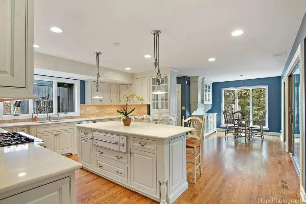 Bright white kitchen with high-end appliances