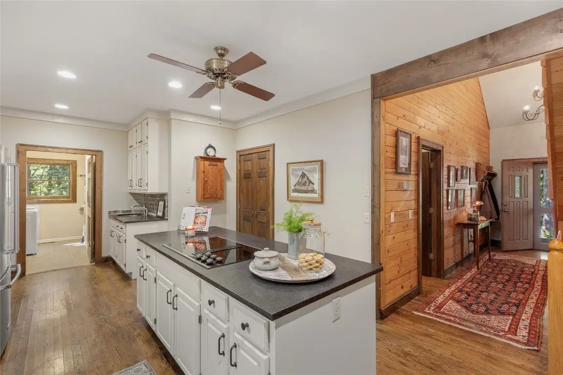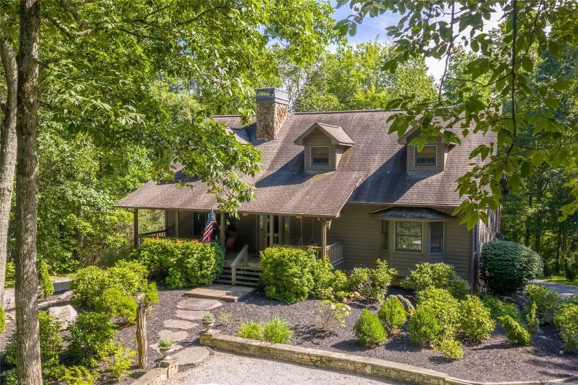 Pass through the gates and wind up to the top of Norton Overlook to discover an original homestead, set back from the road within a private sanctuary. From the front porch, the sights and sounds of nature create a serene backdrop for quiet moments to unwind. Evenings may be spent gathered around the outdoor firepit or inside beside the cozy wood-burning stove set in a stunning stone fireplace. The spacious main level is designed for both comfort and functionality, offering a spacious kitchen, den, dining room, great room, office, laundry area, and a generous primary bedroom, all thoughtfully arranged with excellent flow. Upstairs are two oversized bedrooms, while the lower level expands the living space with an additional bedroom, full bathroom, potential for a kitchenette, and two expansive bonus rooms, perfect for flexible use or recreation areas. A large detached garage with a workshop provides space for artistic pursuits, woodworking, or other hobbies, while ample storage throughout the home ensures everyday practicality. Winter reveals panoramic mountain views, with the potential for further enhancement through strategic tree trimming. Conveniently located near Cashiers, Highlands, and Lake Glenville, this residence combines privacy, comfort, and the best of mountain living. With its versatile spaces and timeless mountain character, this residence offers both a peaceful retreat and a setting for lasting memories.