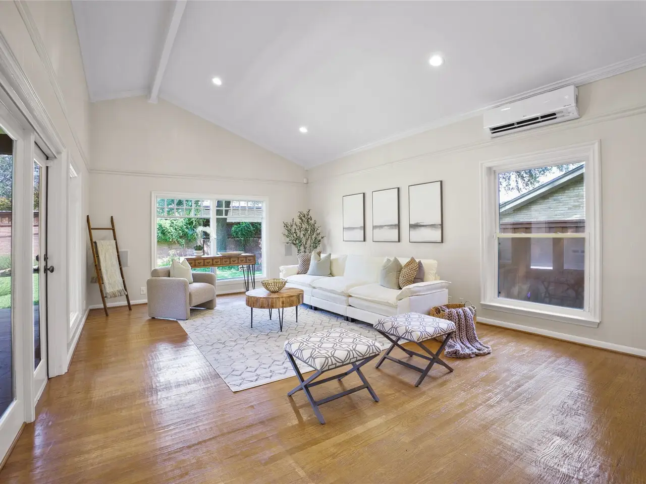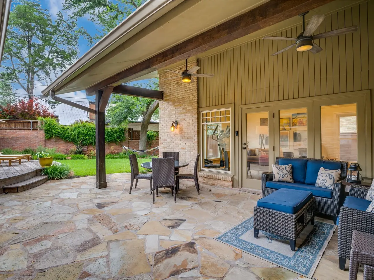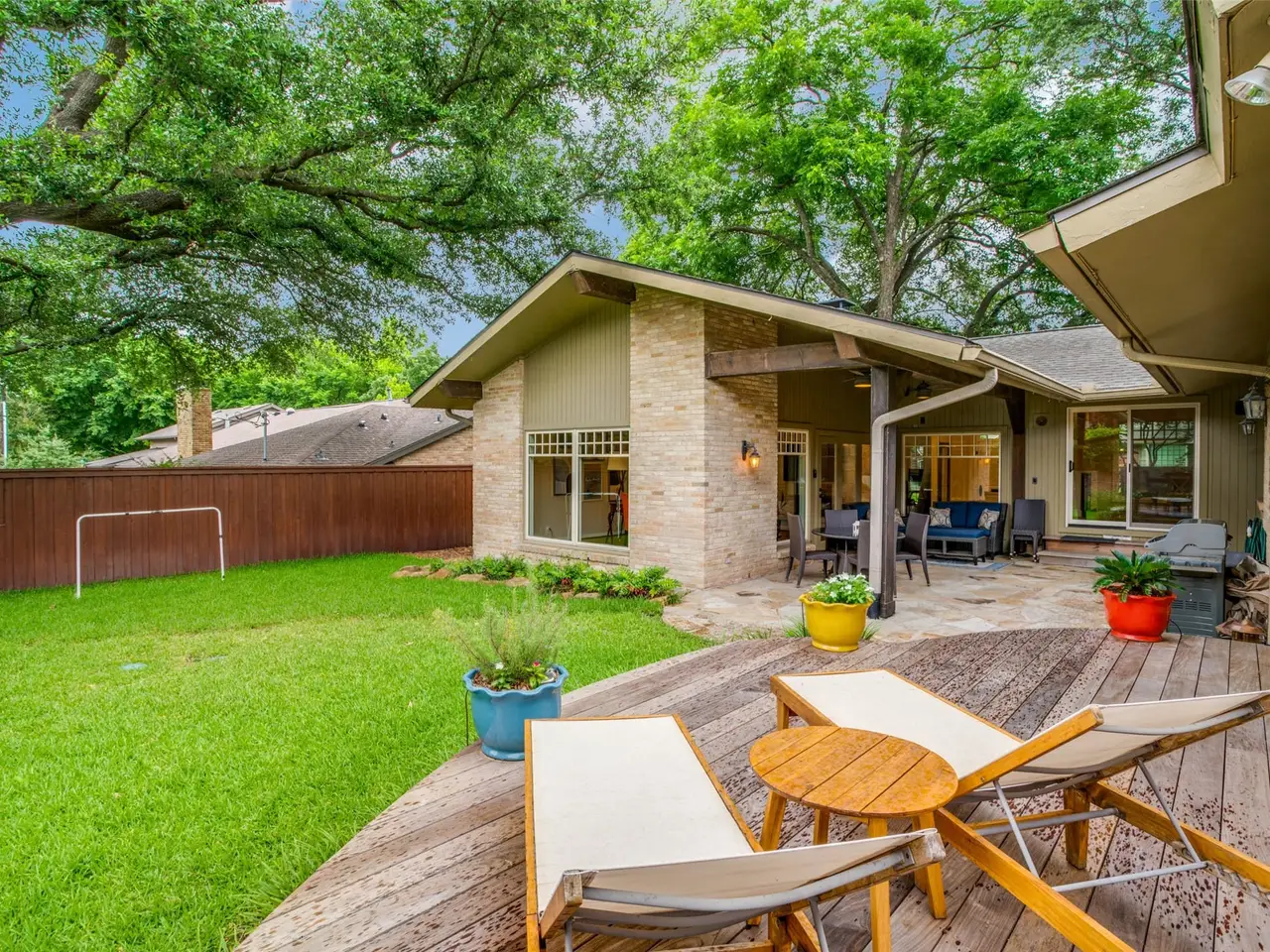 LIGHT, LOCATION, LANDSCAPING!! FABULOUS 99-FOOT FRONTAGE! Move-in-ready 4-bedroom contemporary style home easy walk to Lakewood Elementary, Lakehill Preparatory, White Rock Lake and Lakewood shopping center. Vaulted ceilings, tons of natural light, double-sided gas fireplace, and so much more. Main living and dining areas open onto covered rear patio and landscaped backyard. Front living-office is flooded with light through floor-to-ceiling windows. Updated kitchen features quartz counters, high-end stainless appliances, farm sink, built-in wine cooler, breakfast bar, and walk-in pantry. Primary suite offers dual walk-in closets, Carrara marble vanity with dual sinks, jetted soaking tub and separate shower. Step out of the bedroom onto the deck made of Brazilian walnut hardwood (Ipe wood). Secondary bedrooms are nicely sized with Jack & Jill bath. Large fourth bedroom with updated en suite bath is perfect for guests or as office or playroom. Additional features include sprinkler system, mosquito misters, alarm system, Aquasana whole-home water filtration system, oversized 2-car garage, and a backyard oasis with hot tub, sauna, and bocce court. Improvements include replacement of main HVAC unit with energy-efficient (SEER-19) Daikin HVAC system with Wi-Fi control and upgrade of attic insulation to R32 standard resulting in greatly reduced electricity bills. Gated driveway leads to expanded parking area that doubles as basketball court. This well-maintained, comfortable and functional home is situated on an expansive 99-foot wide lot in the heart of Lakewood.