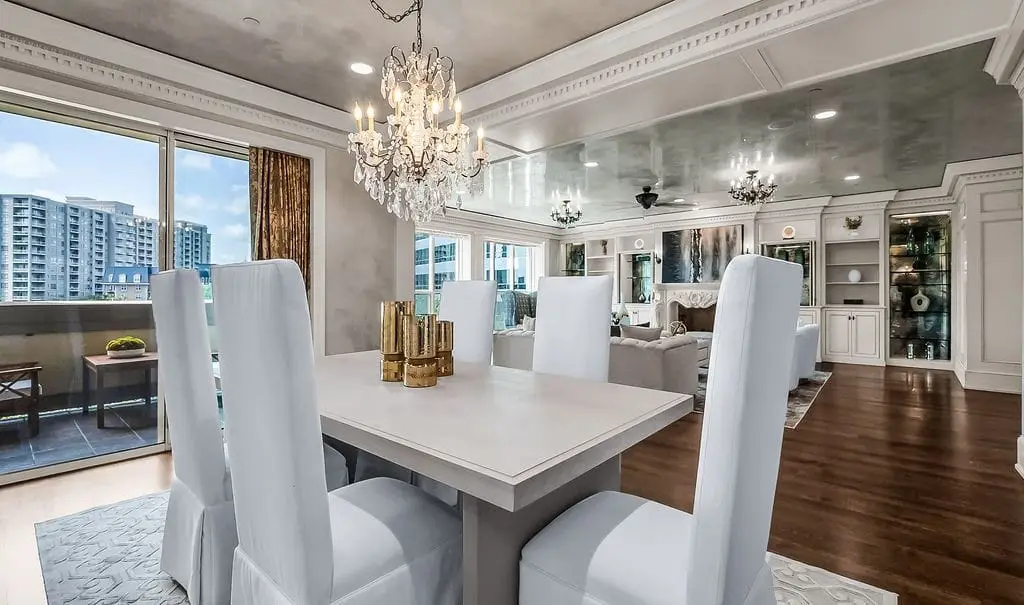 Experience Manhattan-style in this custom residence in The Mayfair. Nestled in the heart of Turtle Creekand known for luxury living offering quick access to the Katy Trail, entertainment and dining in the Uptown District, Downtown and the vibrant Dallas Arts District. With 3925 sq ft of living space on one floor and designed with views that hug Turtle Creek Park, this sophisticated home offers Grand Living and Dining Areas, an elegant powder room, a Chef-ready kitchen, climate-controlled wine cellar, Den (or 3rd bedroom), Office, Guest Suite and a primary wing fit for royalty! Finishes include elegant Venetian plaster in formal areas, custom cabinetry throughout, window coverings, magnificent chandeliers, rich hardwoods, a laundry center with separate service entry and a Control IV System to help manage the property while away. The home conveys 4 garage parking spaces, and 2 storage units conveniently located in the garage area. The Mayfair offers its residents amenities including 24-hour Valet and Concierge, fitness center with coffee area, sparkling pool, outdoor cooking area, conference room, billiard room and the Sky Club for entertaining with spectacular views of Downtown.