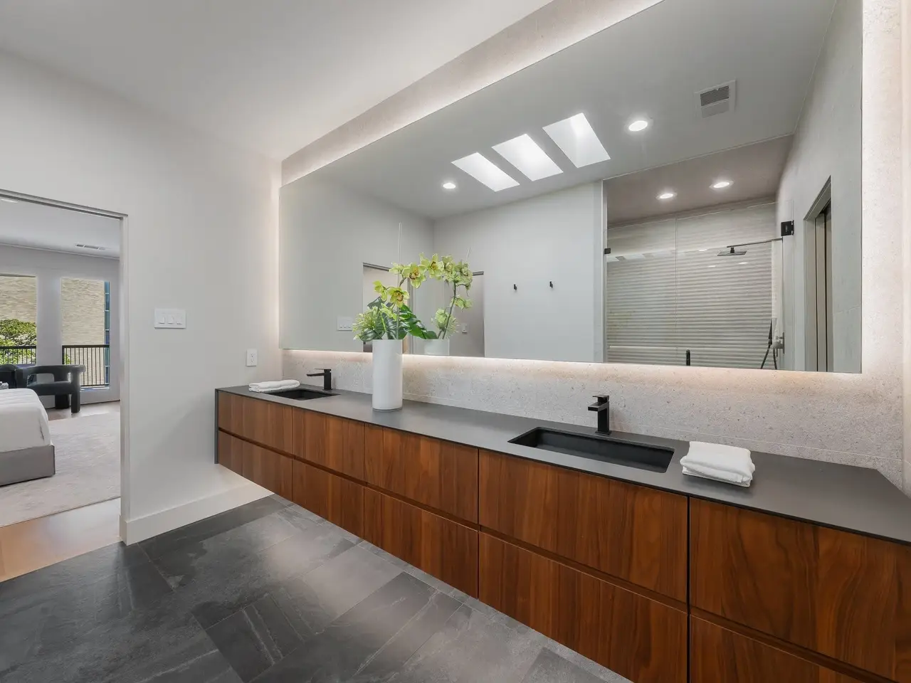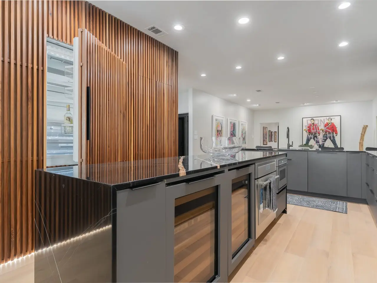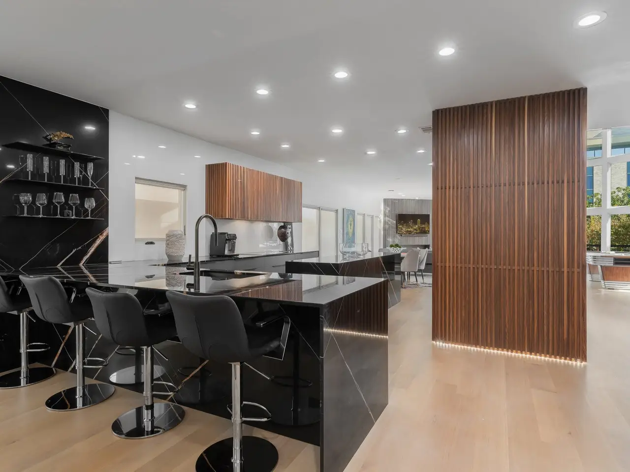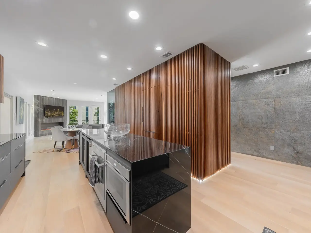 Discover a residence where sophisticated style meets dramatic architecture. This spectacularly updated home offers a truly unparalleled living experience, meticulously transformed with the finest modern finishes for 2025. As you enter, you are immediately drawn to the awe-inspiring two-story windows that flood the open-concept living space with natural light and create a stunning sense of grandeur. A spacious living & family room is anchored by a dramatic fireplace with custom marble surround. The homes heart is a chefs kitchen, a vision of contemporary elegance featuring a breathtaking marble waterfall island, glass wine closet and a full suite of top-of-the-line stainless steel appliances. Adjacent is an intimate, art-filled dining room for up to a dozen family and friends. Brand-new white oak hardwood flooring flows seamlessly throughout, unifying the space with warmth and luxury. A spacious, main-level office, tucked away for privacy, provides the perfect environment for productivity. The homes unique connection to the outdoors is showcased by not one, but two private terraces, offering elevated retreats for morning coffee or evening entertaining against a beautiful backdrop. The thoughtful split-bedroom floor plan ensures a tranquil primary suite, a true sanctuary for relaxation. Within short walking distances to restaurants, bars, grocery stores art galleries, Turtle Creek Park and The Katy this home blends serene living with effortless access to all your favorite places. This is a rare opportunity to own a completely re-imagined architectural gem.