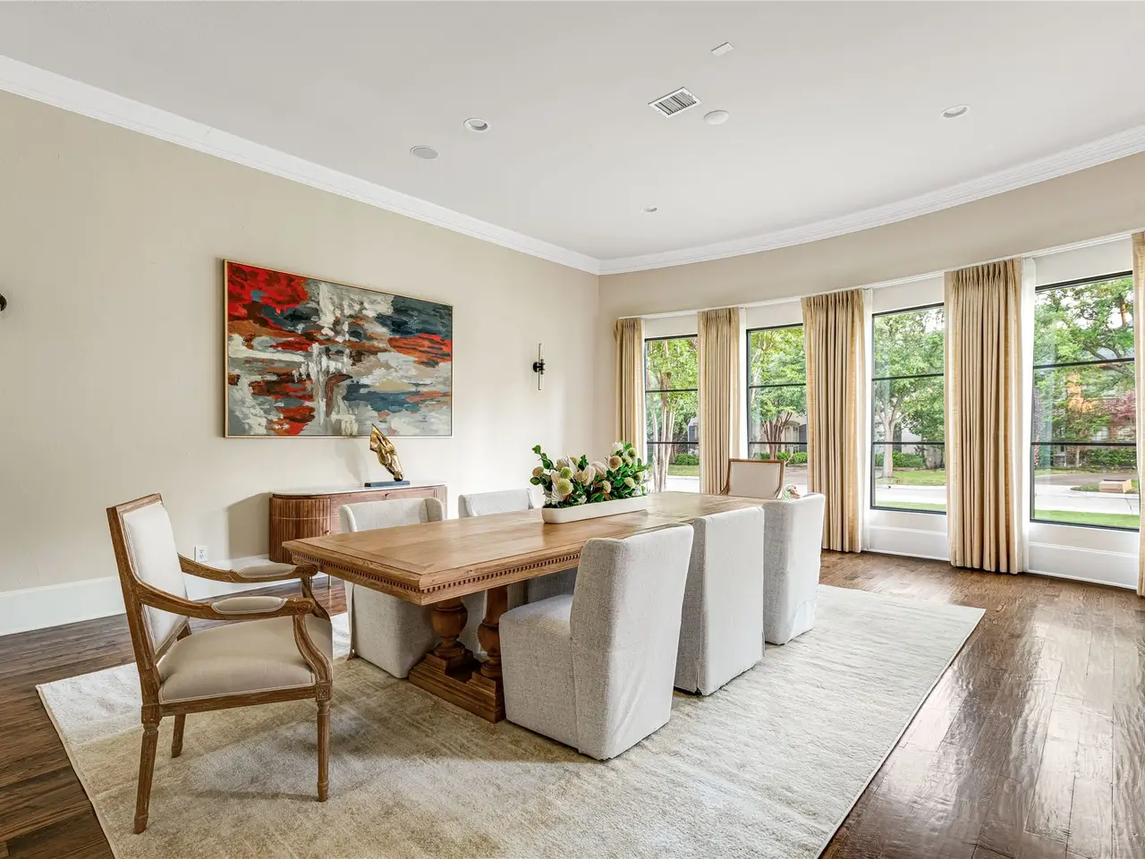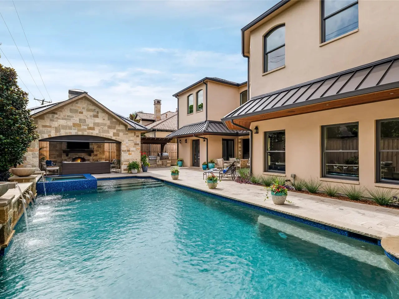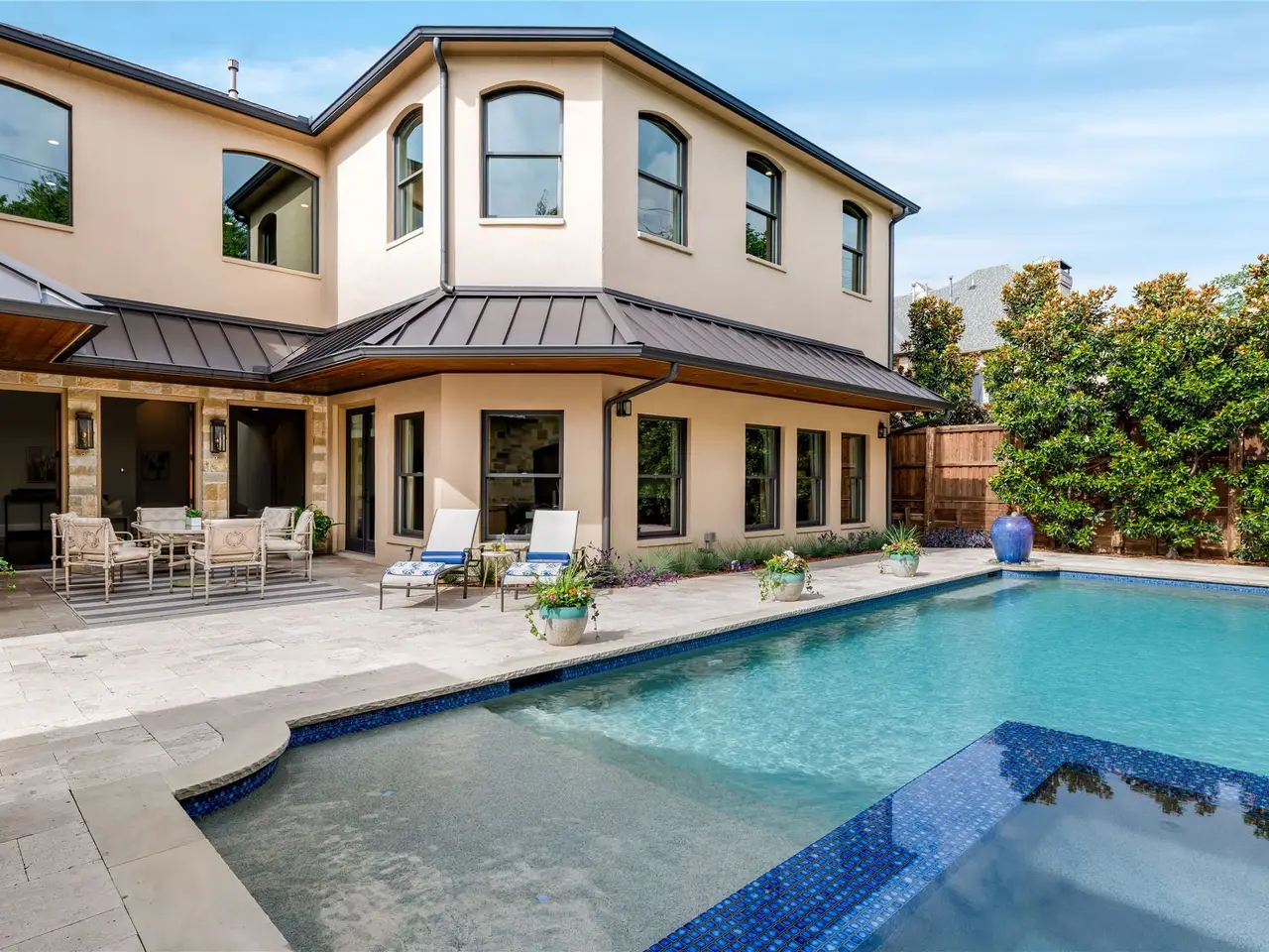 Wow, describes this stunningly re-imagined transitional modern facade by esteemed builder, Rosewood Custom Builders in the heart of Preston Hollow. Experience luxury living at its finest in the meticulously maintained 6980 sf residence featuring 4 spacious en-suite bedrooms, including a primary suite on the main floor, and 2 half baths. The open floor plan seamlessly incorporates the stately dining room, butler's area, kitchen and living areas making the ultimate expression of modern living and entertaining. Step into grandeur through the double steel glass doors, where you are greeted by a sweeping staircase that descends to a dramatic foyer bathed in natural light and 28' ft soaring ceilings. A dedicated home office, adjacent to the primary suite, provides a tranquil space for work, while multiple rooms and flex spaces can be customized to meet your unique needs. Abundant maple cabinets and exquisite countertops set the stage for culinary creativity featuring luxury stainless steel appliances, a remarkable center island with a marble surface, pot filler and two walk-in pantries. The gourmet kitchen seamlessly flows into an open living area and breakfast room, graced by a wall of windows, scraped hardwood floors and soaring ceilings, connecting the indoors to the luxurious outdoor living space. Experience luxury in the stone facade pool house, featuring a gas fireplace, vaulted ceilings with wood paneling, built-in heaters and motorized shades. A pergola summer kitchen with expansive terraces invites al fresco dining and entertaining overlooking lush landscaped gardens and a sparkling 40' pool with tanning ledge and gas heated spa. Retreat to the spacious primary suite with en suite bath, expansive walk in shower, soaking tub, dual vanities, large walk in close with built-ins, and a serene view overlooking the pool. Quick access to the Dallas North Tollway, Love Field, Dallas' private school top notch healthcare facilities, fine dinging and shopping. Welcome home.