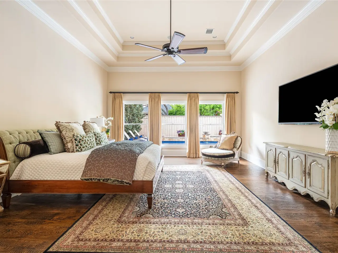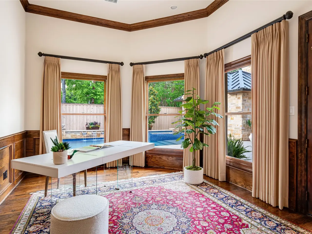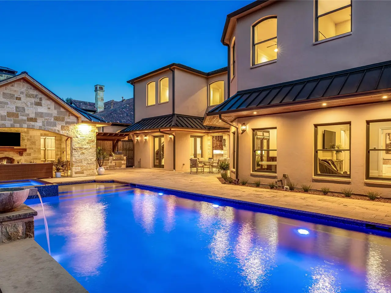 Wow, describes this stunningly re-imagined transitional modern facade by esteemed builder, Rosewood Custom Builders in the heart of Preston Hollow. Experience luxury living at its finest in the meticulously maintained 6980 sf residence featuring 4 spacious en-suite bedrooms, including a primary suite on the main floor, and 2 half baths. The open floor plan seamlessly incorporates the stately dining room, butler's area, kitchen and living areas making the ultimate expression of modern living and entertaining. Step into grandeur through the double steel glass doors, where you are greeted by a sweeping staircase that descends to a dramatic foyer bathed in natural light and 28' ft soaring ceilings. A dedicated home office, adjacent to the primary suite, provides a tranquil space for work, while multiple rooms and flex spaces can be customized to meet your unique needs. Abundant maple cabinets and exquisite countertops set the stage for culinary creativity featuring luxury stainless steel appliances, a remarkable center island with a marble surface, pot filler and two walk-in pantries. The gourmet kitchen seamlessly flows into an open living area and breakfast room, graced by a wall of windows, scraped hardwood floors and soaring ceilings, connecting the indoors to the luxurious outdoor living space. Experience luxury in the stone facade pool house, featuring a gas fireplace, vaulted ceilings with wood paneling, built-in heaters and motorized shades. A pergola summer kitchen with expansive terraces invites al fresco dining and entertaining overlooking lush landscaped gardens and a sparkling 40' pool with tanning ledge and gas heated spa. Retreat to the spacious primary suite with en suite bath, expansive walk in shower, soaking tub, dual vanities, large walk in close with built-ins, and a serene view overlooking the pool. Quick access to the Dallas North Tollway, Love Field, Dallas' private school top notch healthcare facilities, fine dinging and shopping. Welcome home.