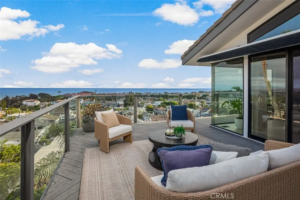 A Hidden Jewel with Breathtaking Views from Every Level! Perched in the heart of Dana Point's coveted Lantern Village, this newly remodeled coastal sanctuary offers an exceptional blend of timeless elegance and contemporary luxury. With approximately 6,146 square feet of open living space, this five bedroom, six bathroom residence is a rare find. From the moment you step inside, you're greeted with panoramic whitewater ocean views that span across all levels. The expansive main floor features an open-concept layout with consistent designer flooring throughout, a wraparound deck perfect for entertaining, and a gourmet kitchen outfitted with state-of-the-art Thermador appliances, a wine bar, and endless ocean vistas. With soaring ceilings, clean lines, and walls bathed in natural light, this home is also the perfect canvas to showcase an art collection or create your own private gallery. The upper level includes a private-entry flex space ideal for an office, guest suite, or artist's studio. An elevator provides effortless access to each floor, and the three-car garage, ample storage, outdoor grassy area, and outdoor shower add to the home's livability and appeal. This architectural gem radiates California chic with modern flair, neutral tones, sleek finishes, and thoughtfully designed outdoor areas that embrace the coastal surroundings. Located moments from the revitalized Dana Point Harbor, world-class dining, boutique shopping, and scenic beaches, this stunning home is truly a must see. Indulge in the ultimate coastal lifestyle, where luxury meets tranquility and creativity finds its home.